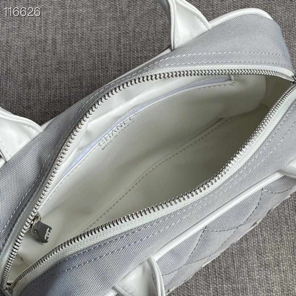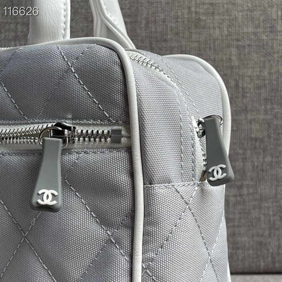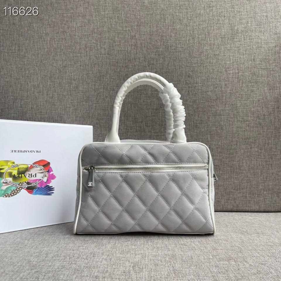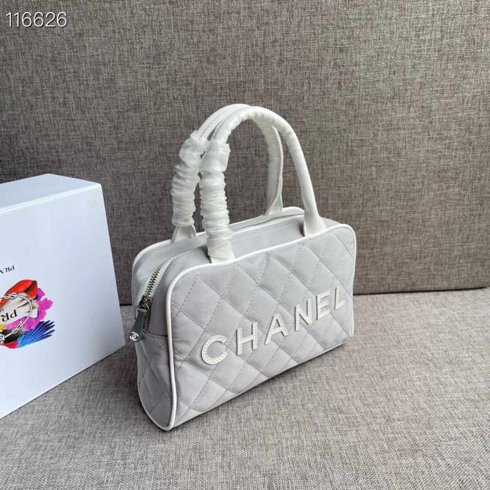 Chanel Vintage Logo Bowler Quilted Medium Gray Canvas Tote replica