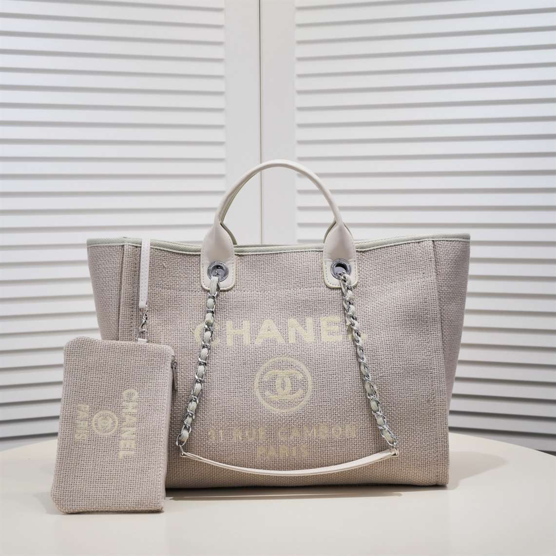 Chanel Canvas Pearl Deauville Tote replica