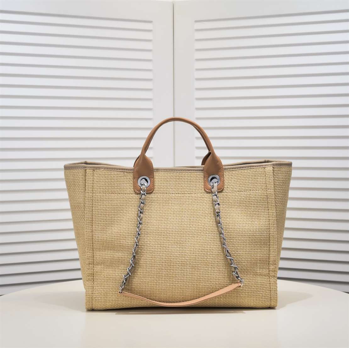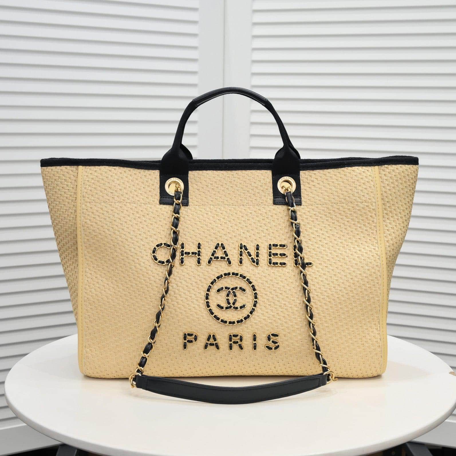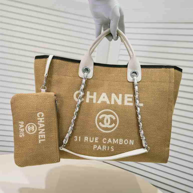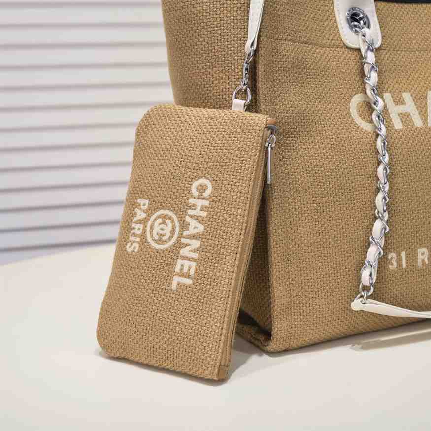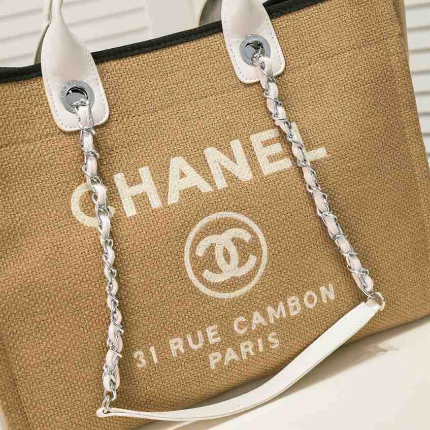 Chanel Straw Raffia Chain Small Deauville Tote replica