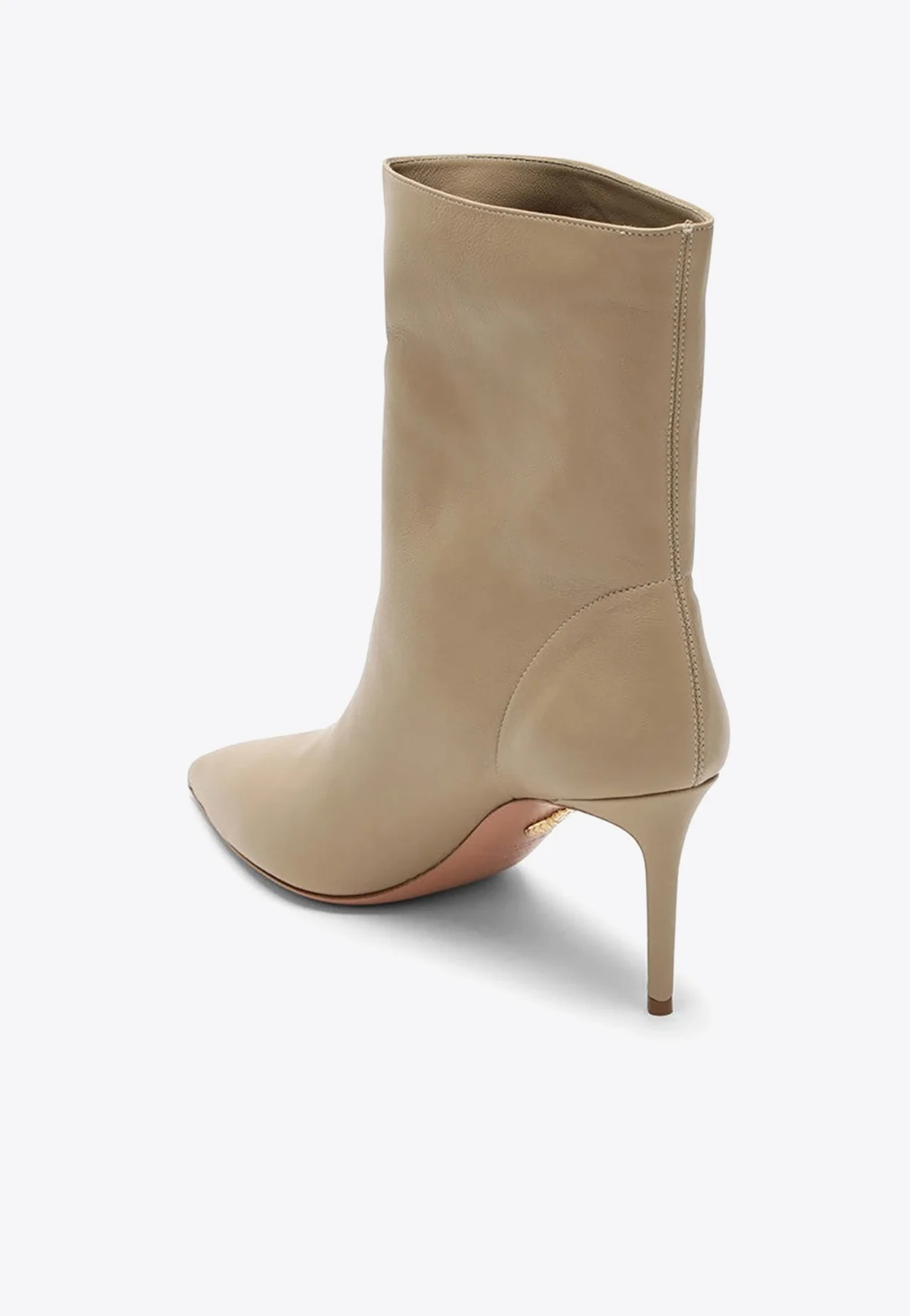 Aquazzura 90 Pointed-Toe Leather Ankle Boots Women Shoes