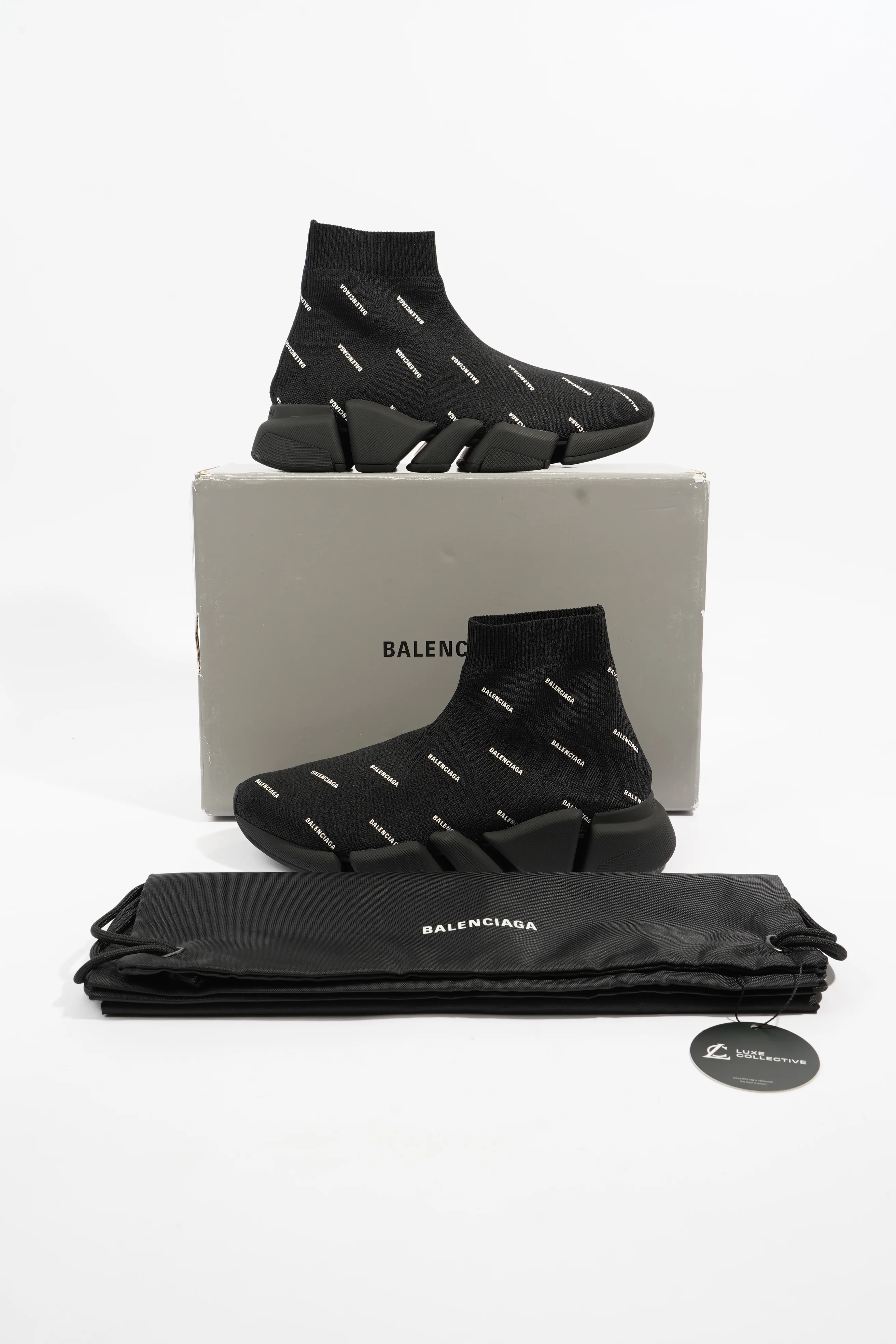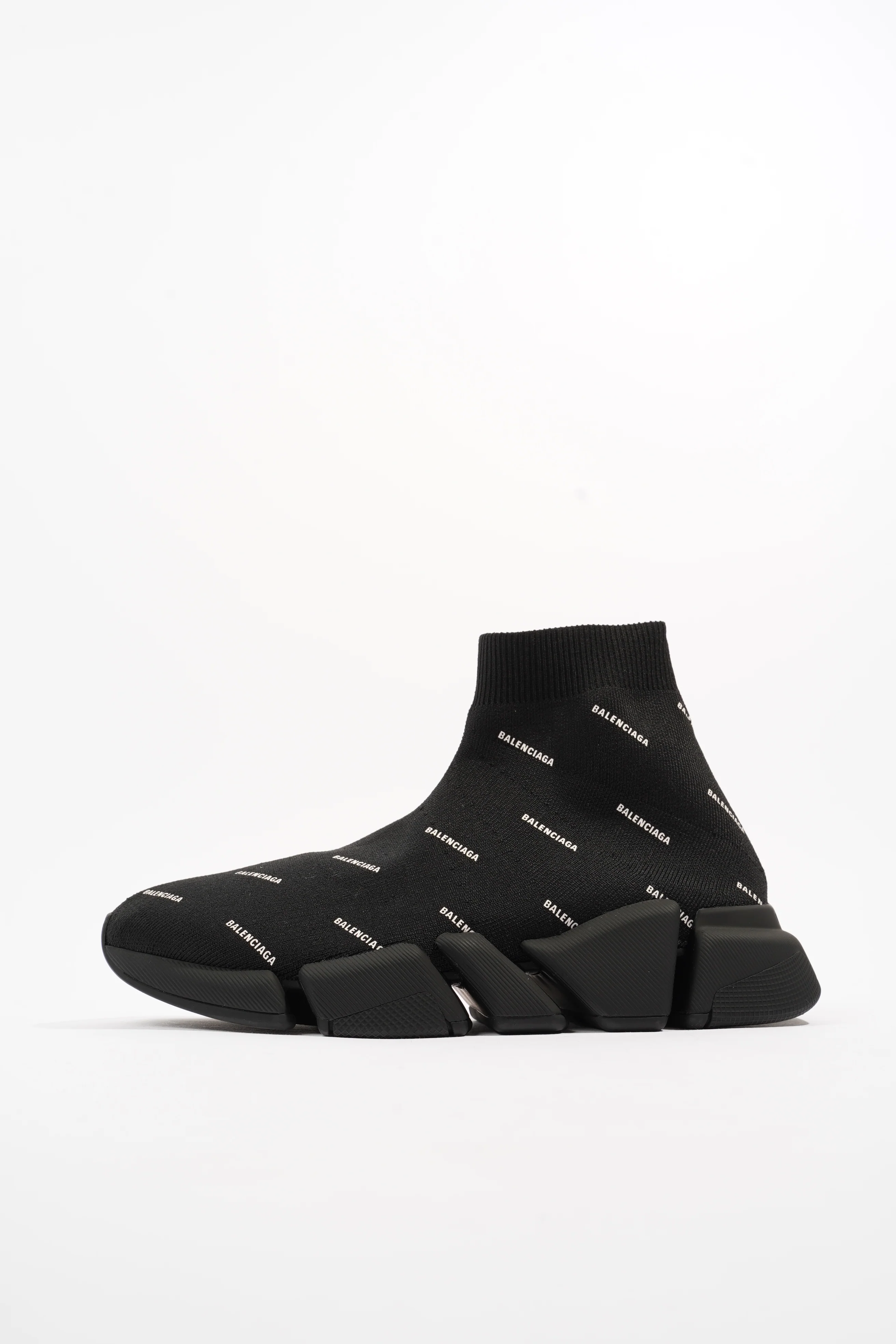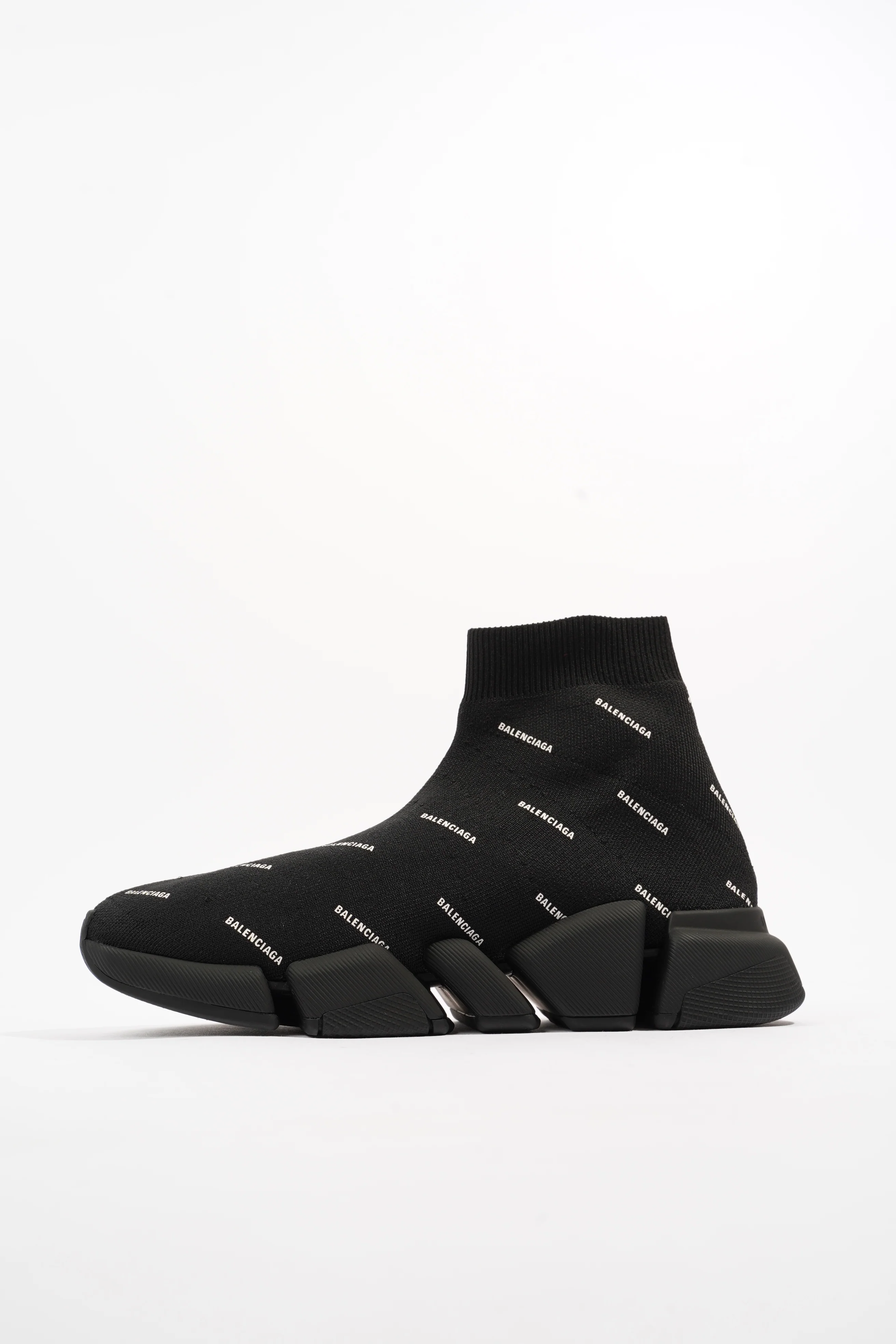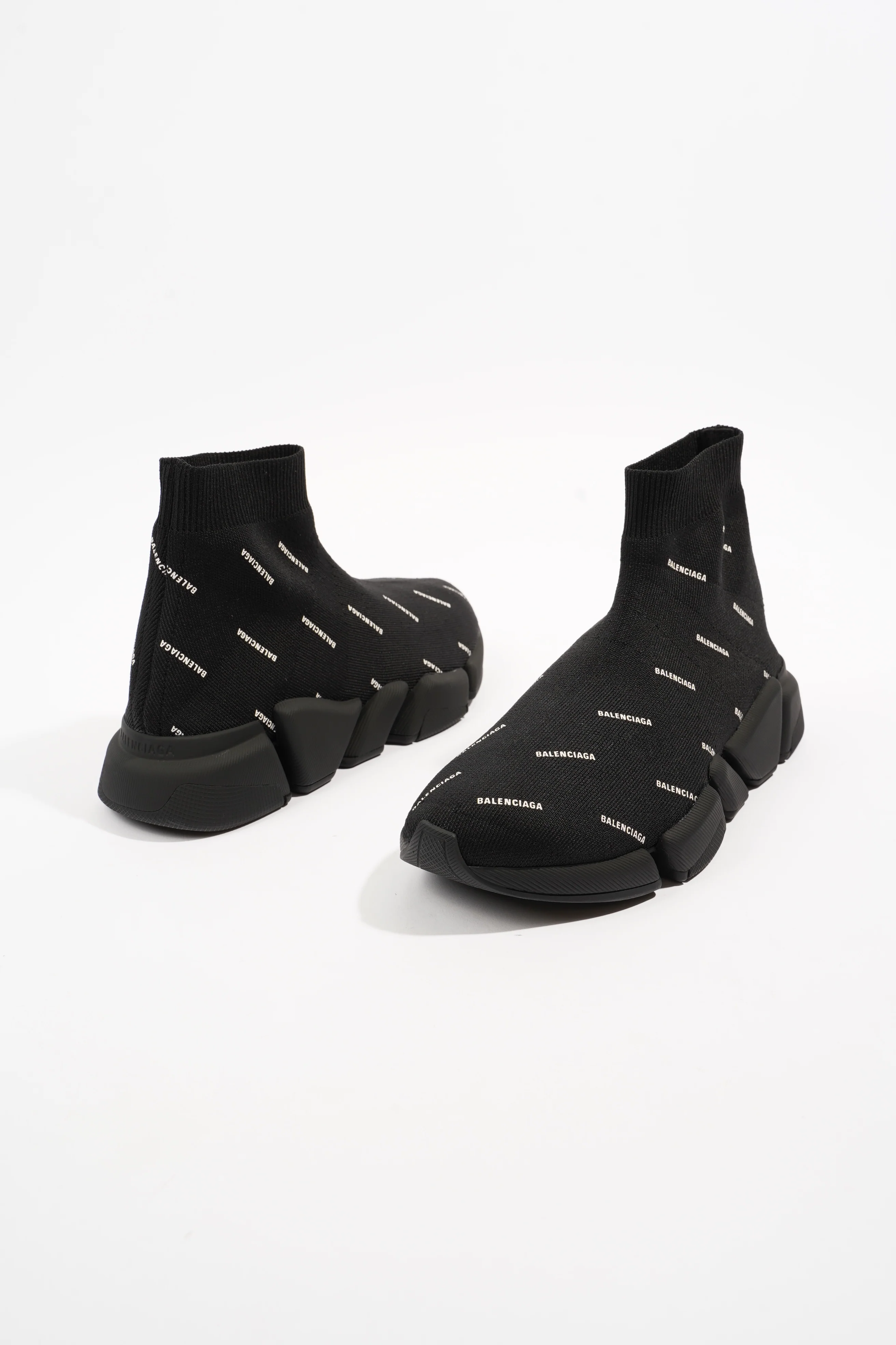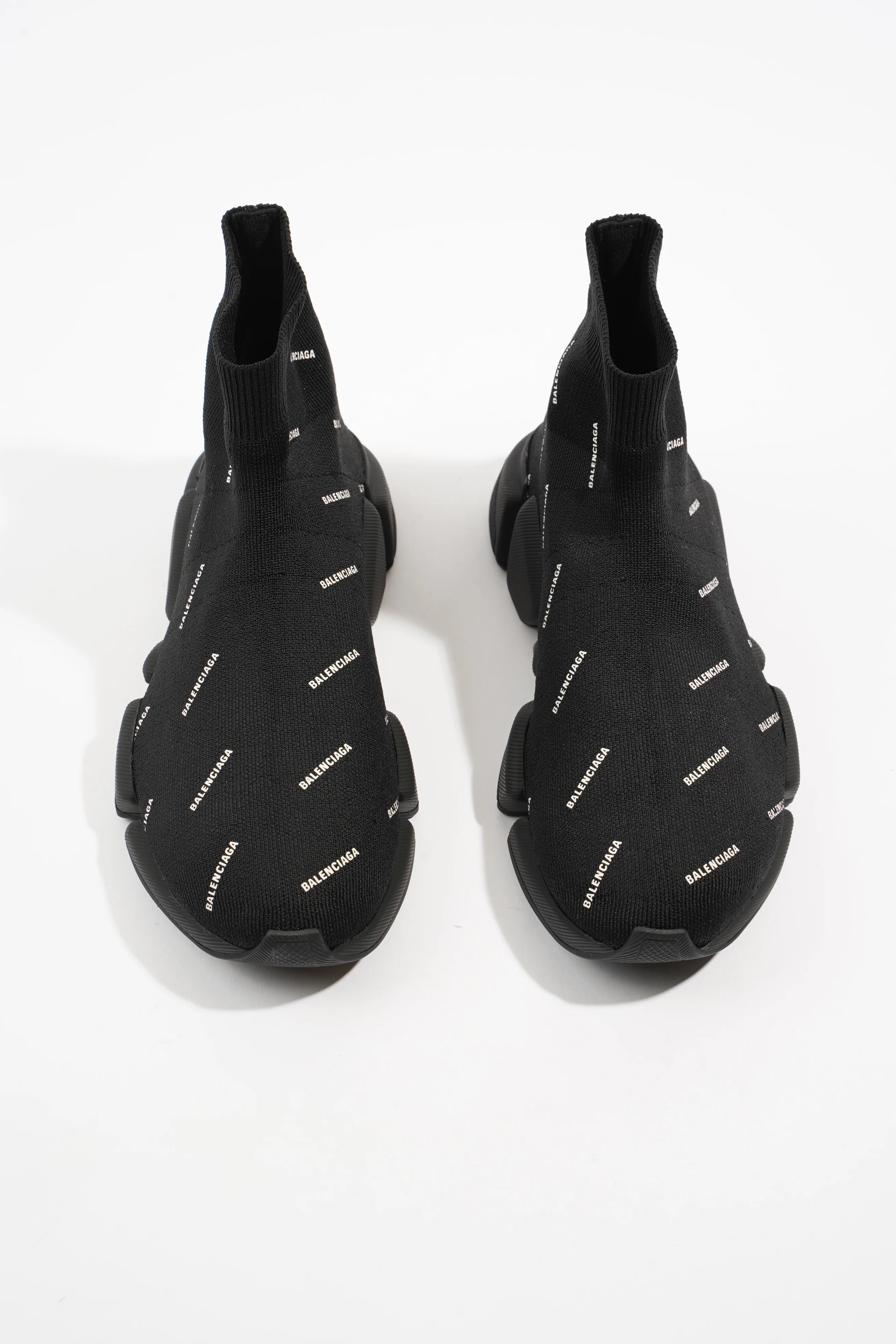 Balenciaga Speed 2.0 All Over Logo Black / White Knit EU 38 UK 5