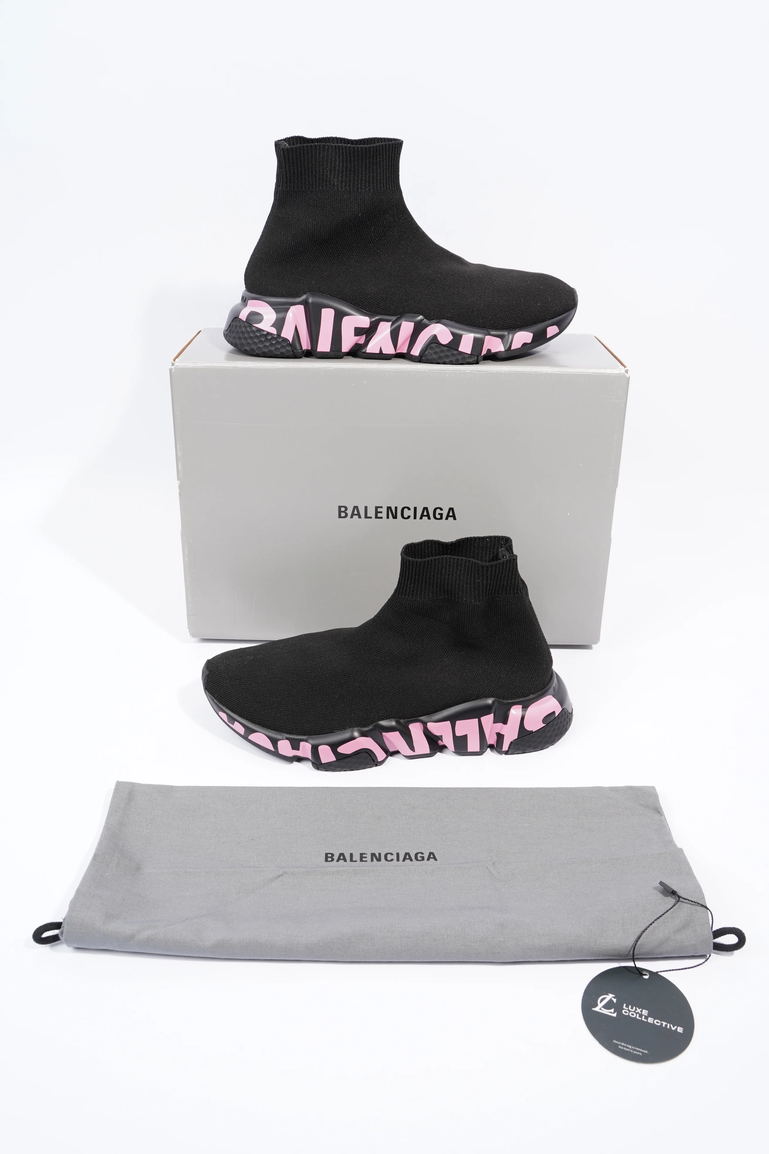 Balenciaga Speed Black / Pink Logo Print Cotton EU 37 UK 4