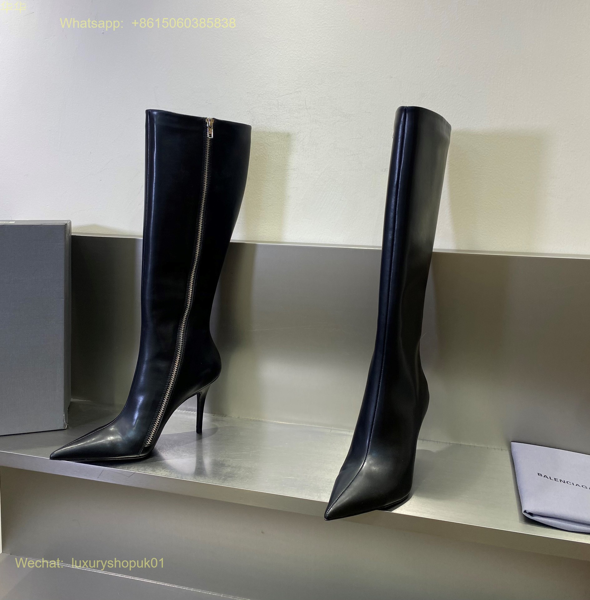 Balenciaga Pointed Toe Knee high Boots High heels Women Shoes