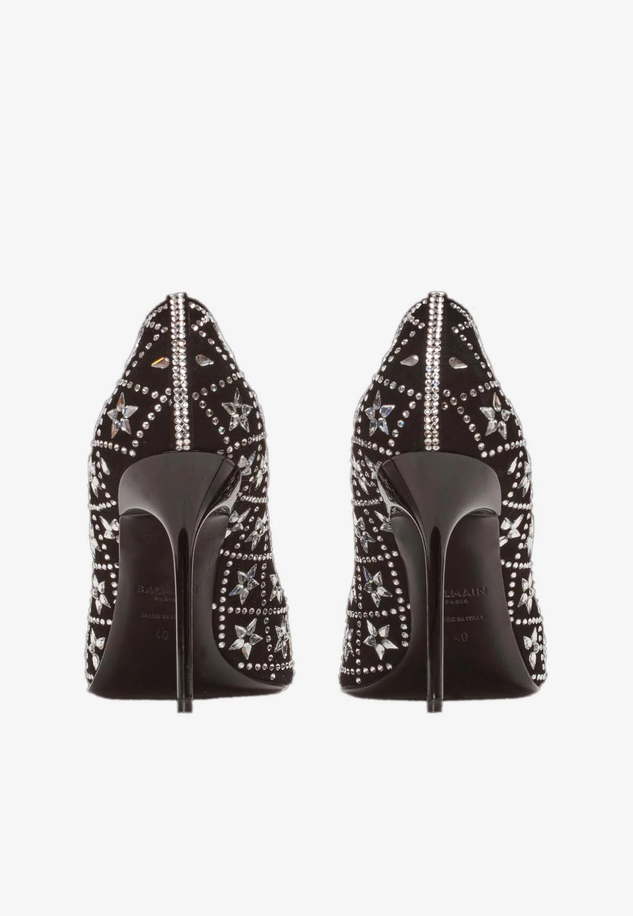 Balmain Ruby 95 Crystal-Embellished Suede Pumps