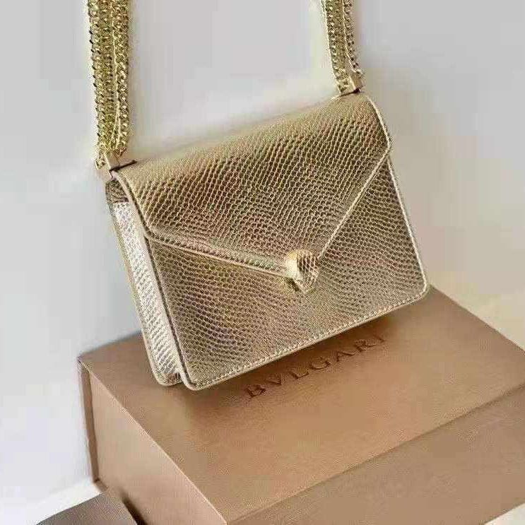 Bvlgari Serpenti Forever leather Gold shoulder bag replica