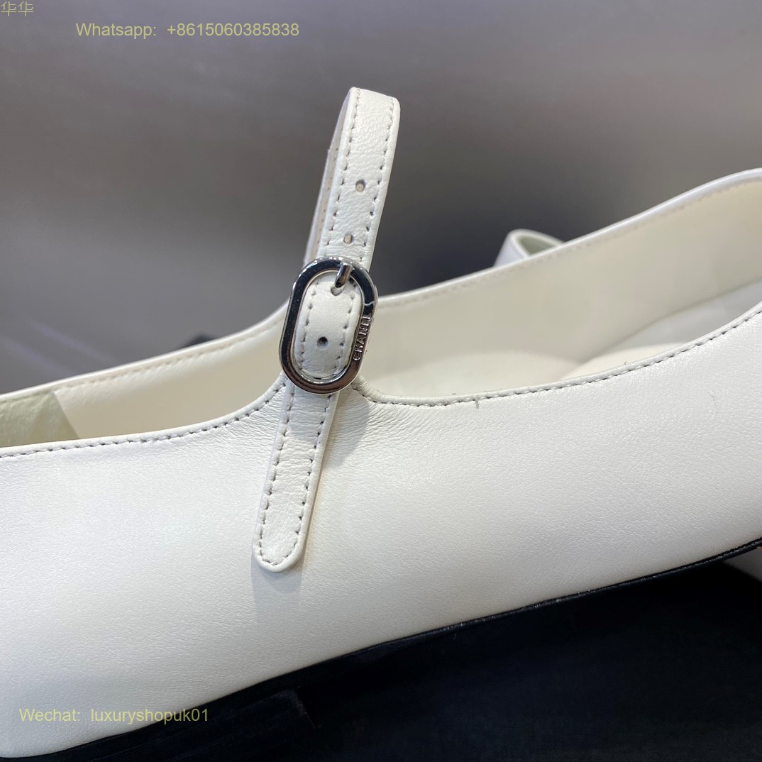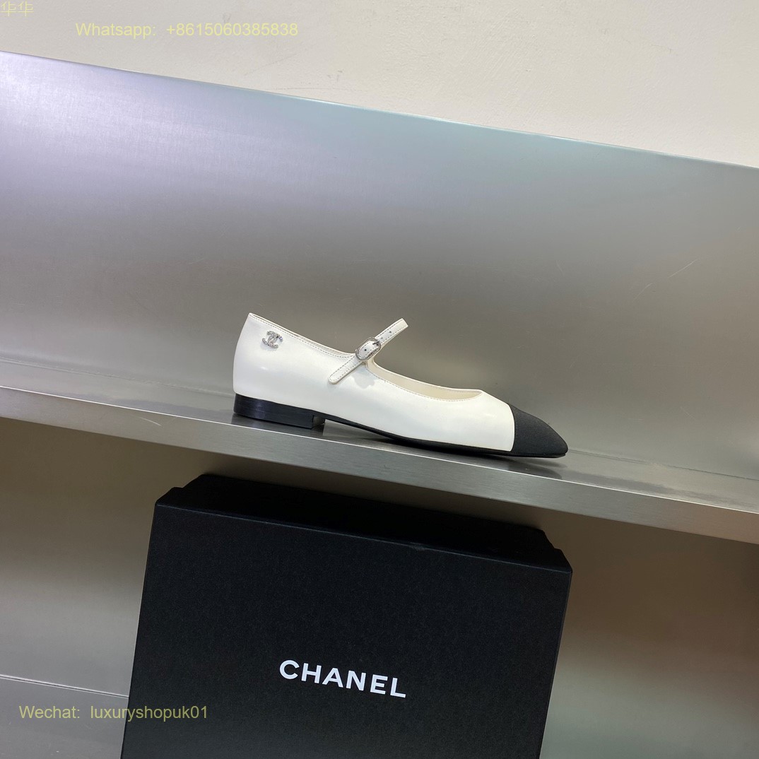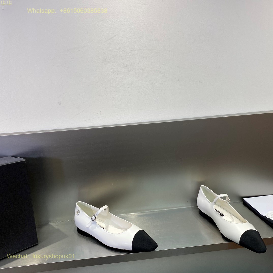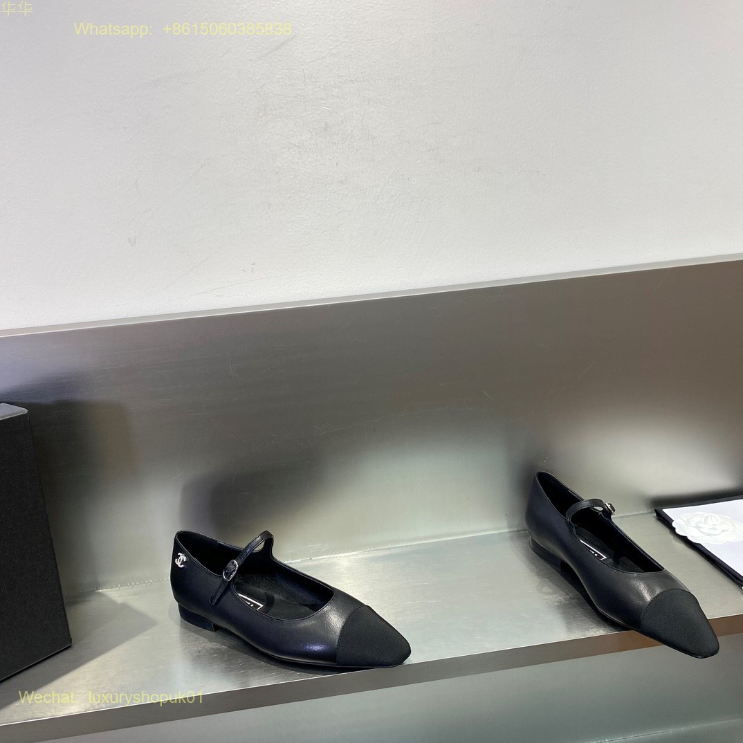 Chanel cap toe strap Leather Ballet flats CC Logo Women Shoes
