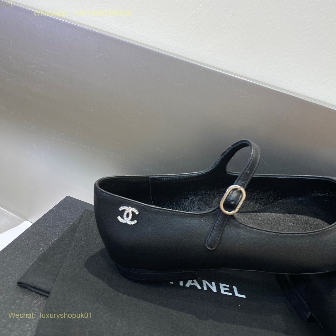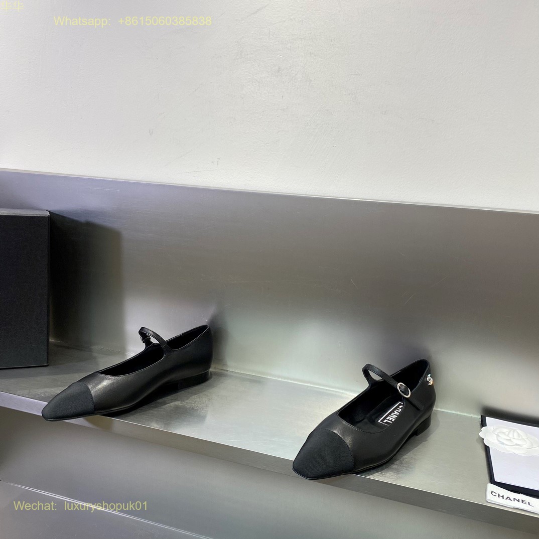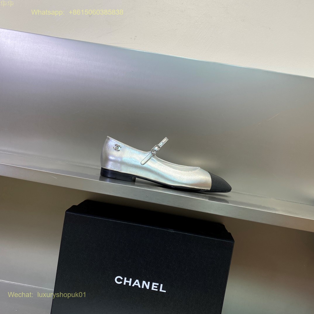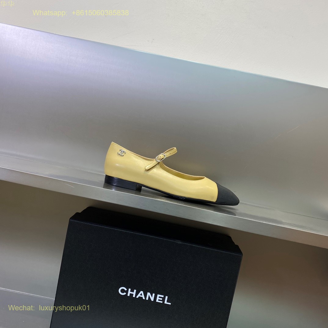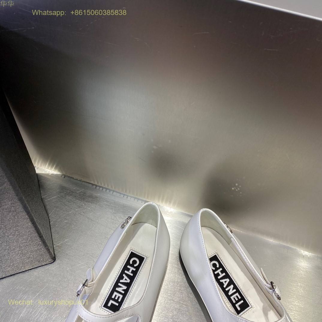Chanel cap toe strap Leather Ballet flats CC Logo Women Shoes