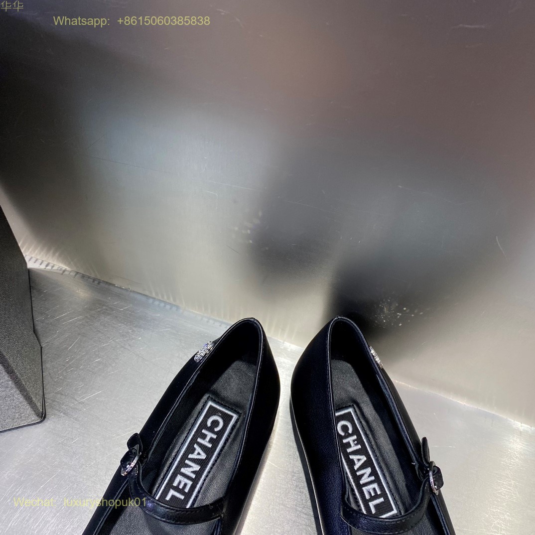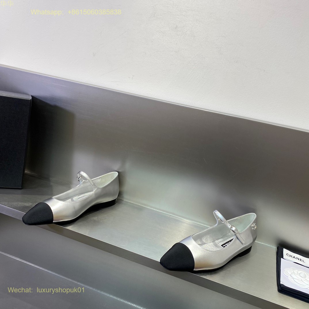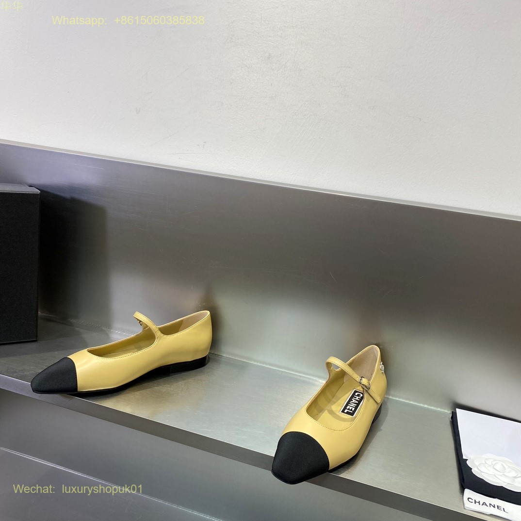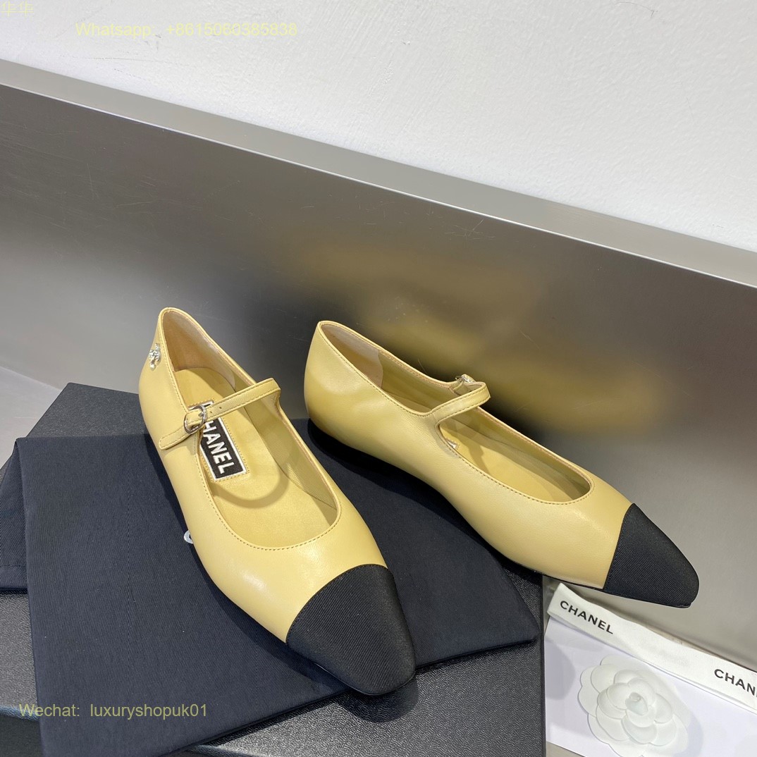 Chanel cap toe strap Leather Ballet flats CC Logo Women Shoes