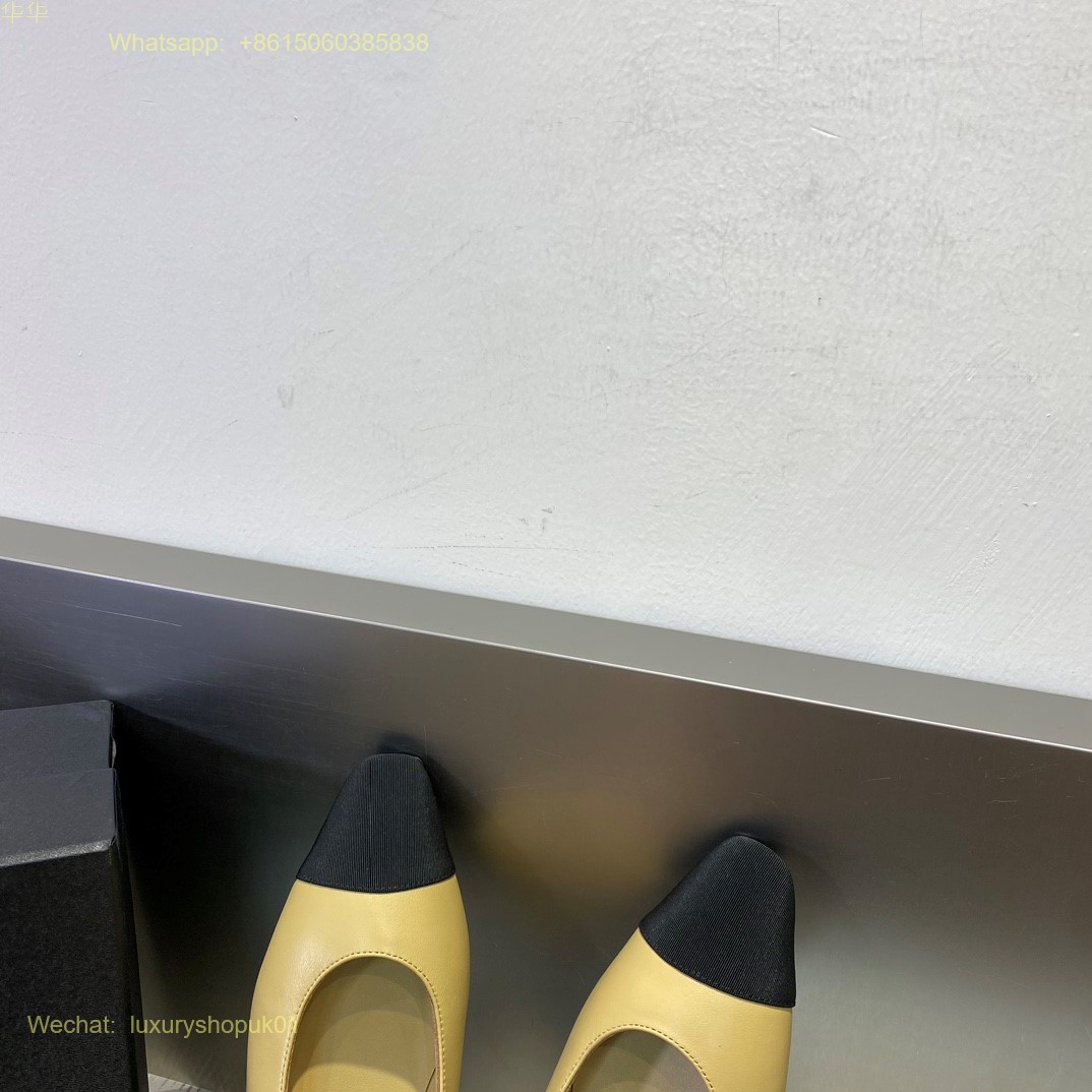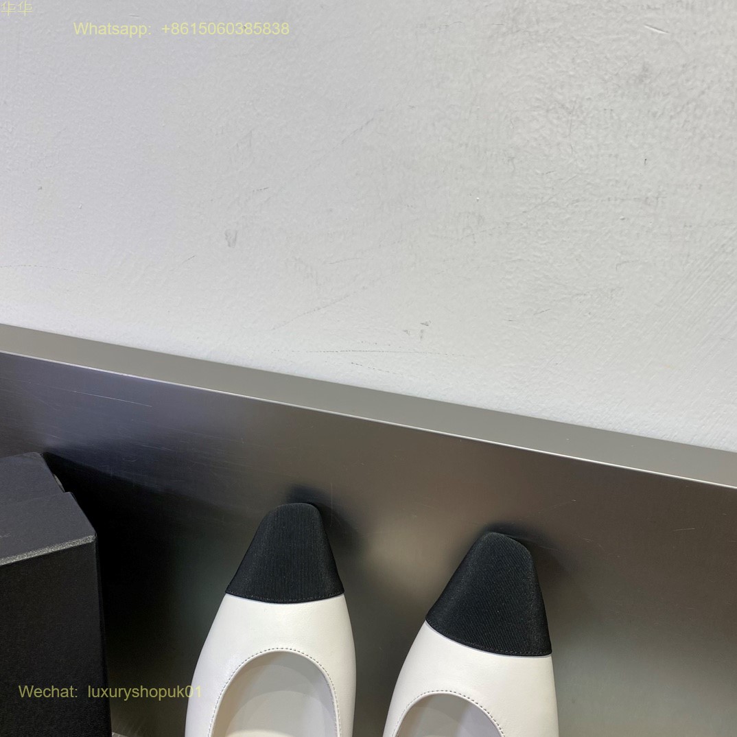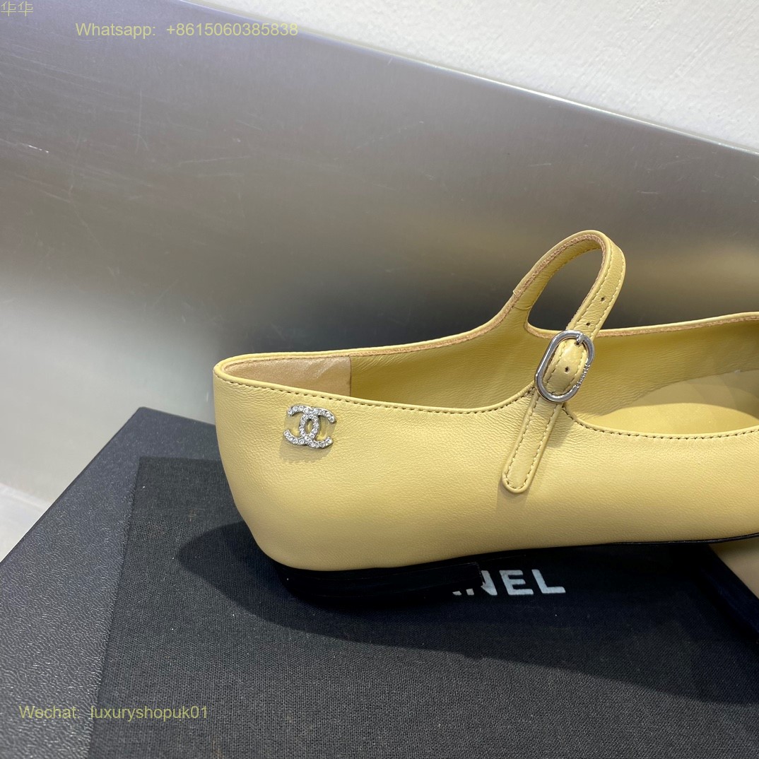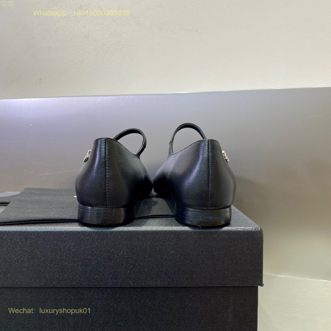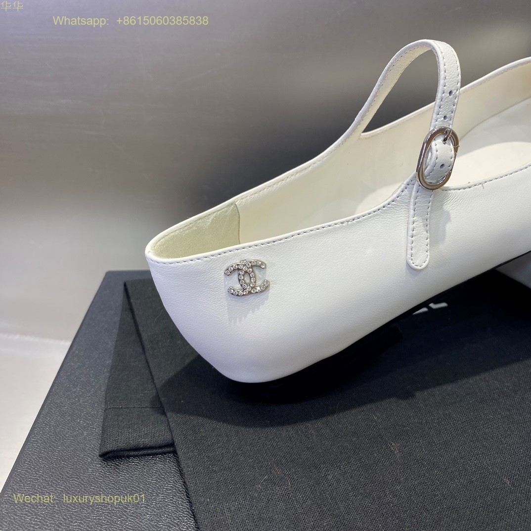 Chanel cap toe strap Leather Ballet flats CC Logo Women Shoes