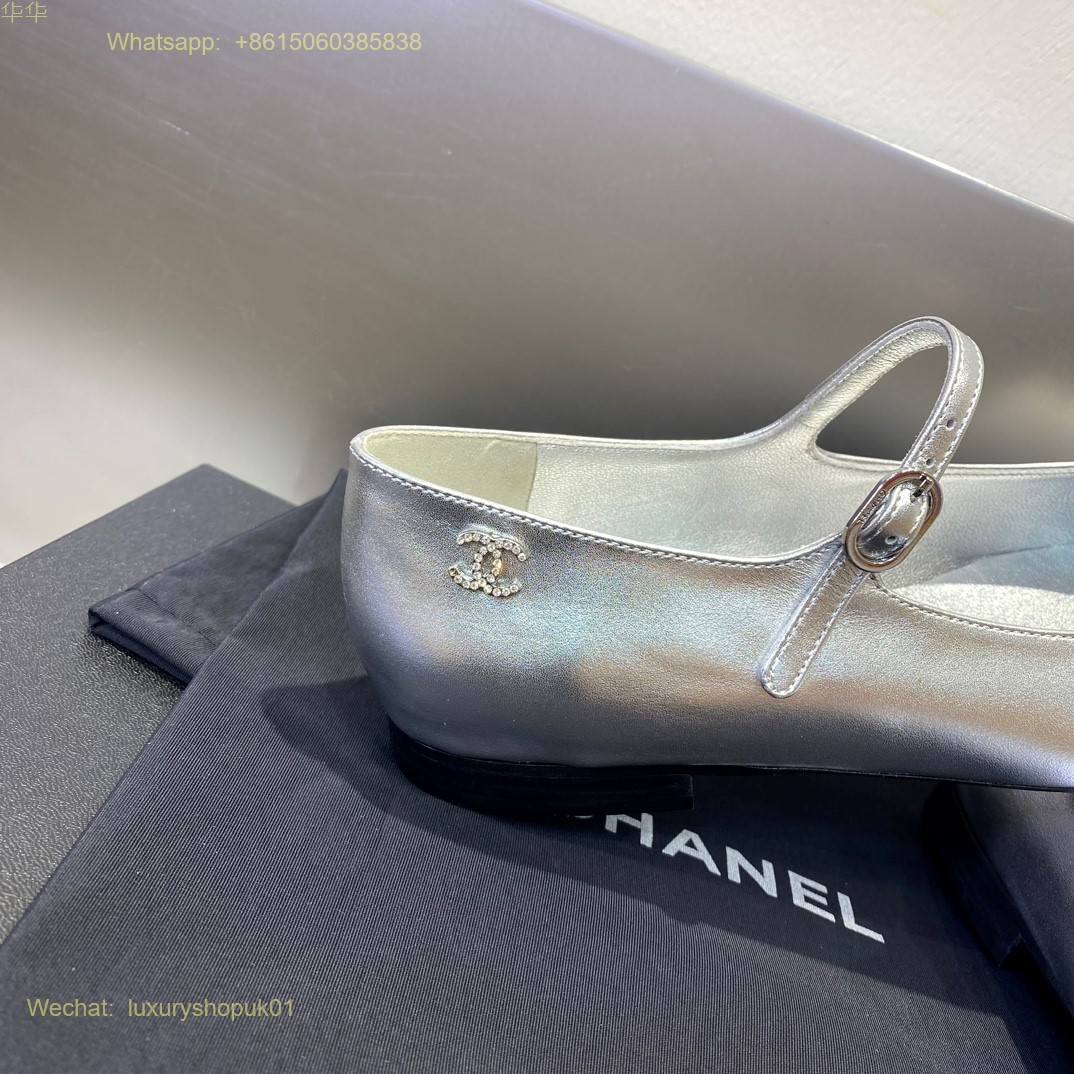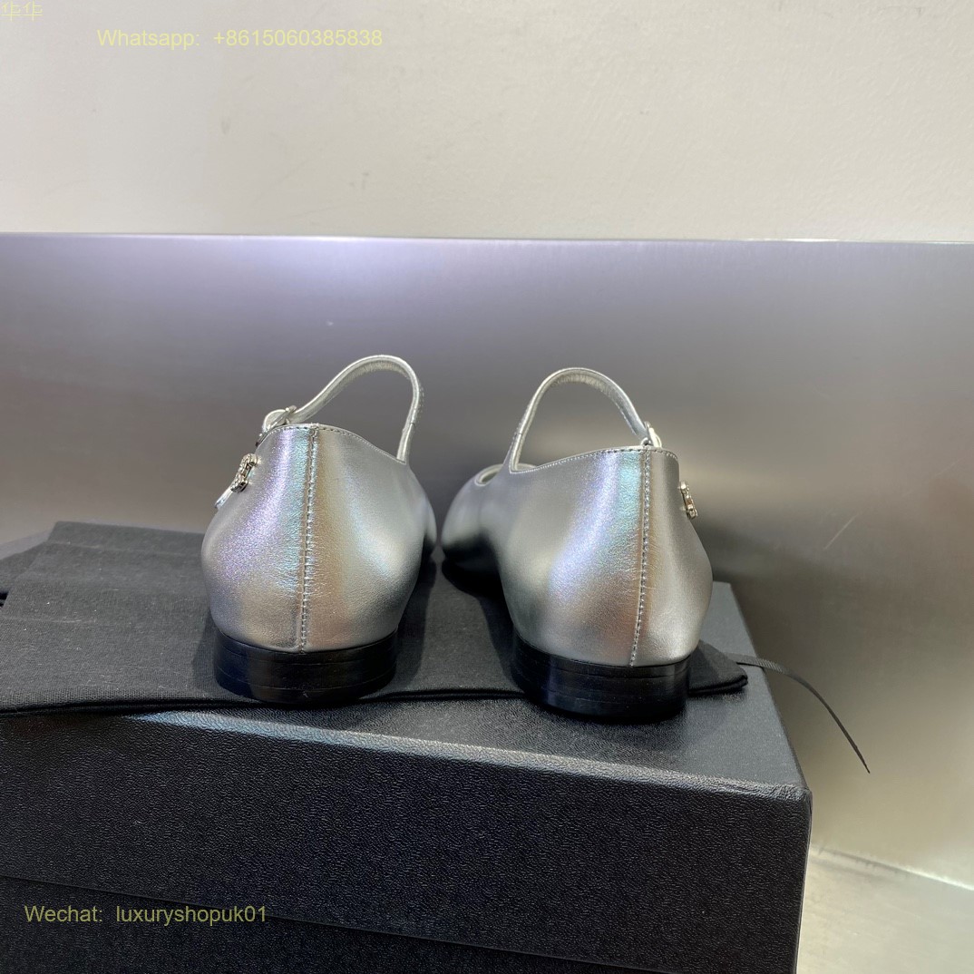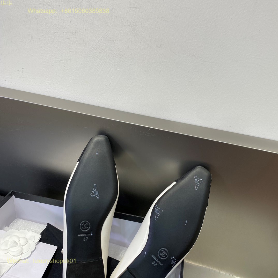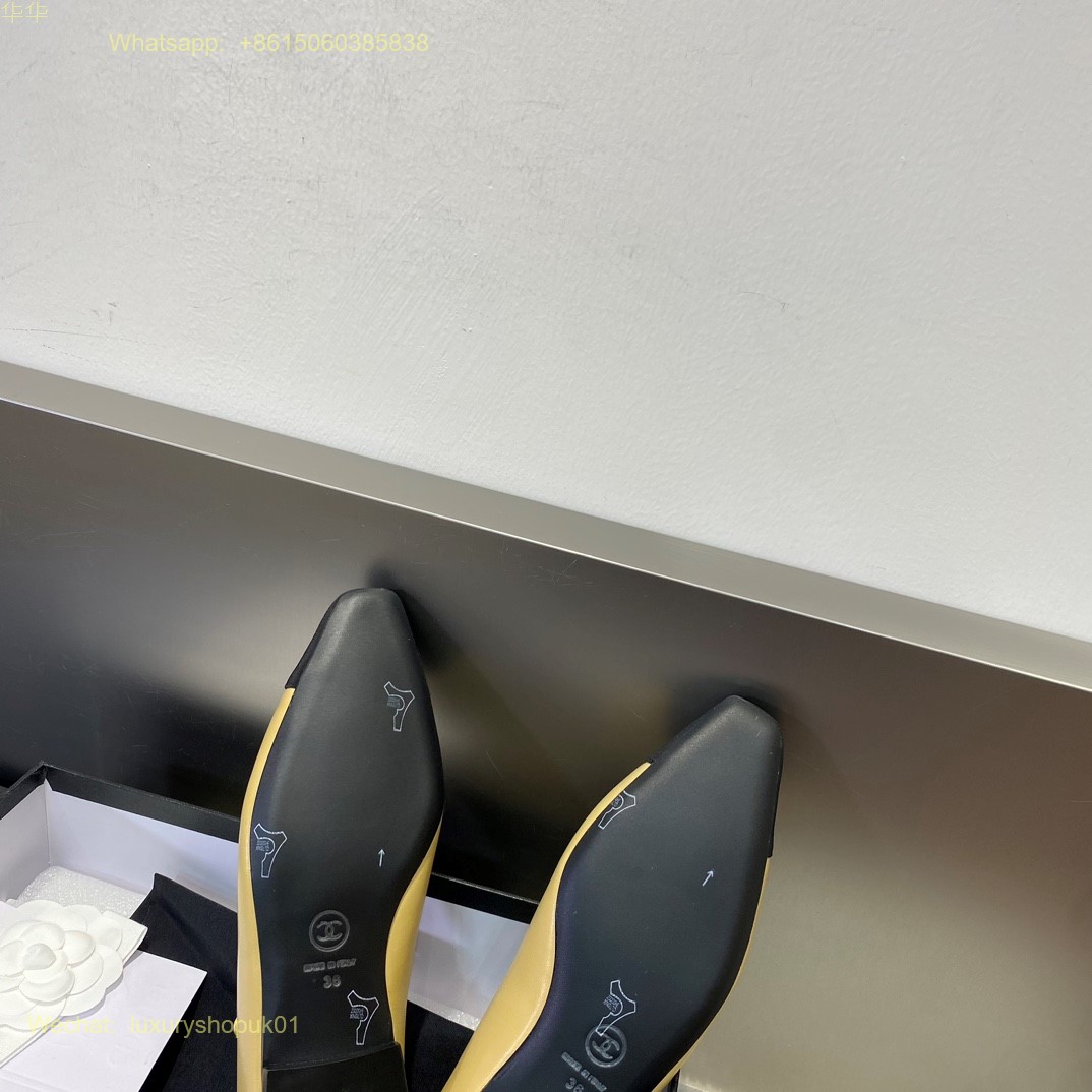 Chanel cap toe strap Leather Ballet flats CC Logo Women Shoes