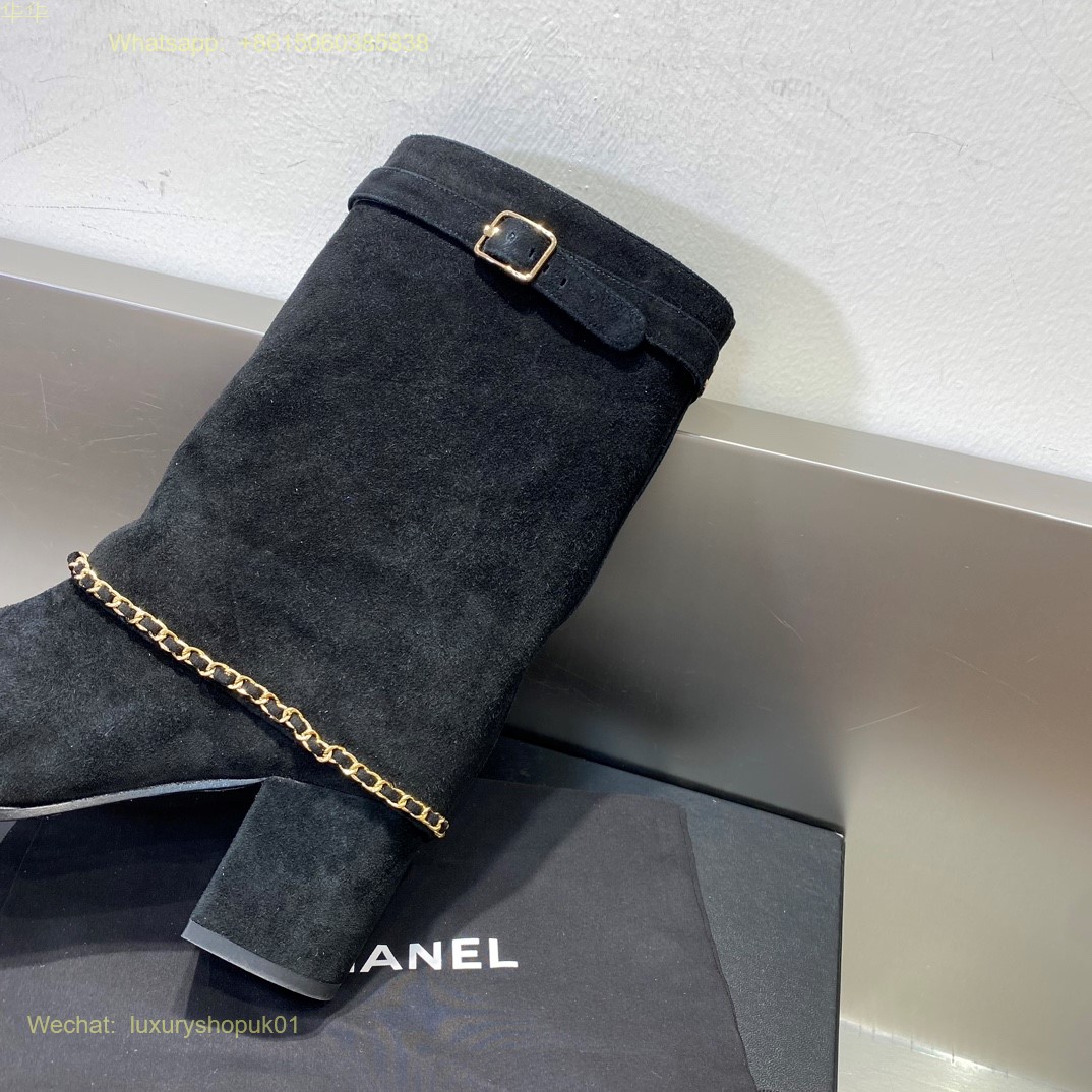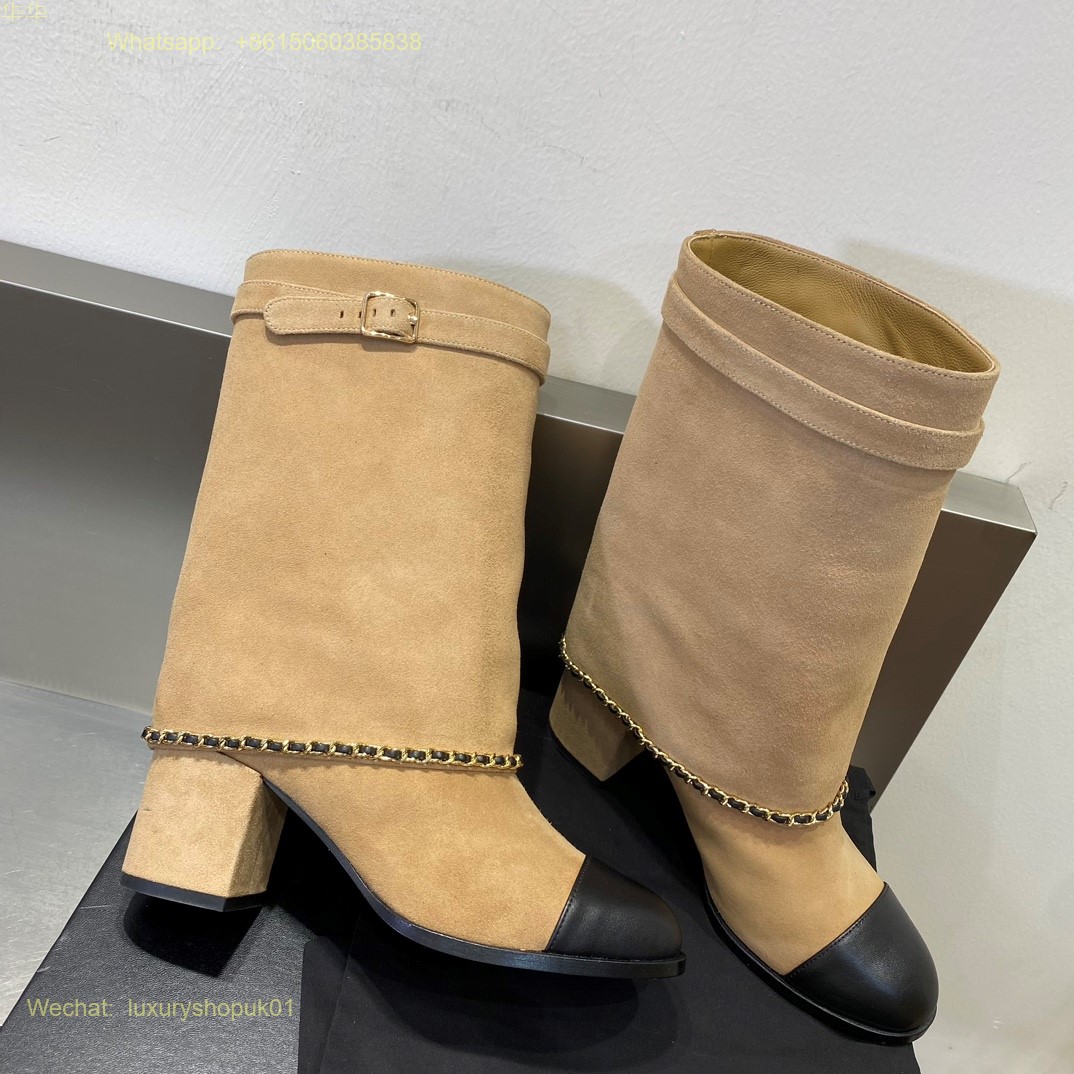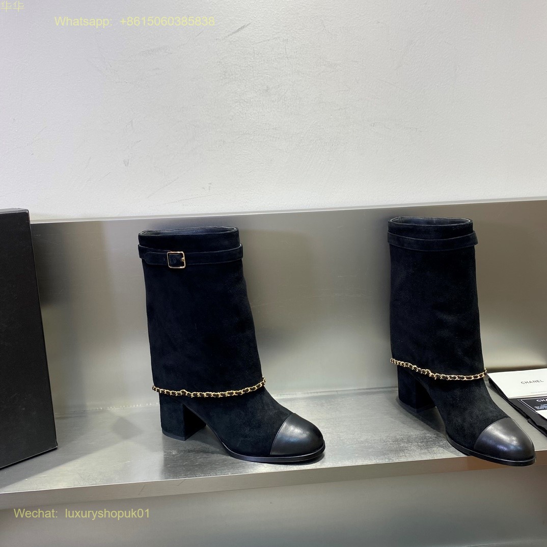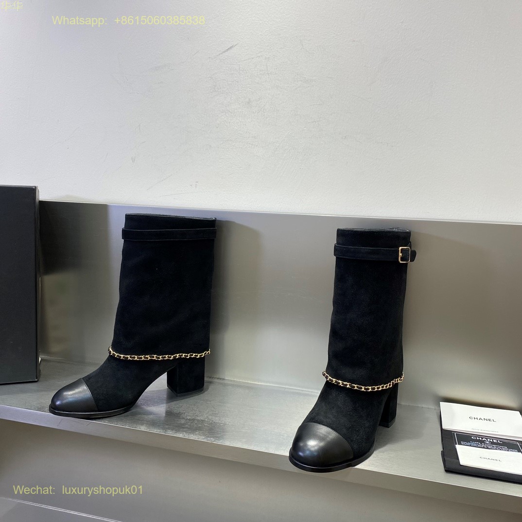 Chanel chain suede leather block heels Boots CC Logo Women Shoes