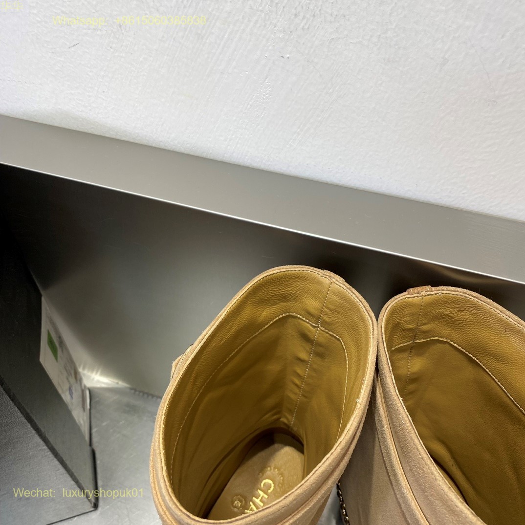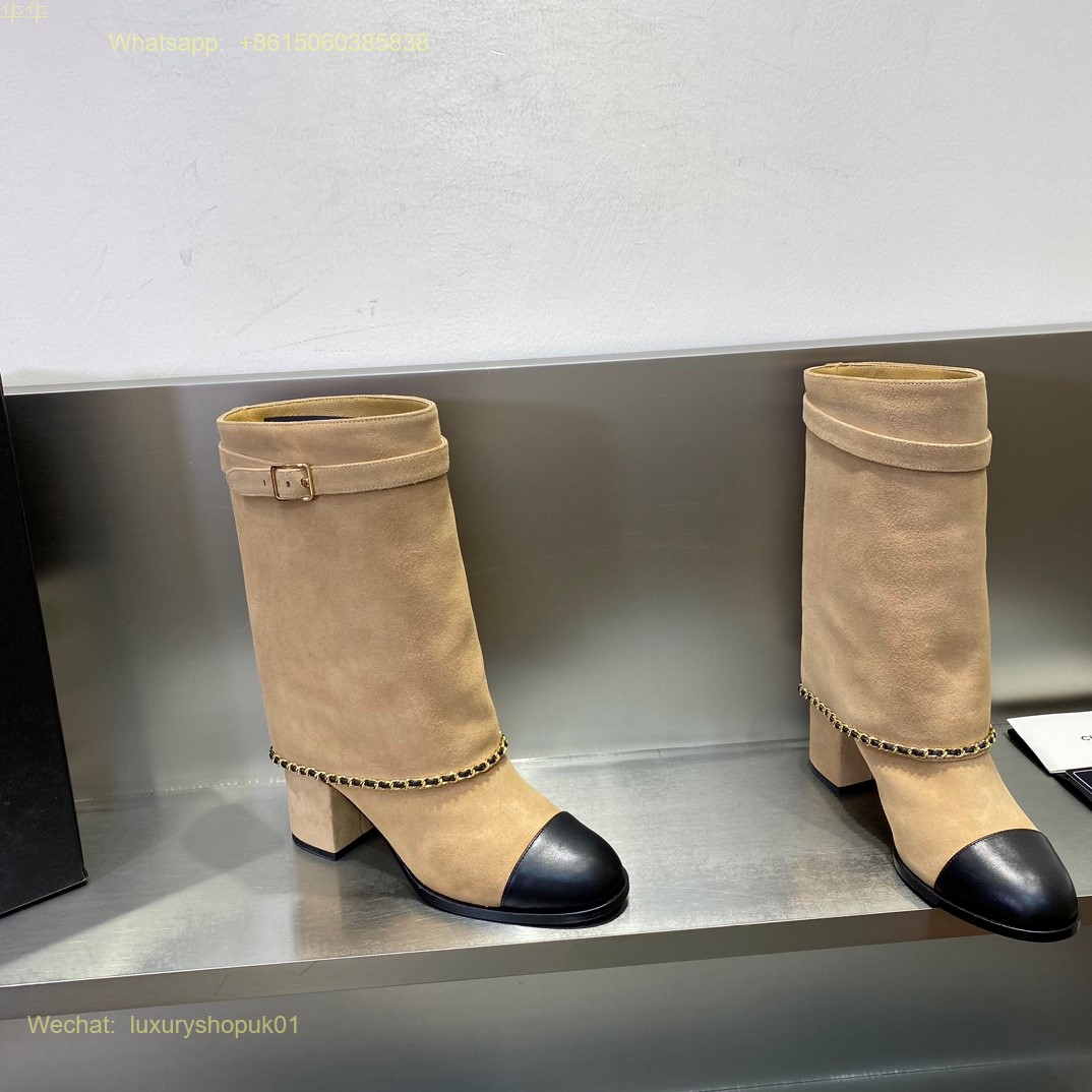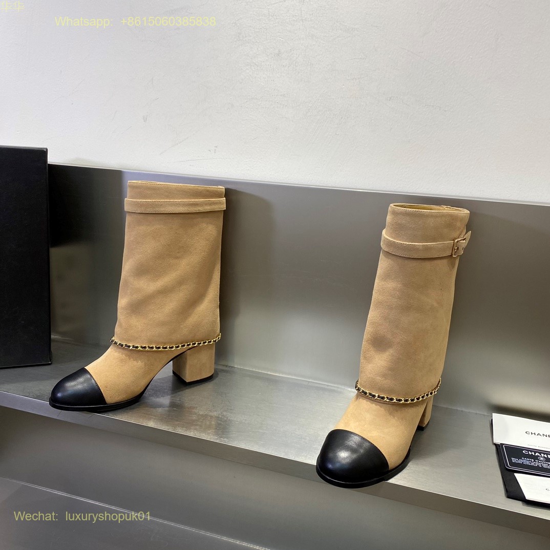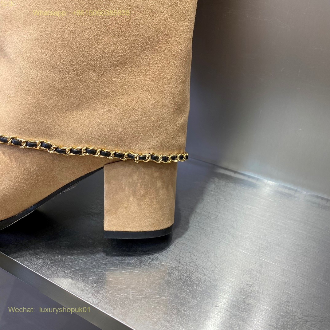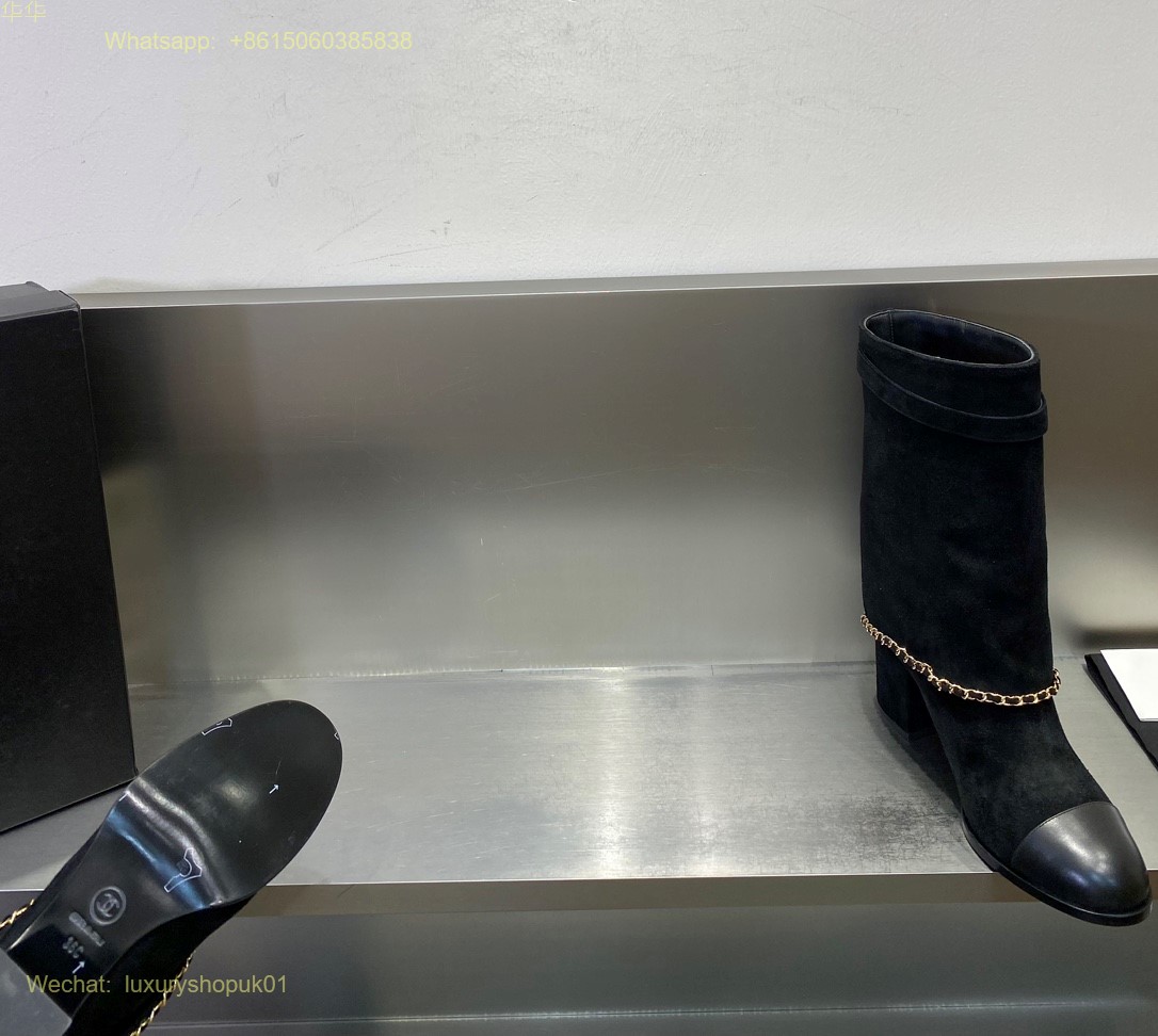 Chanel chain suede leather block heels Boots CC Logo Women Shoes