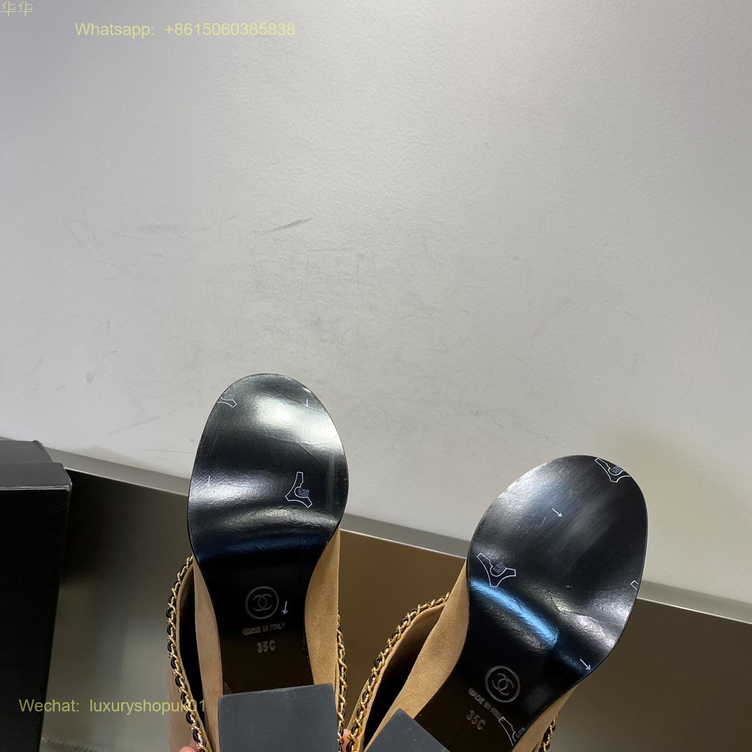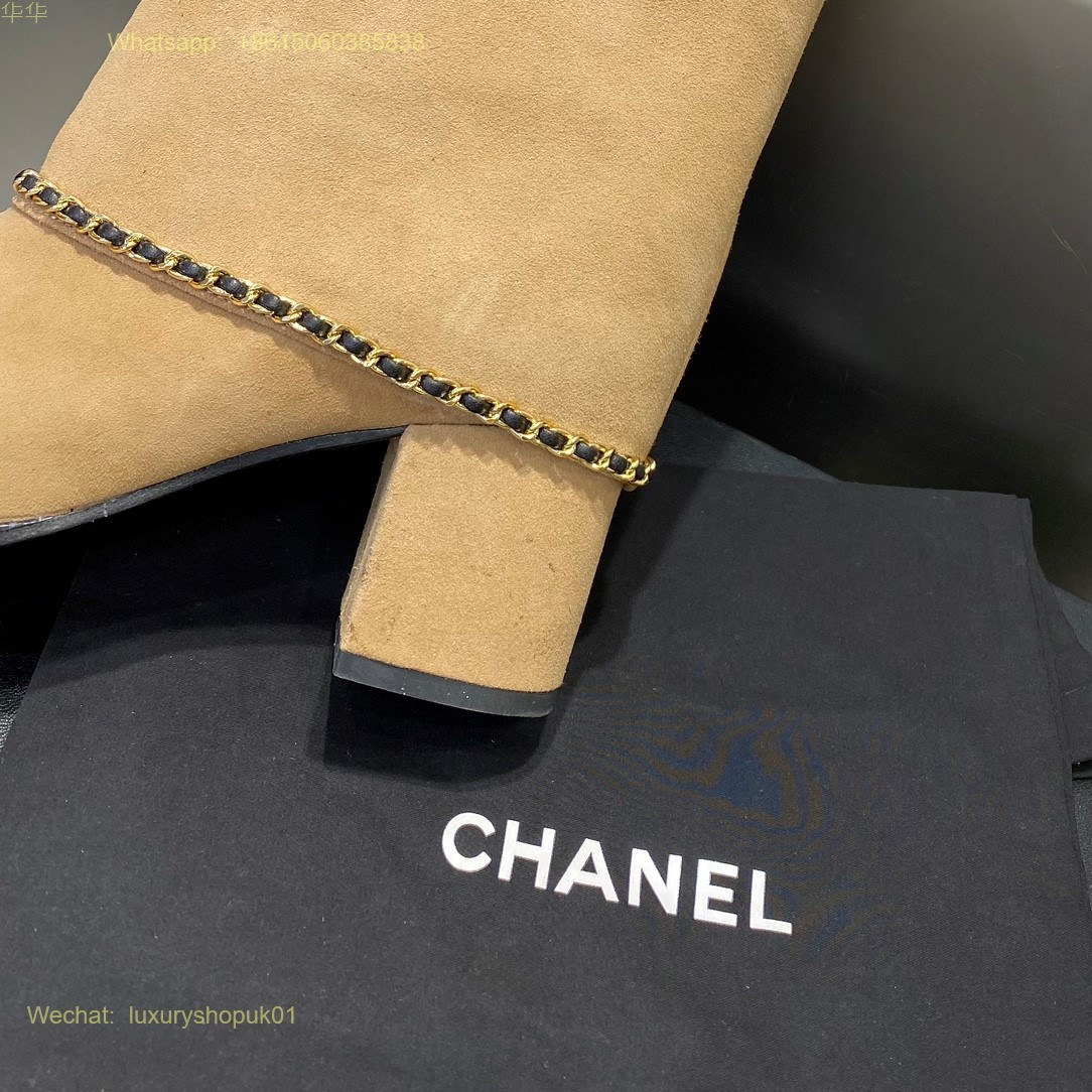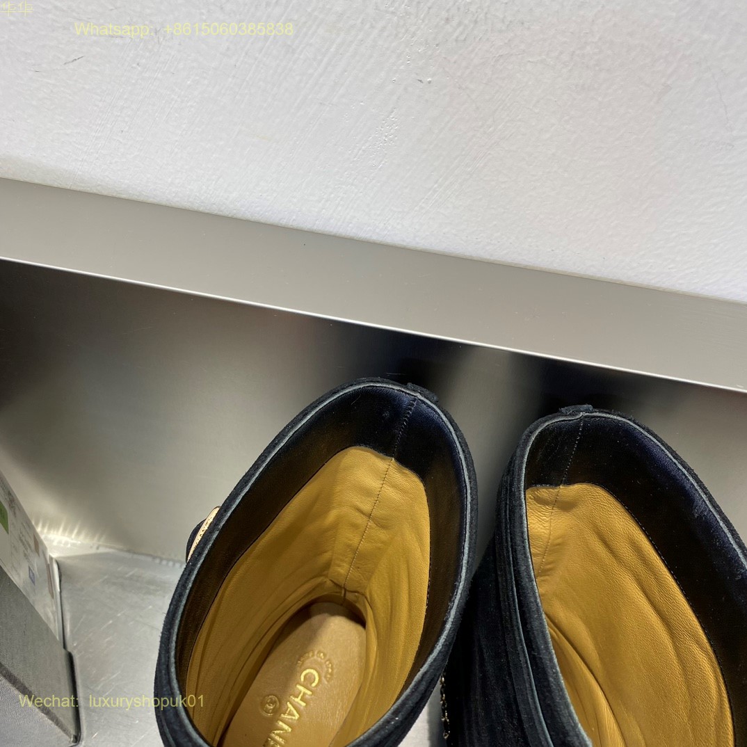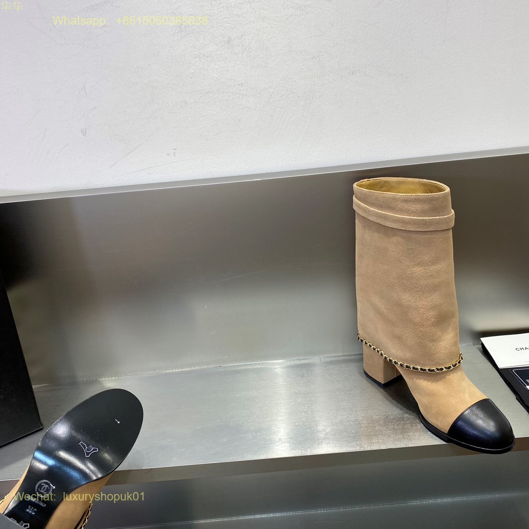 Chanel chain suede leather block heels Boots CC Logo Women Shoes