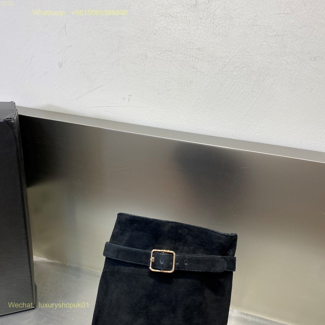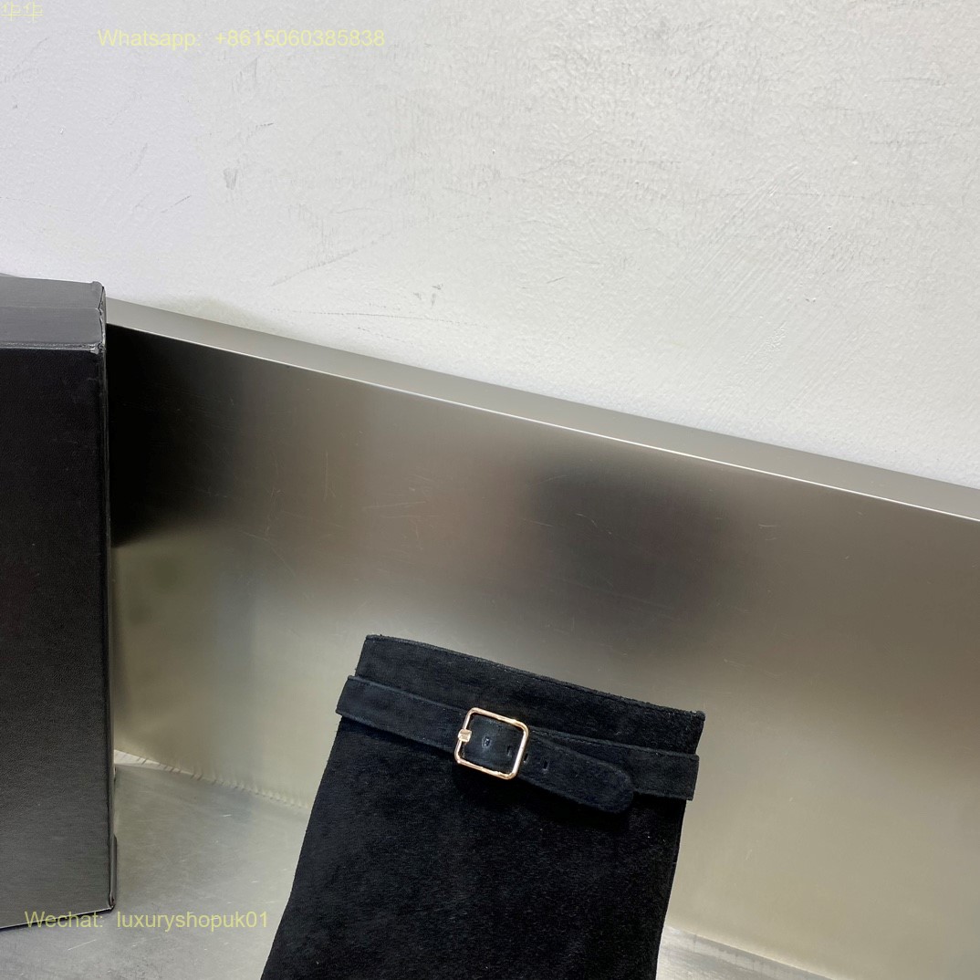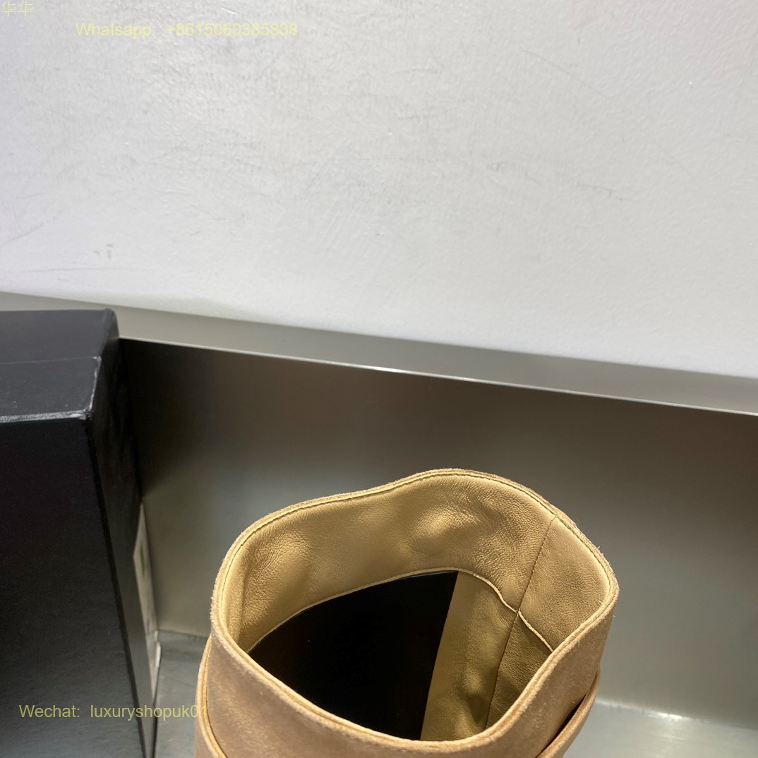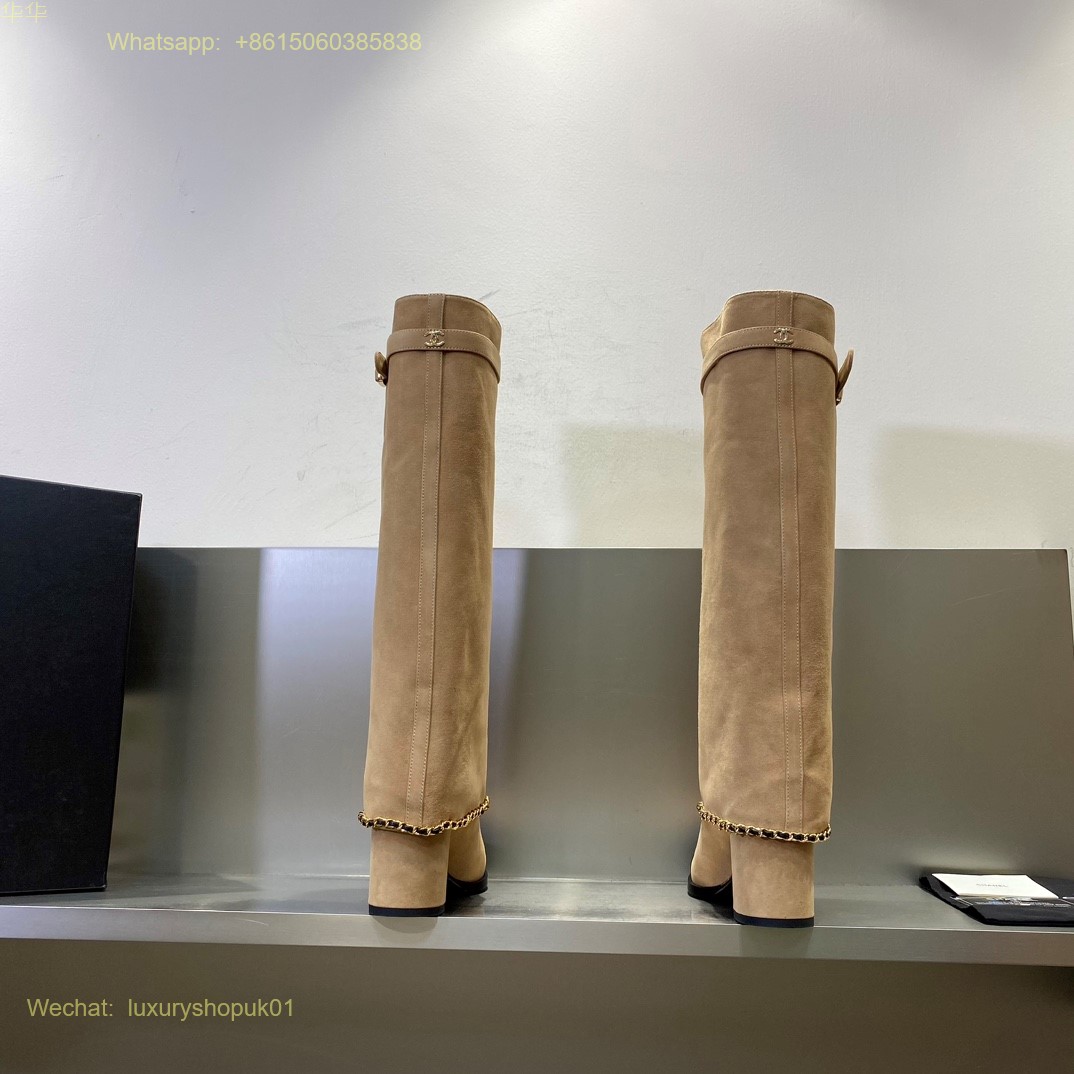 Chanel chain suede leather block heels knee high Boots CC Logo Women Shoes