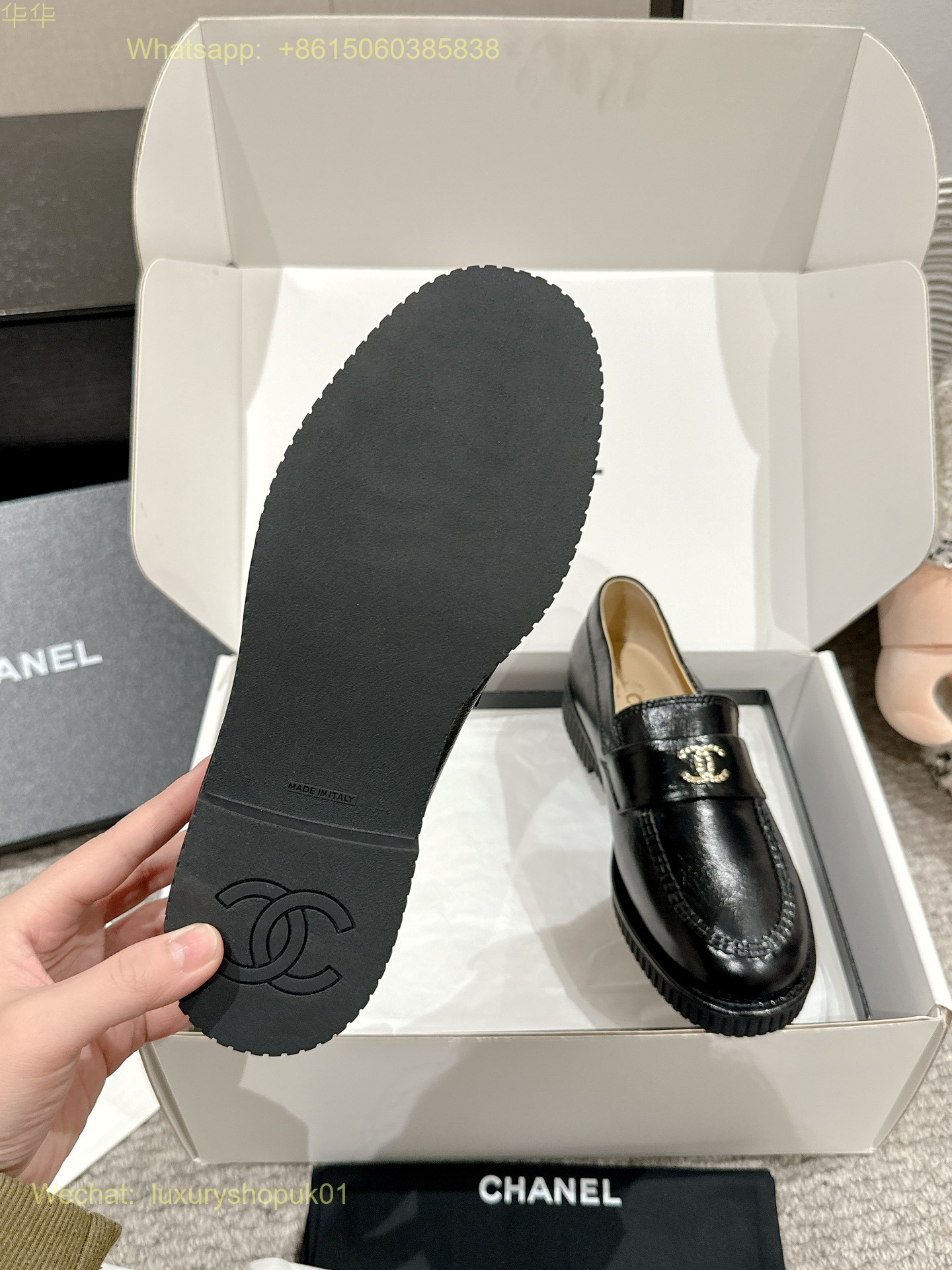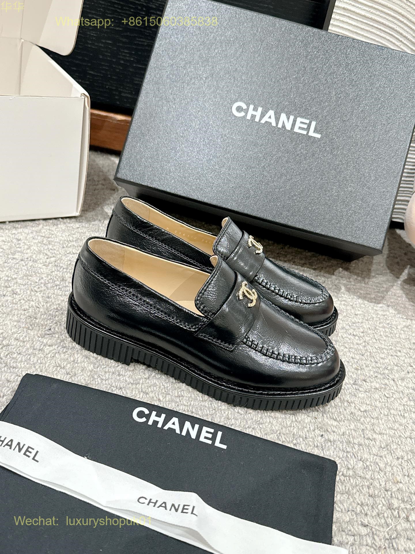 Chanel Leather Loafer flat CC Logo Women Shoes