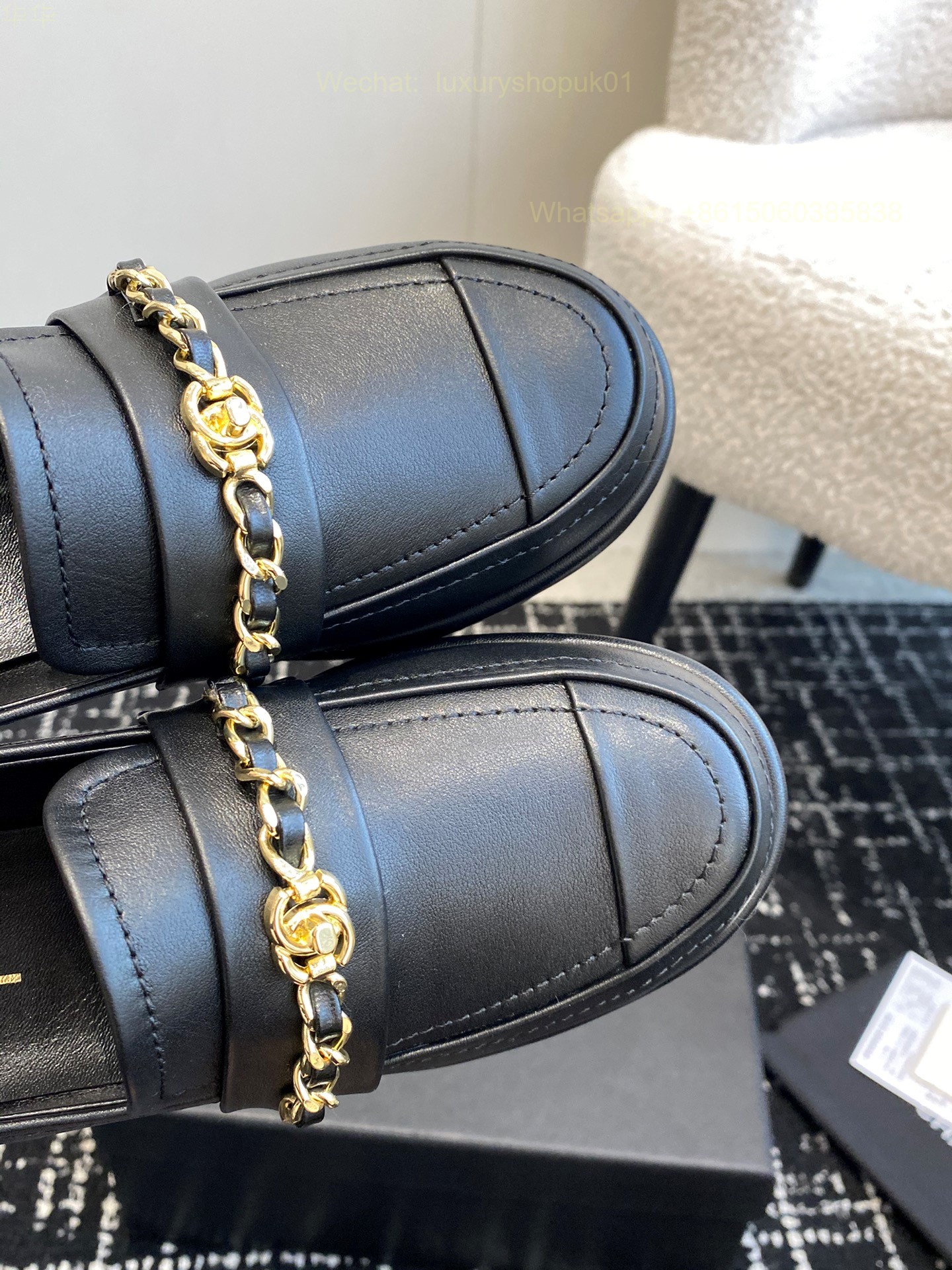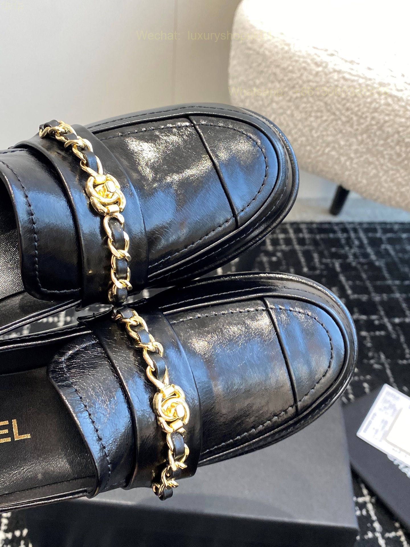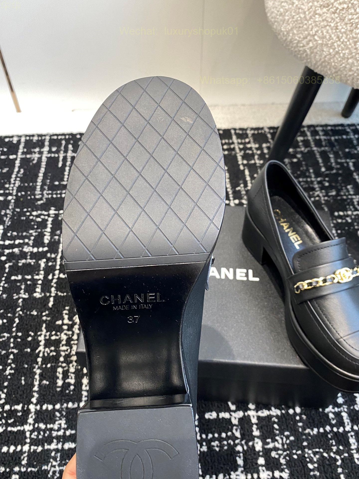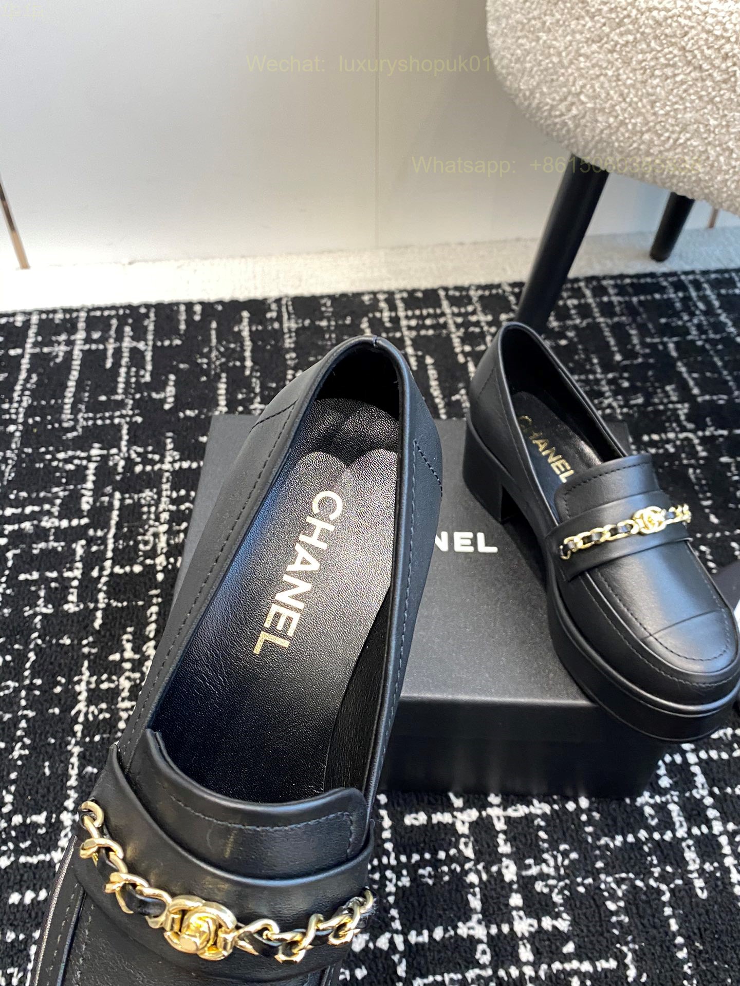Chanel Chain Leather Loafer flat CC Logo Women Shoes