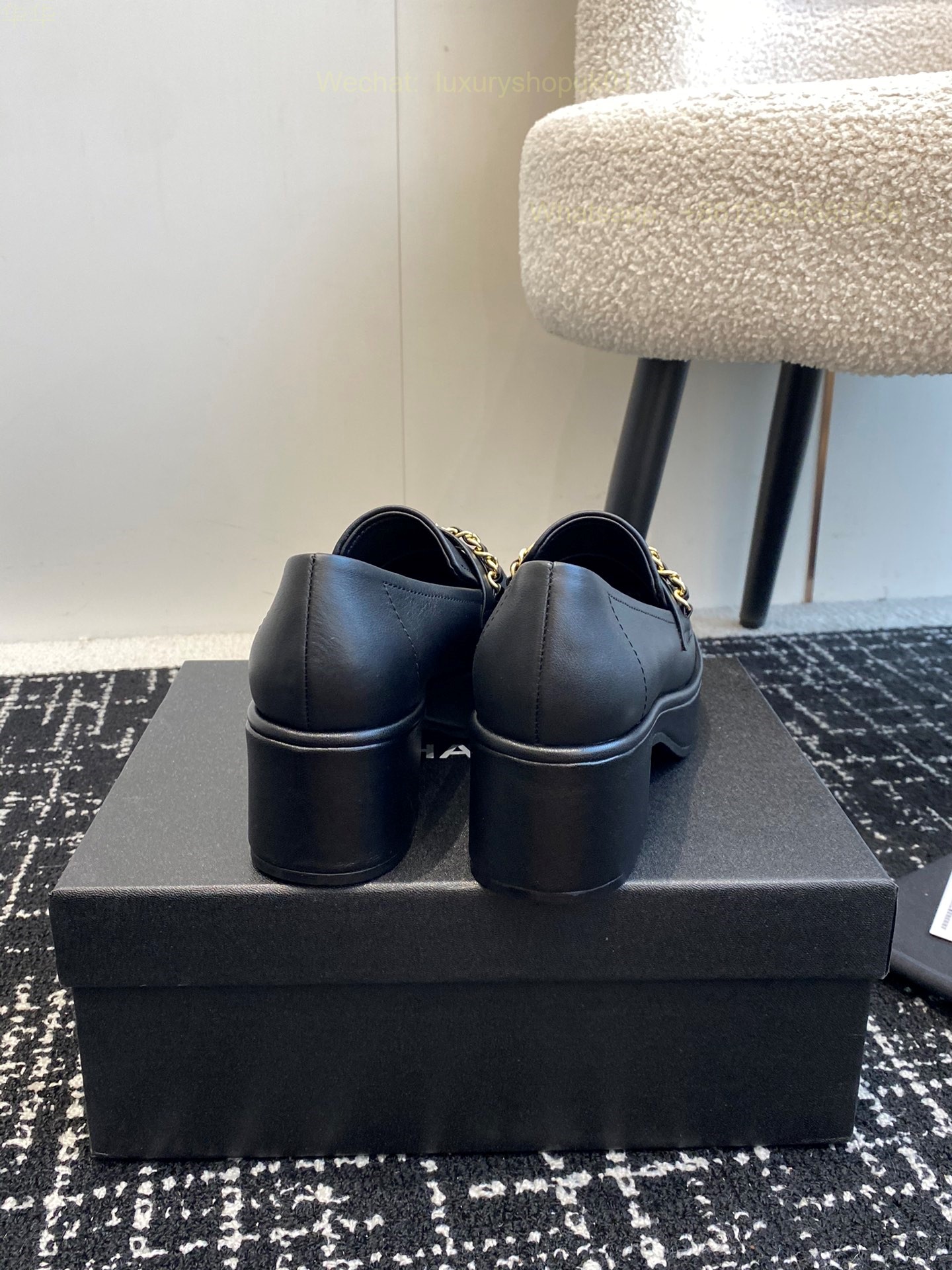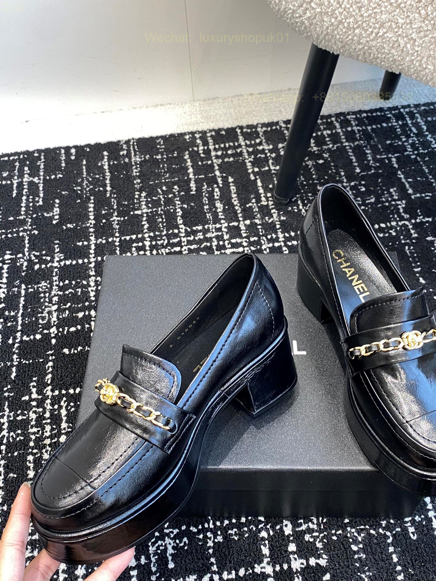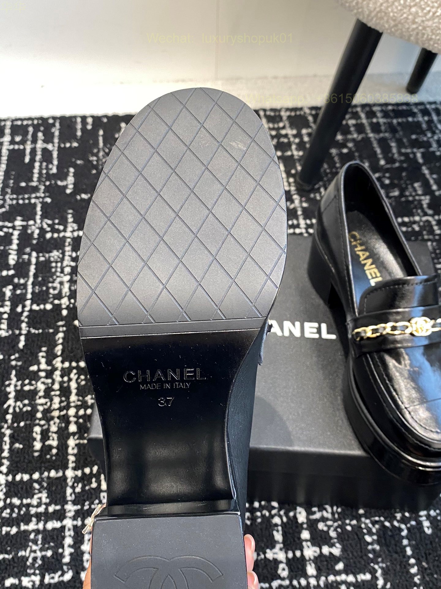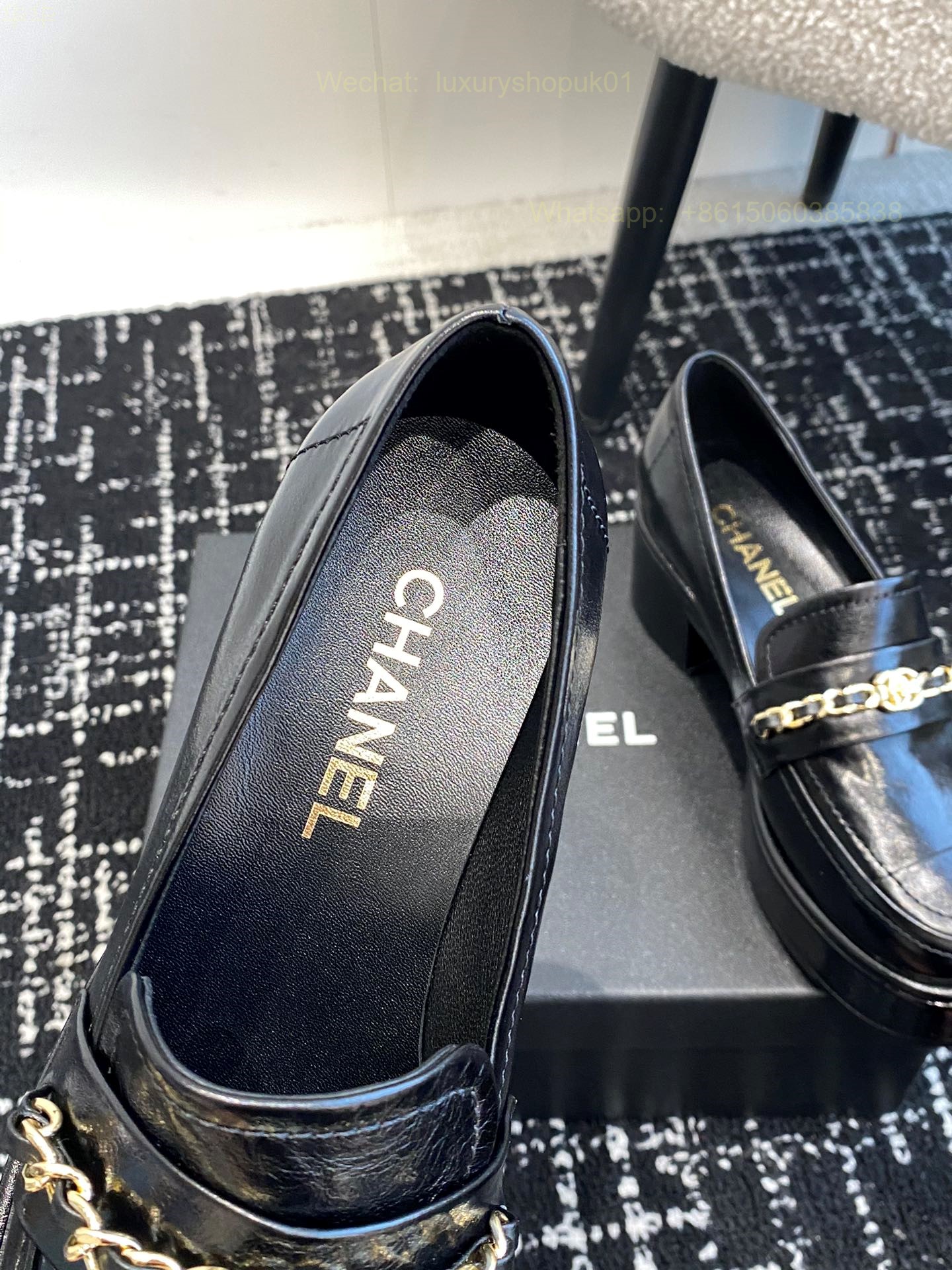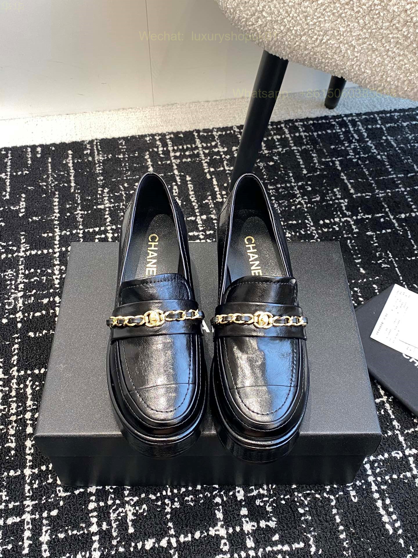Chanel Chain Leather Loafer flat CC Logo Women Shoes