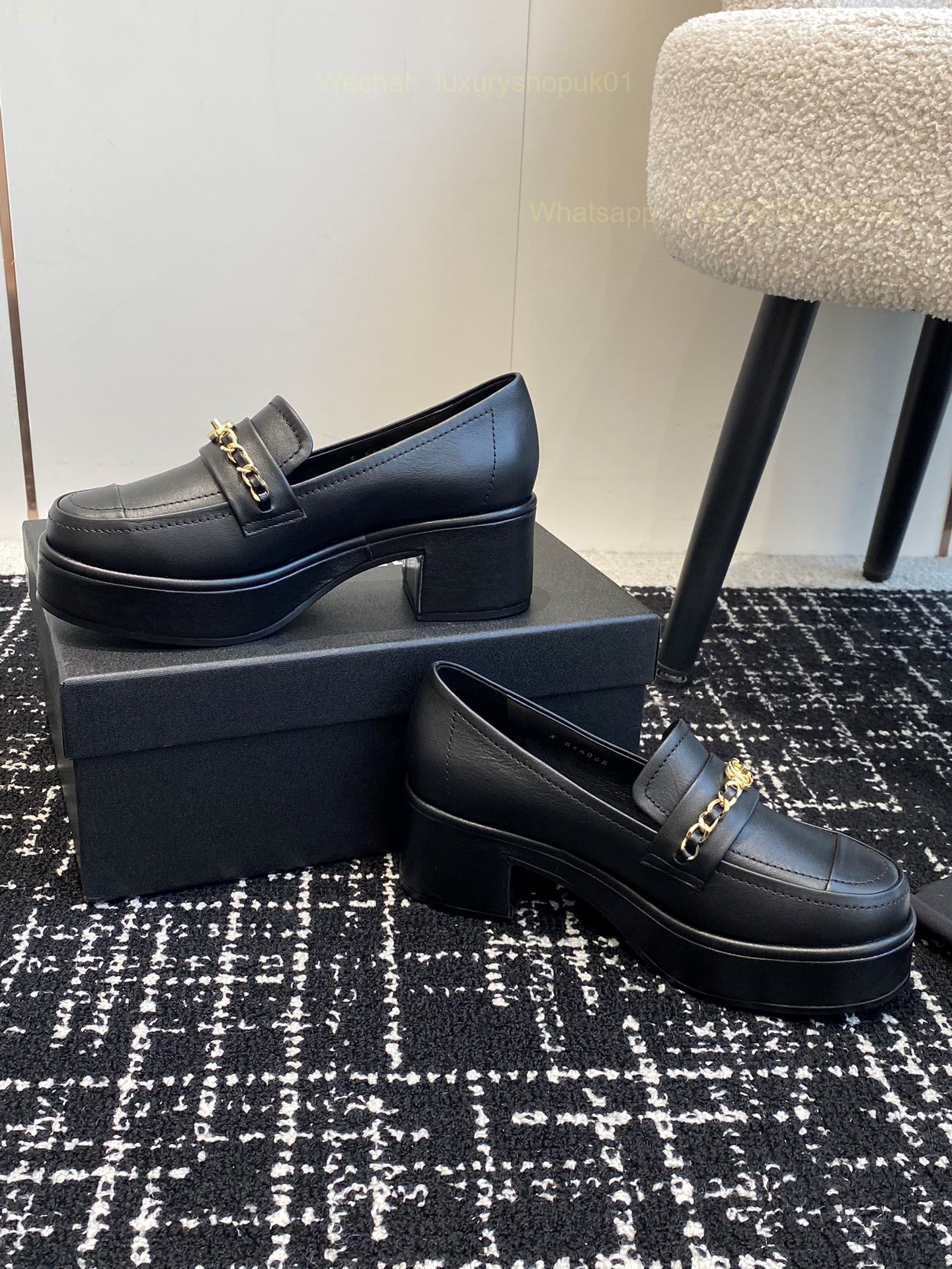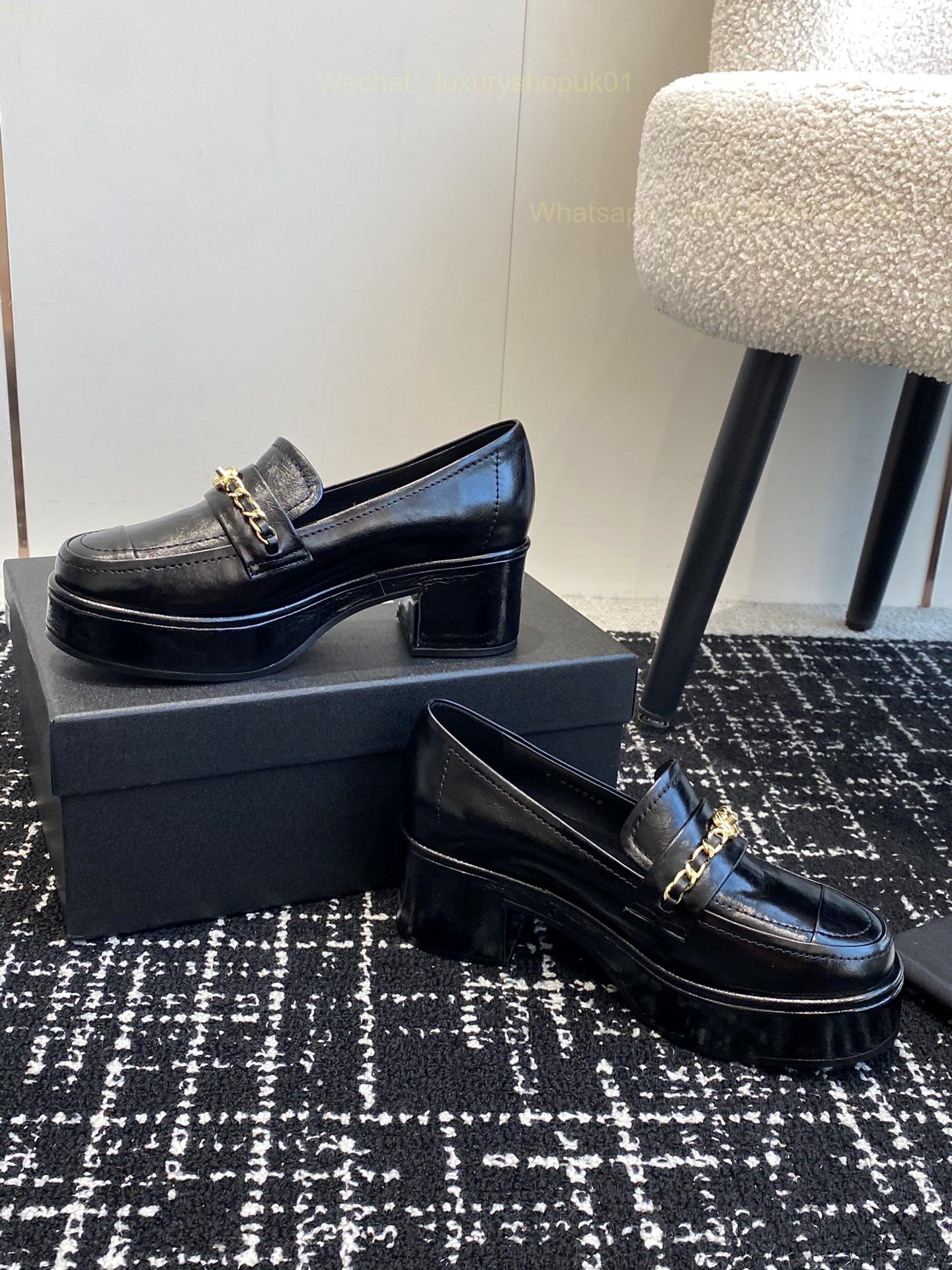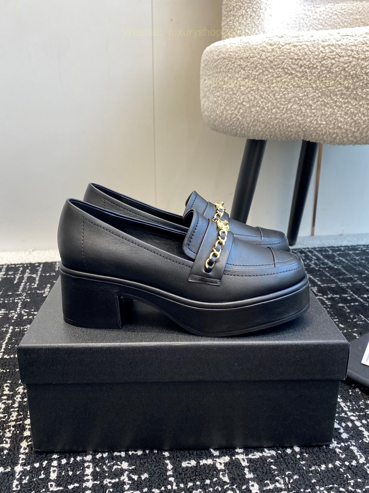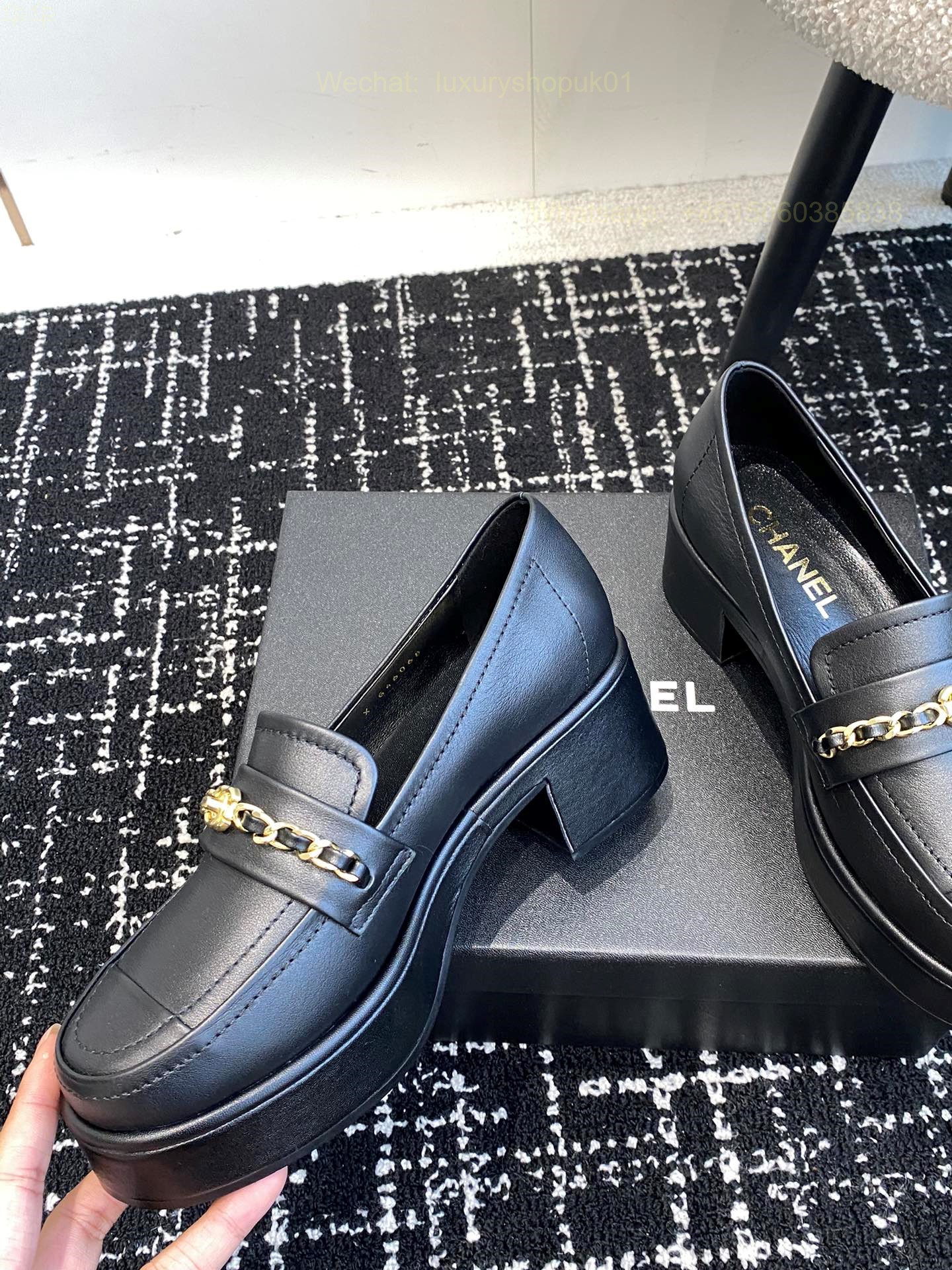 Chanel Chain Leather Loafer flat CC Logo Women Shoes