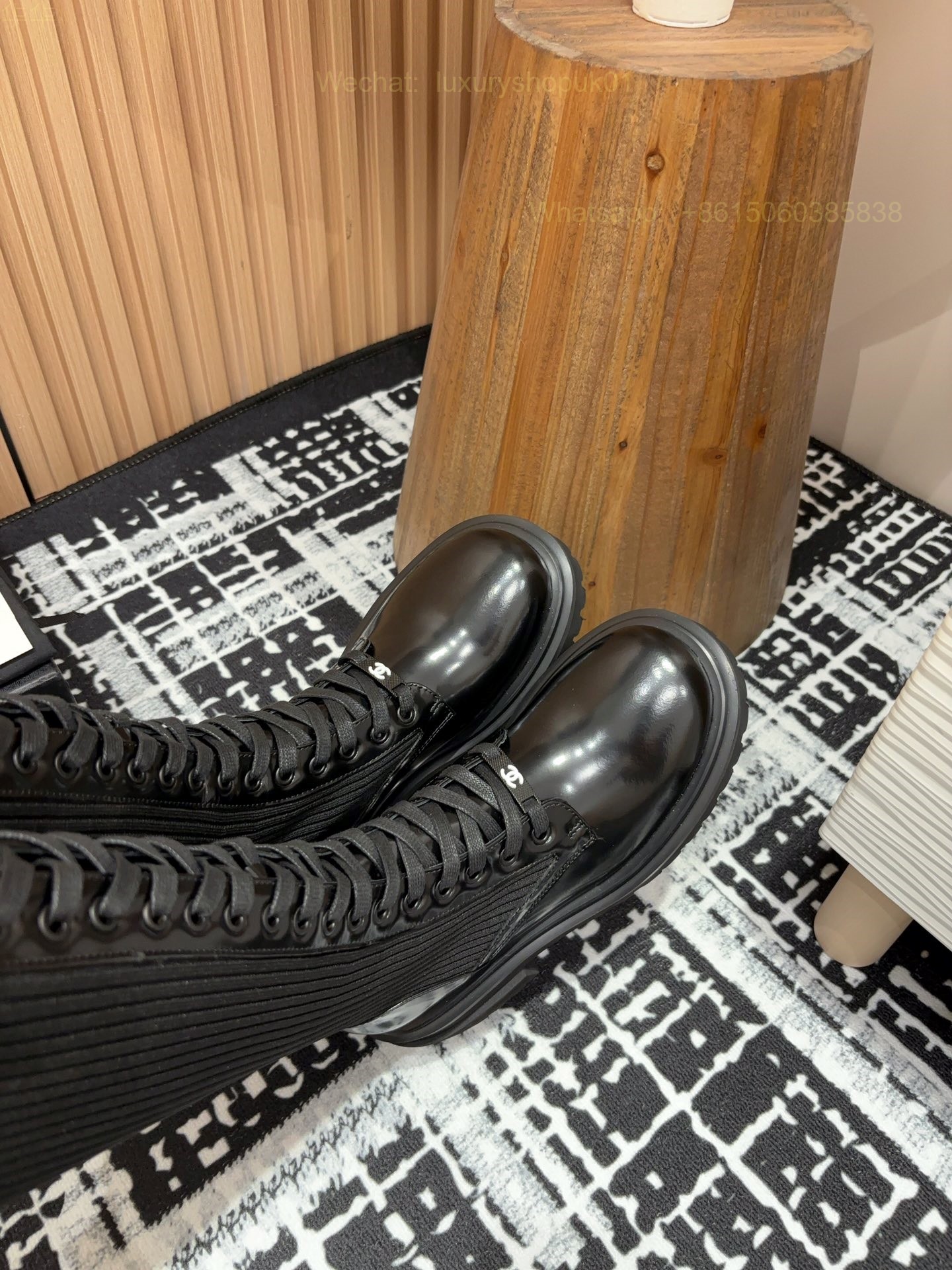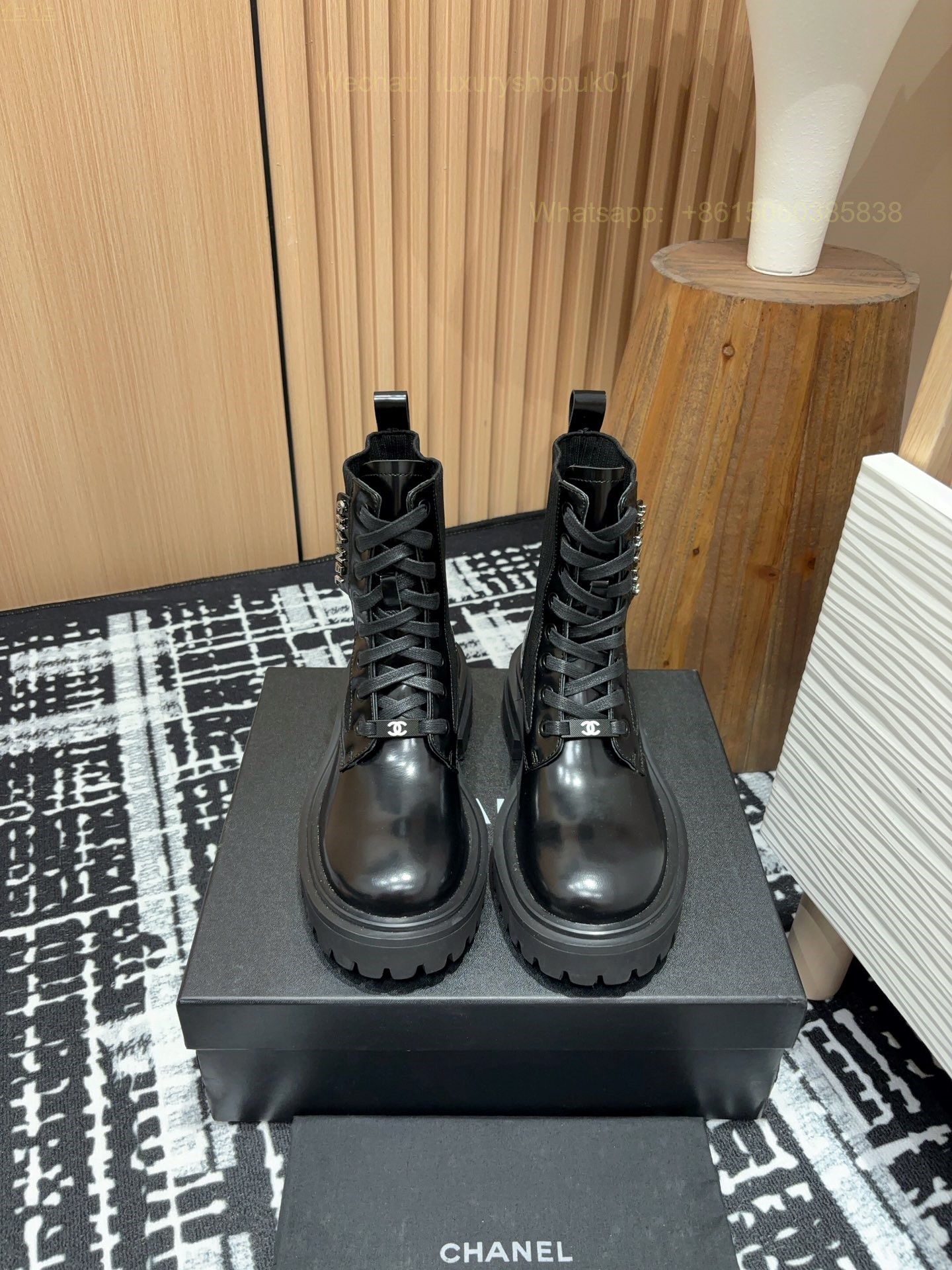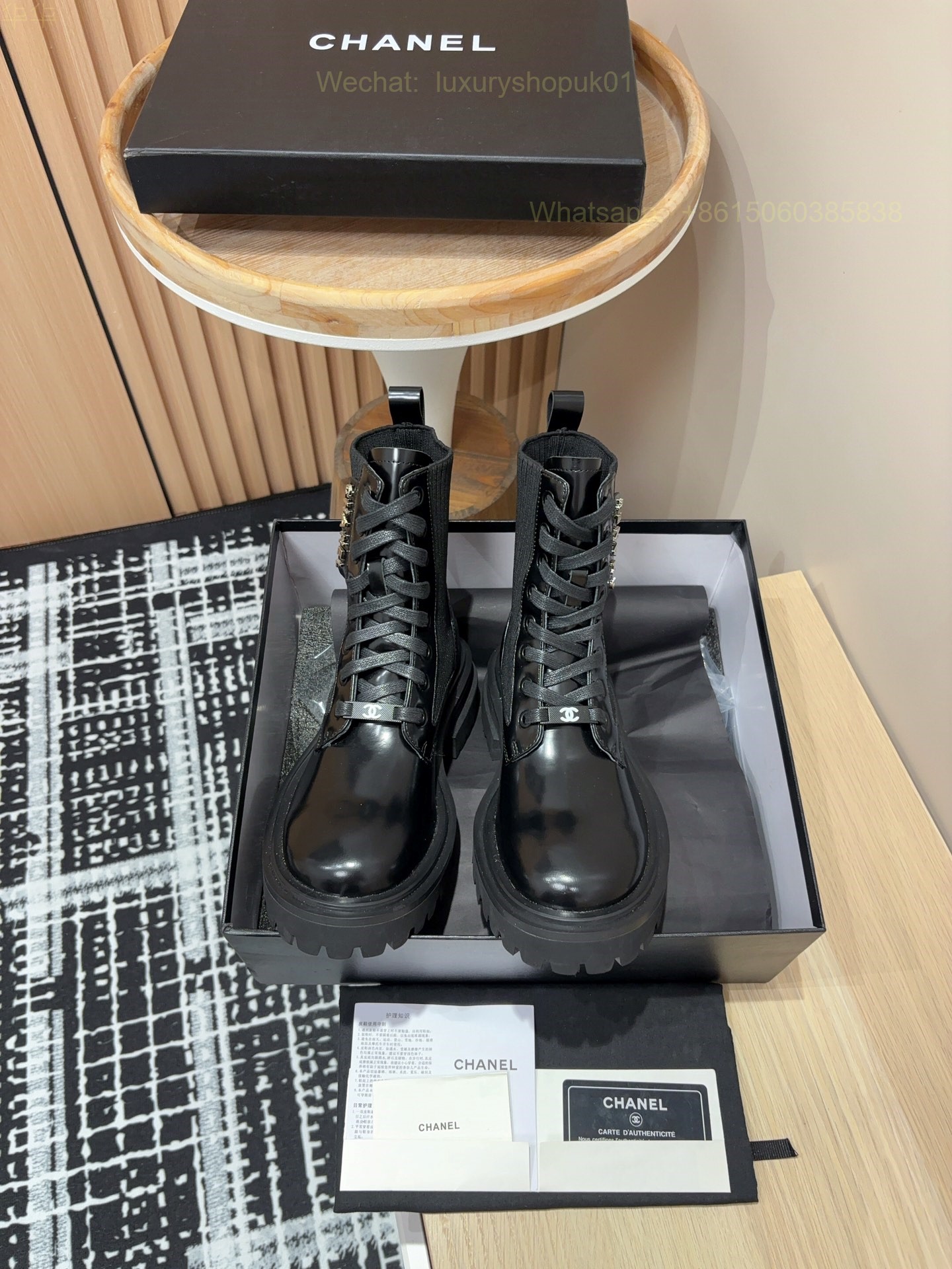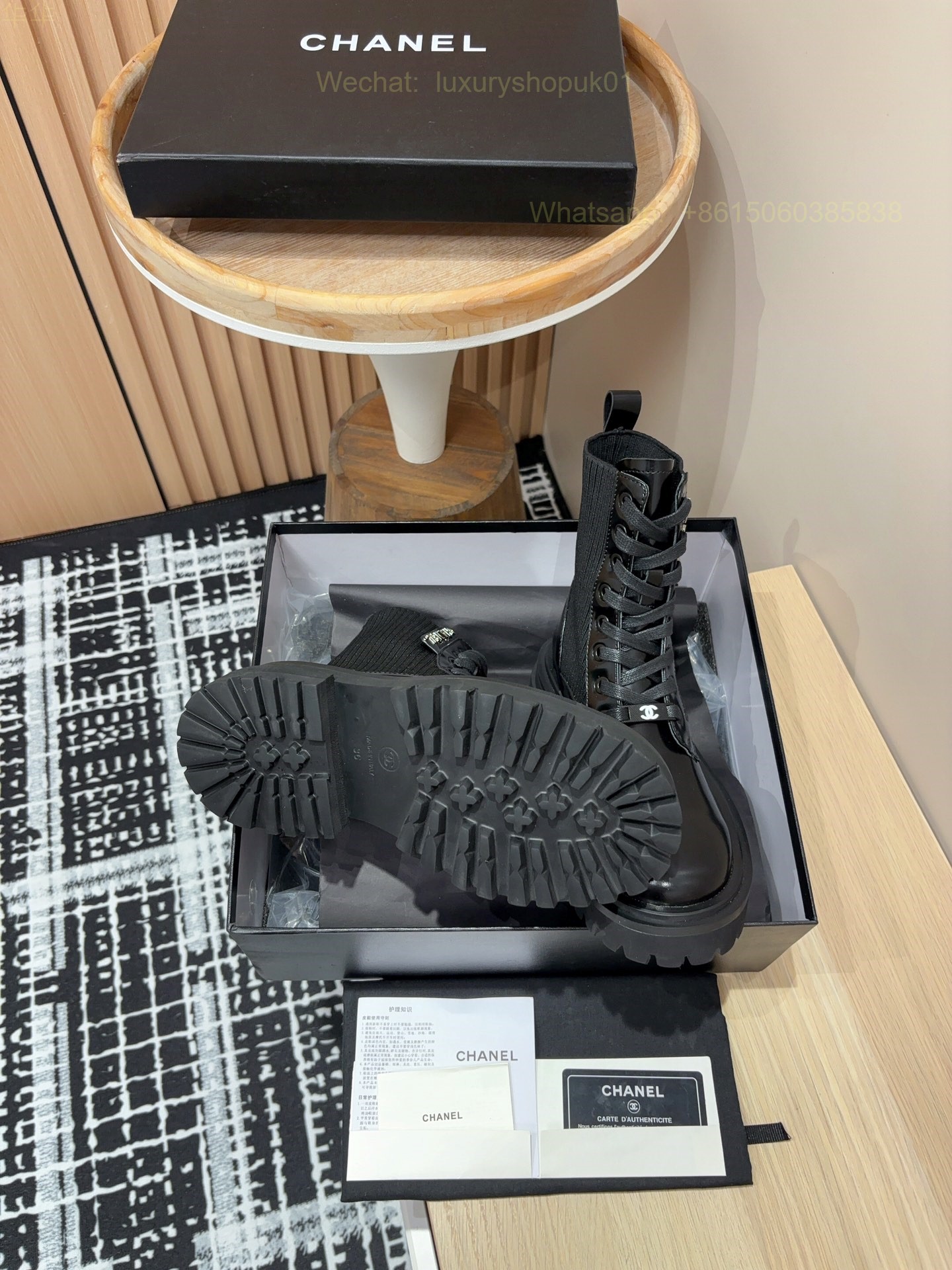 Chanel leather lace up Loafers flat CC Logo Women Shoes
