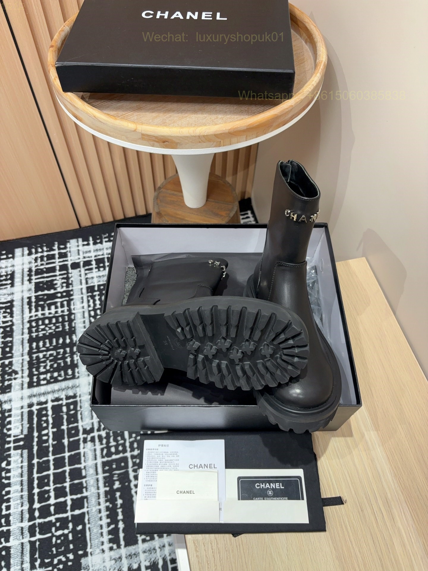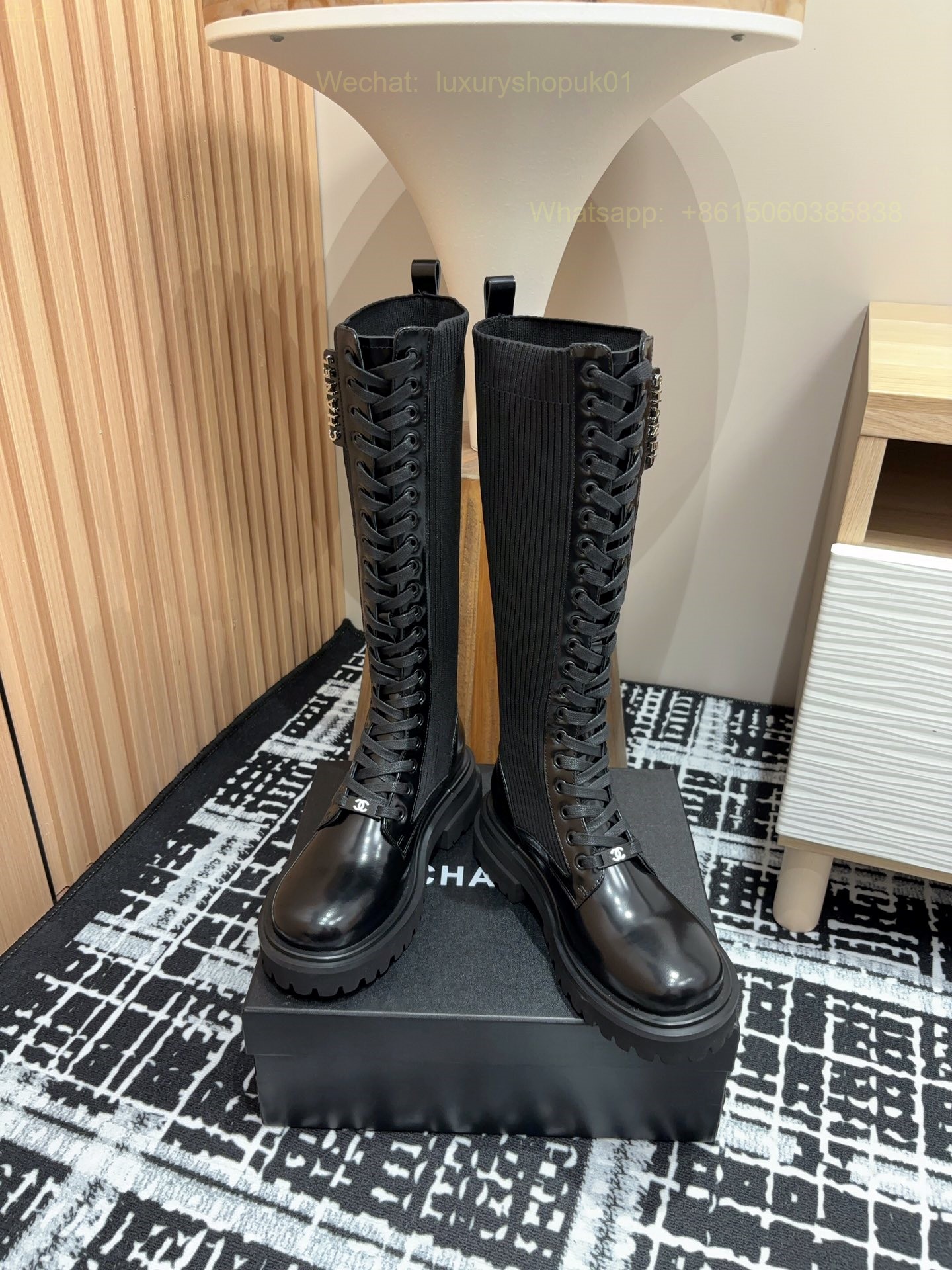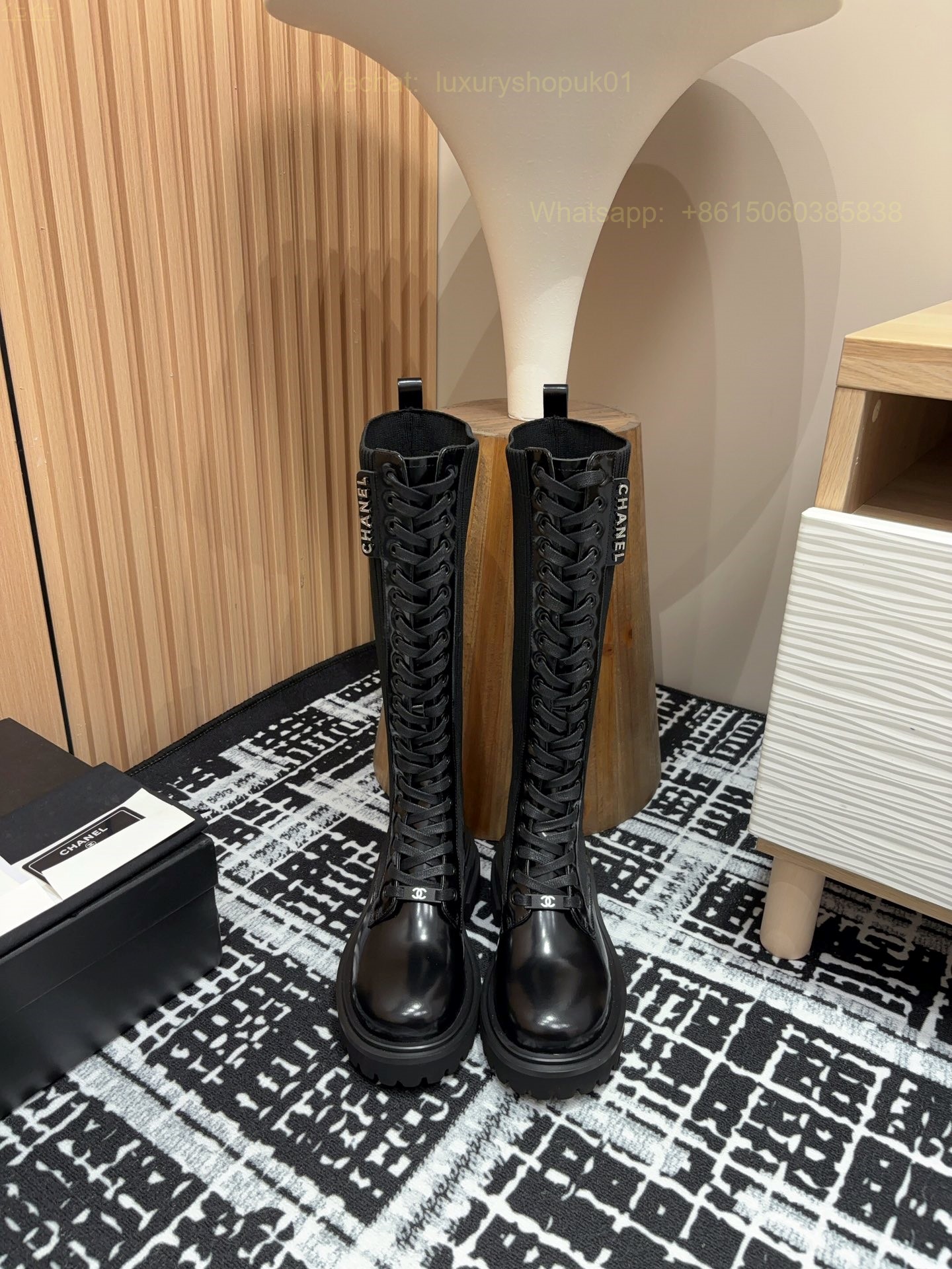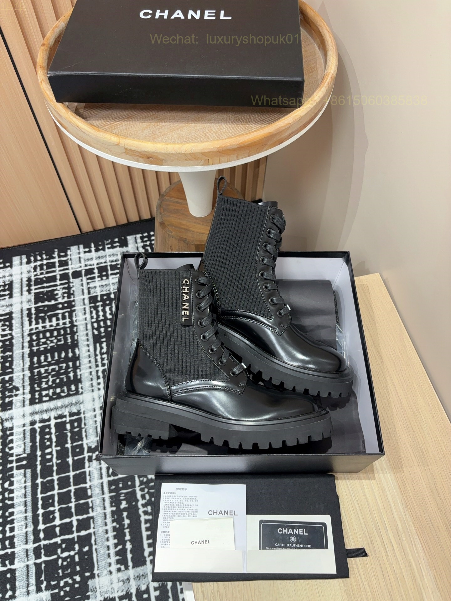 Chanel leather lace up Loafers flat CC Logo Women Shoes