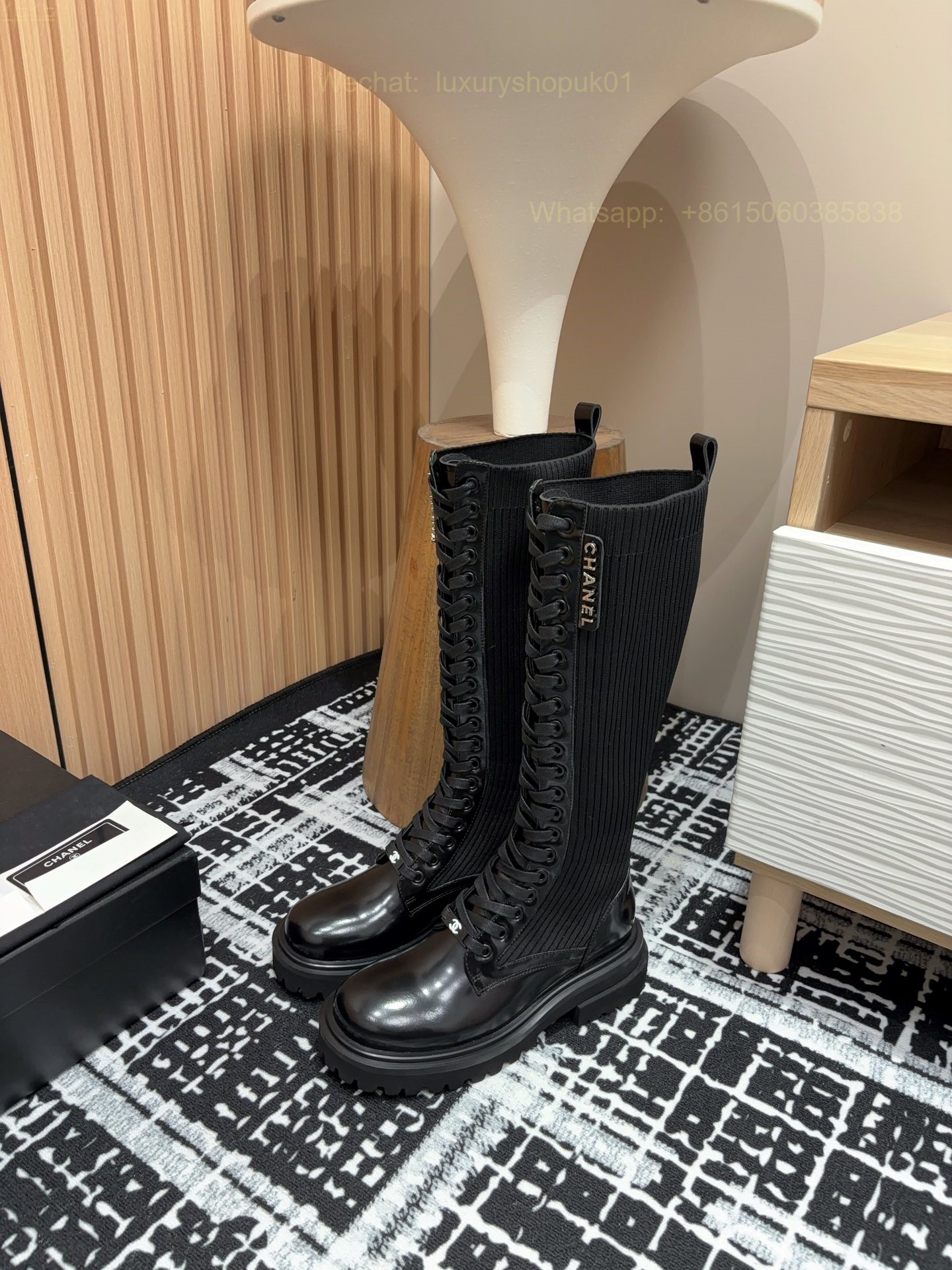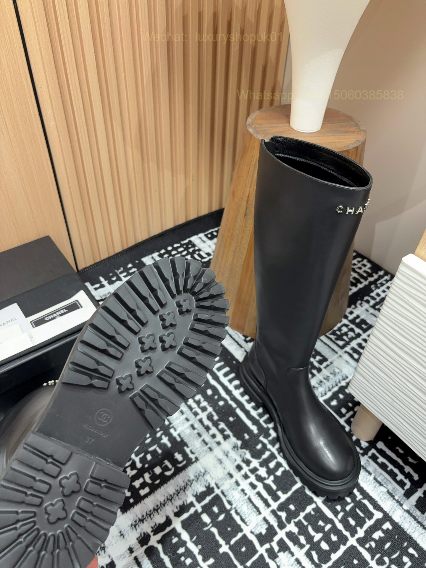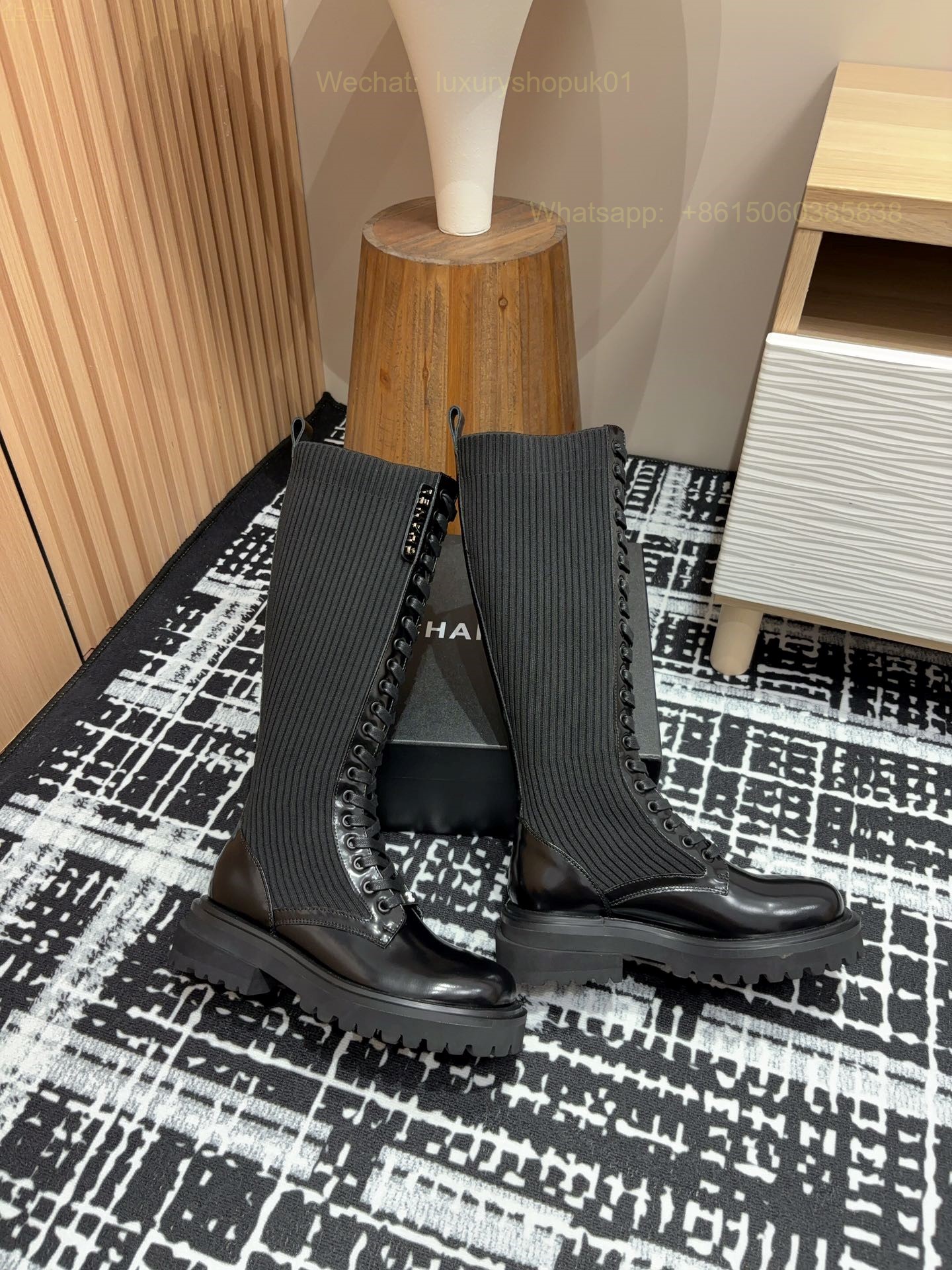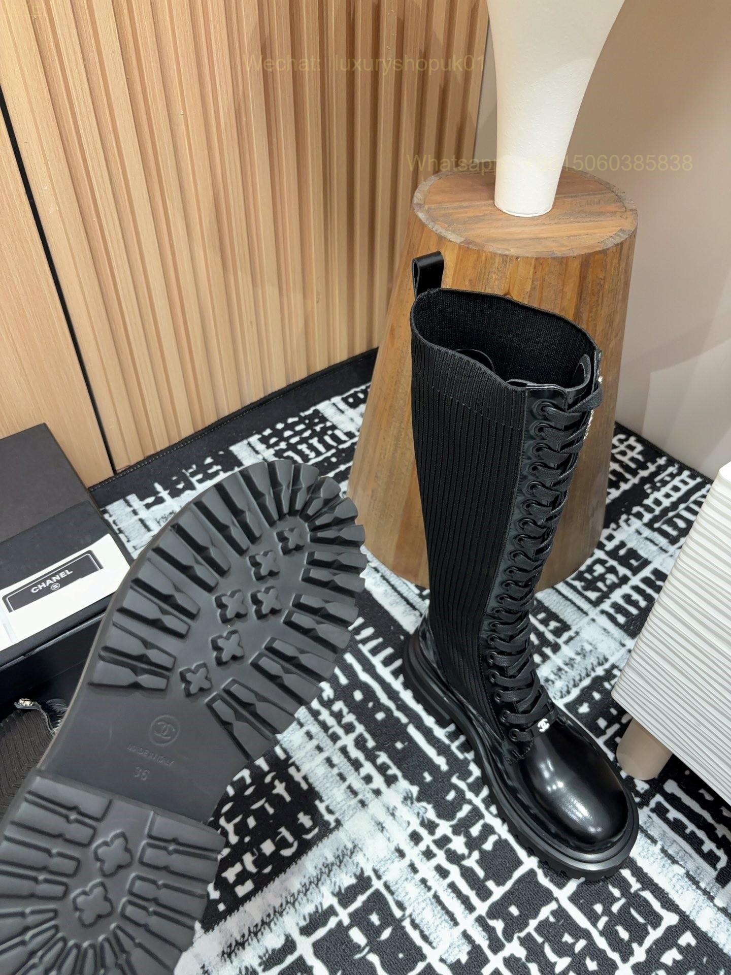 Chanel leather lace up Loafers flat CC Logo Women Shoes