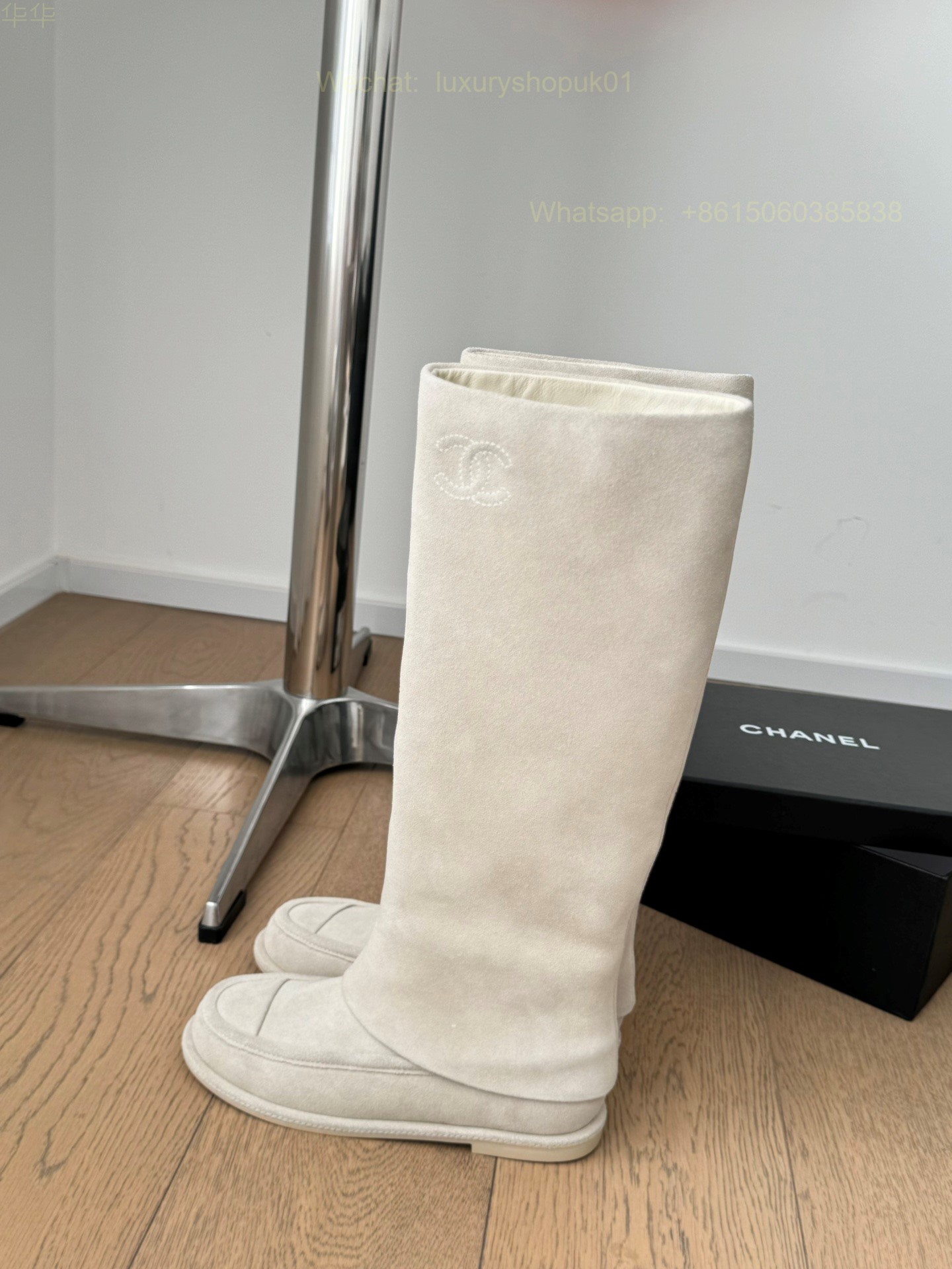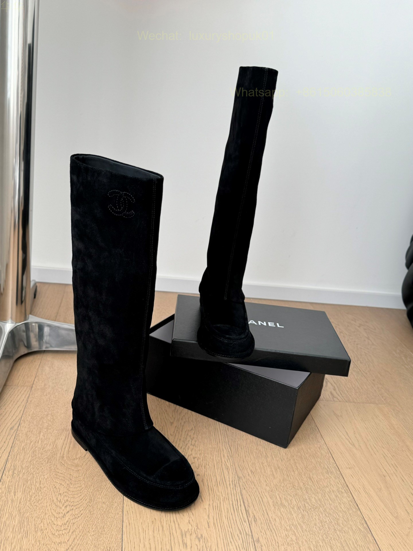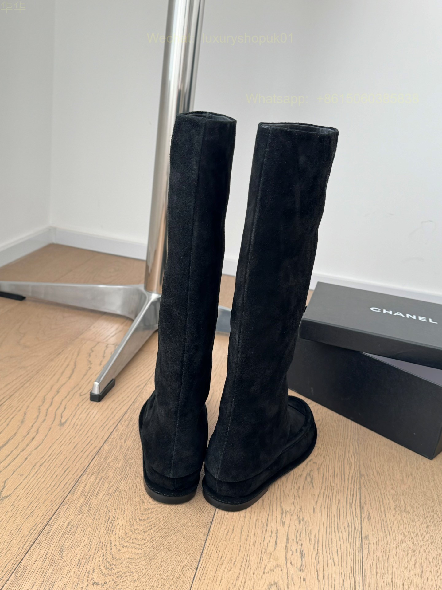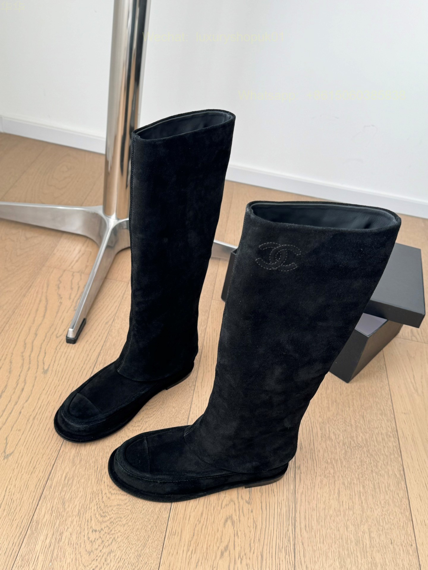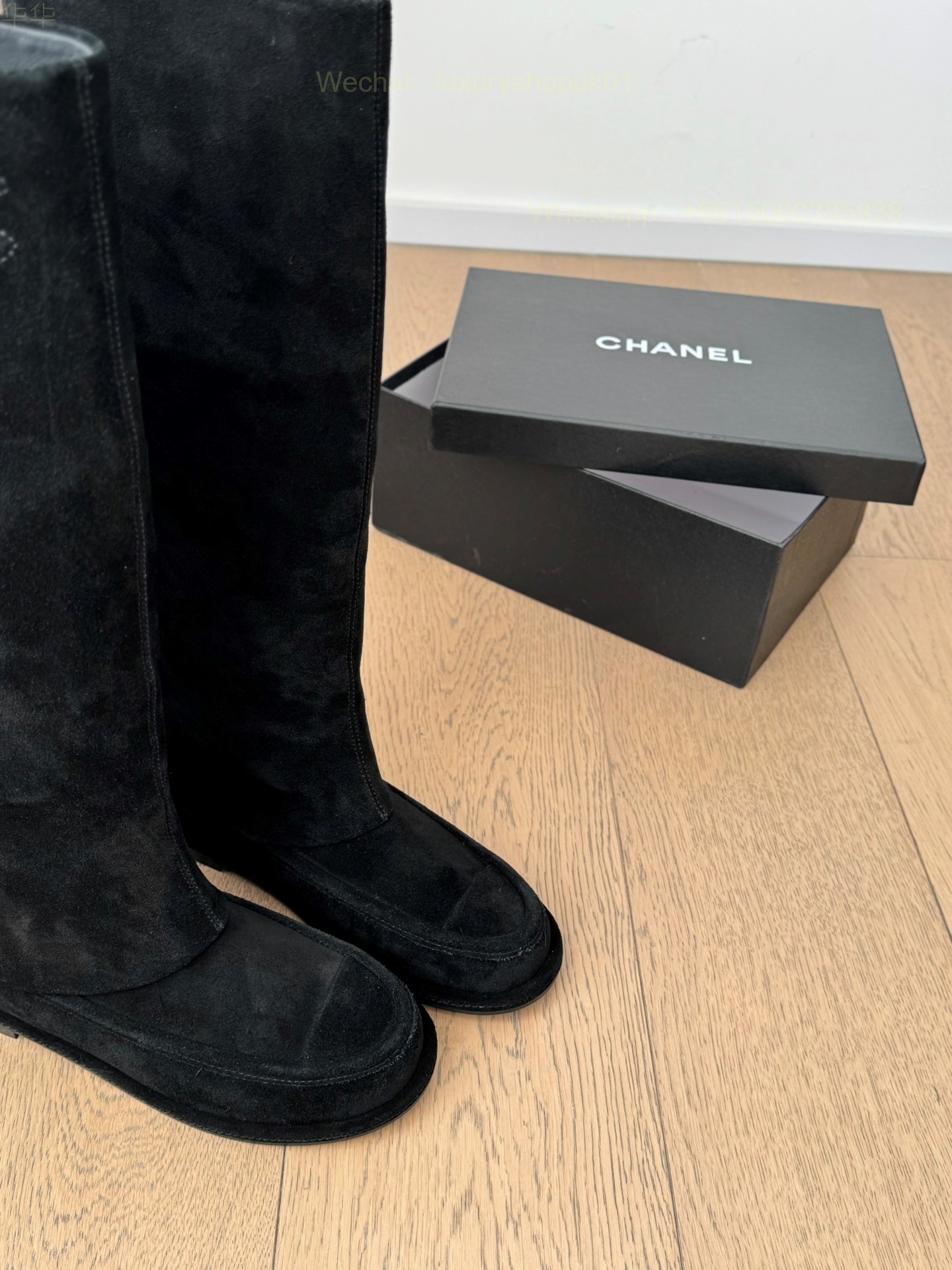 Chanel Suede Leather CC Logo Flat Boots Women Shoes