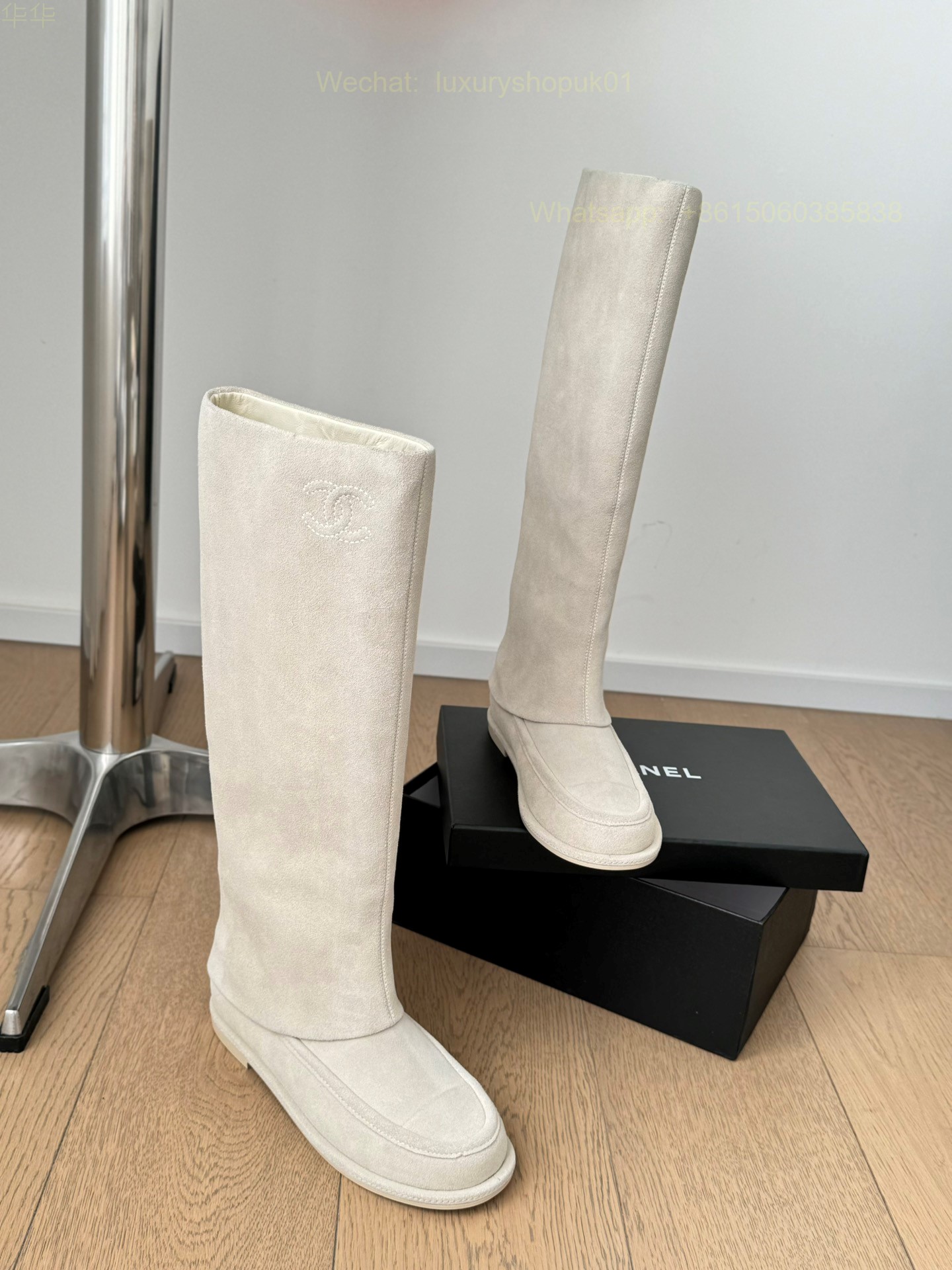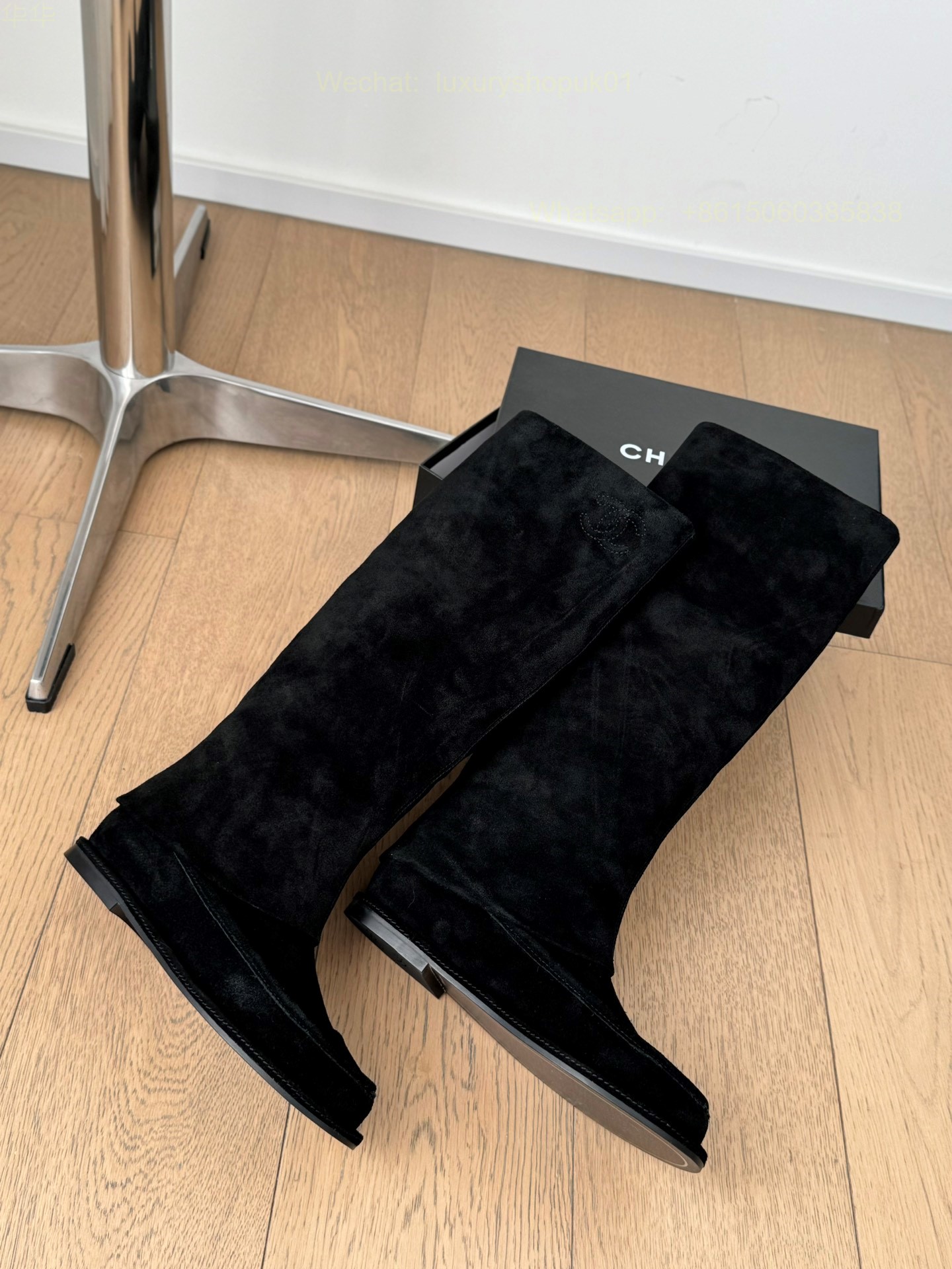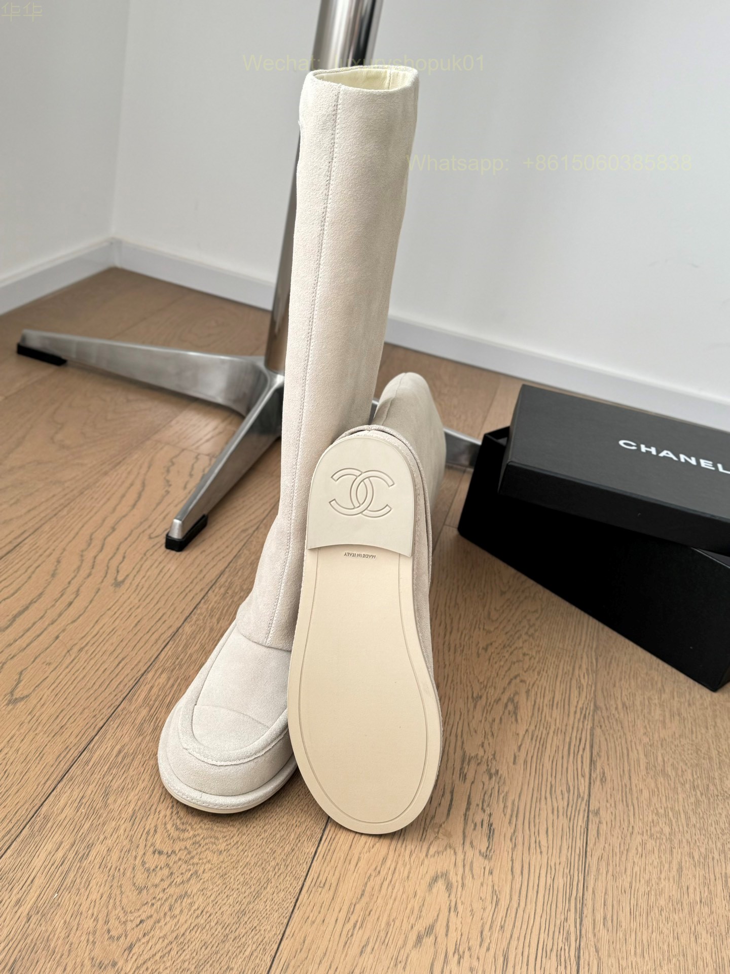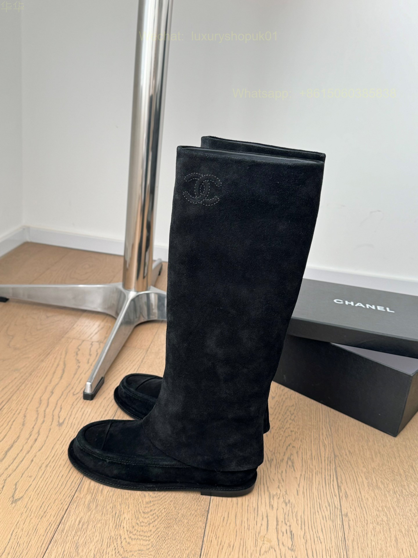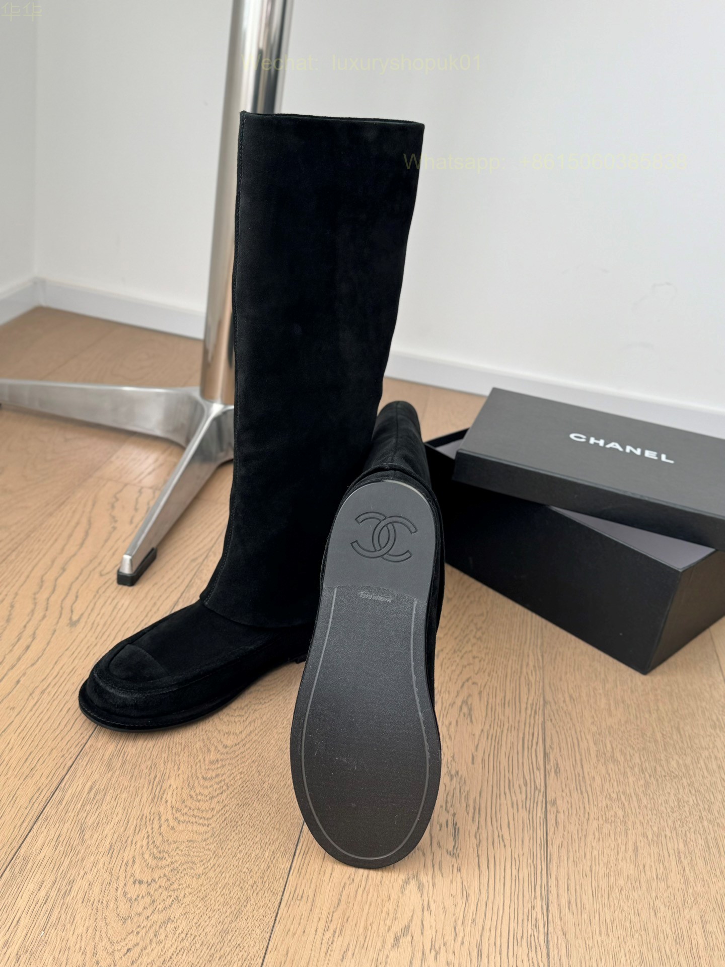Chanel Suede Leather CC Logo Flat Boots Women Shoes