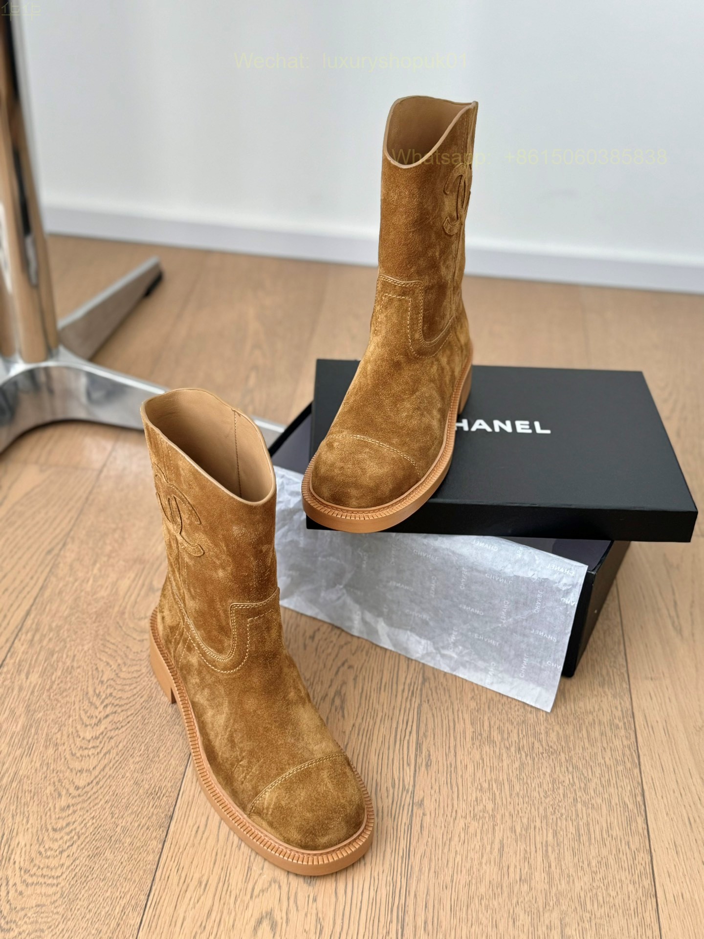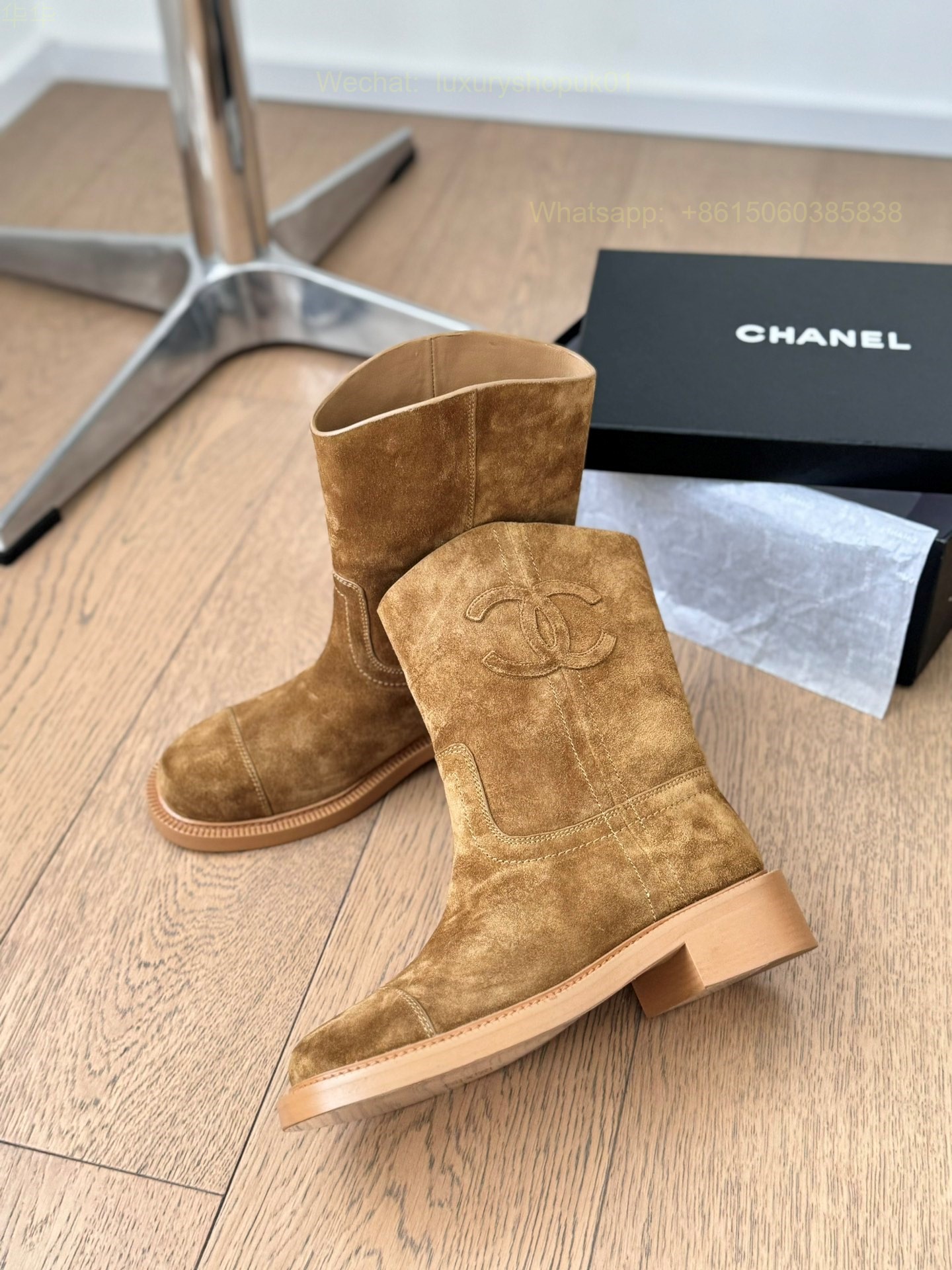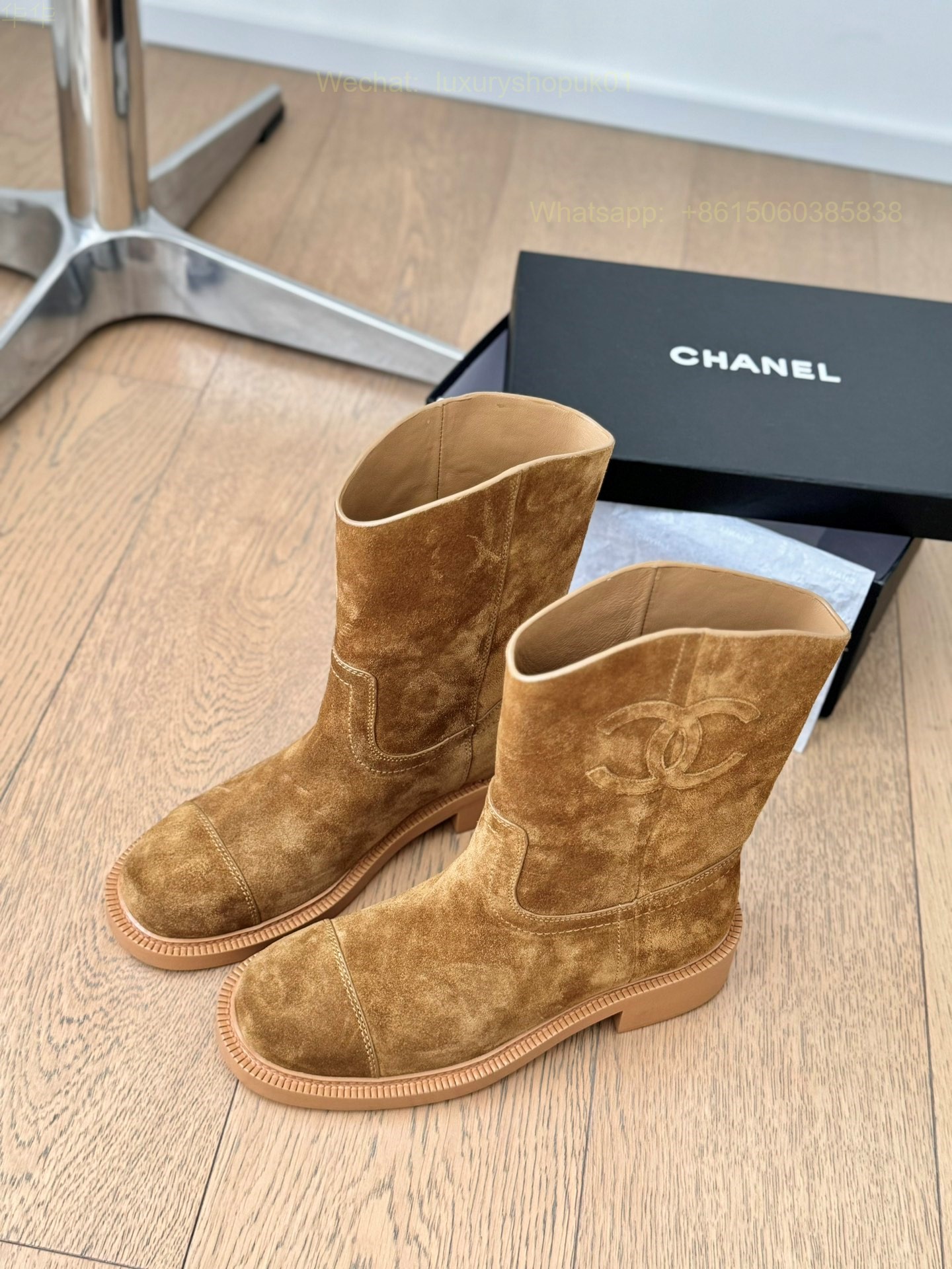 Chanel suede Leather Flat Boot CC Logo Women Shoes