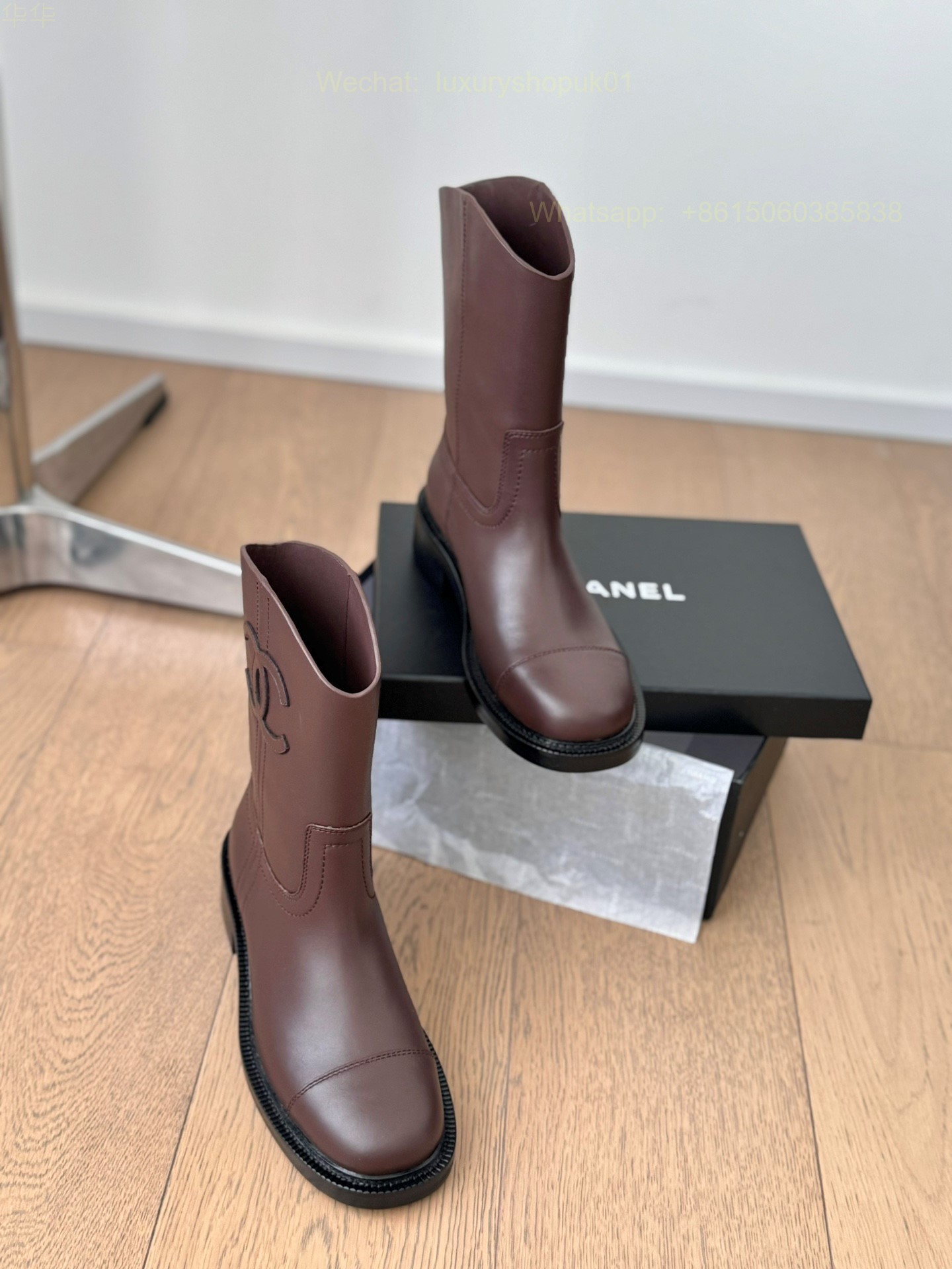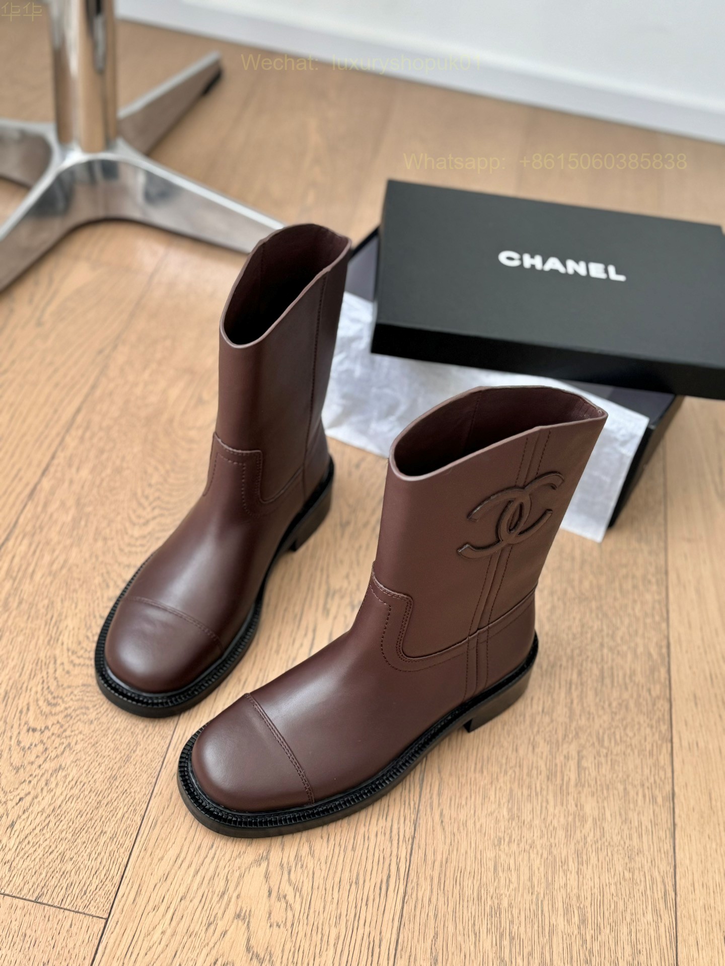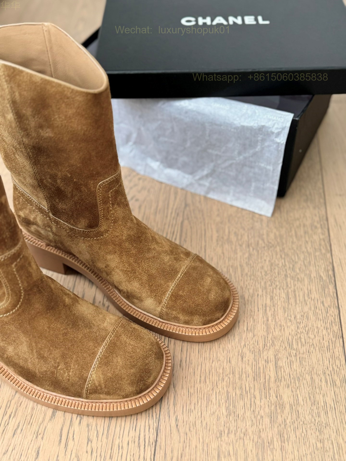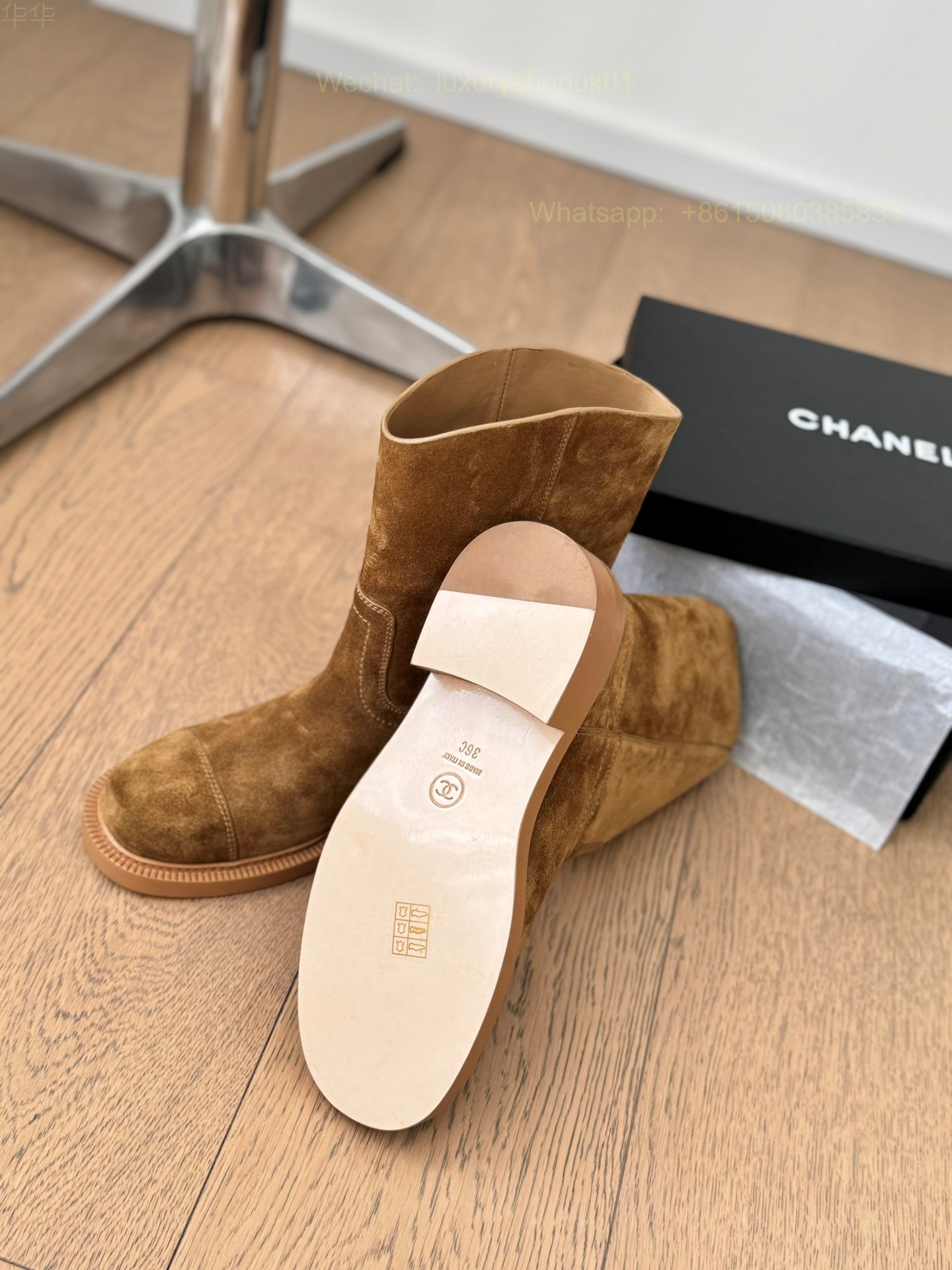 Chanel suede Leather Flat Boot CC Logo Women Shoes