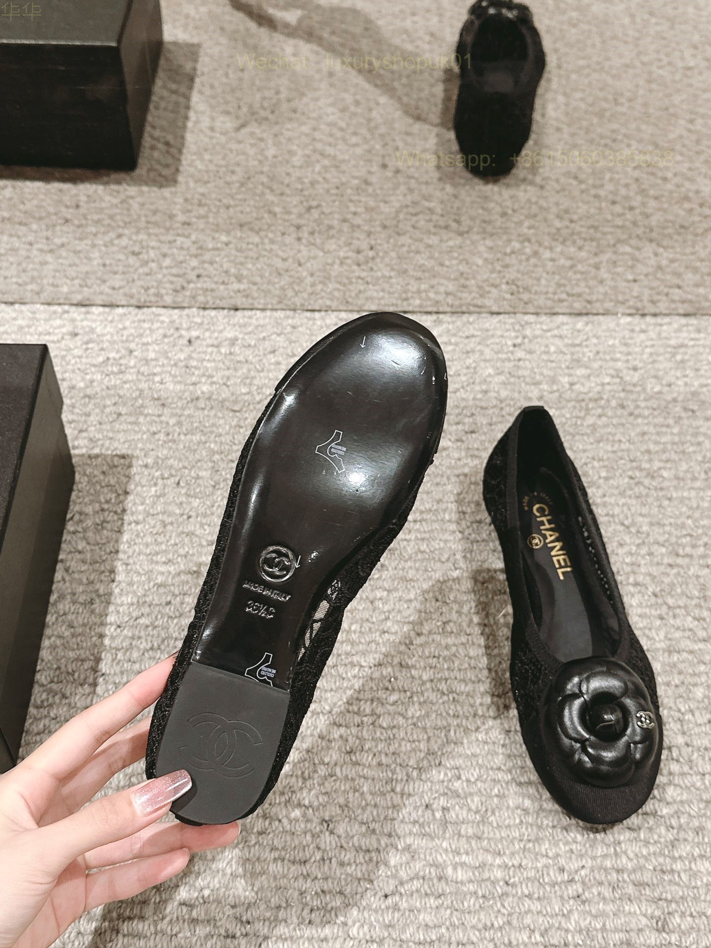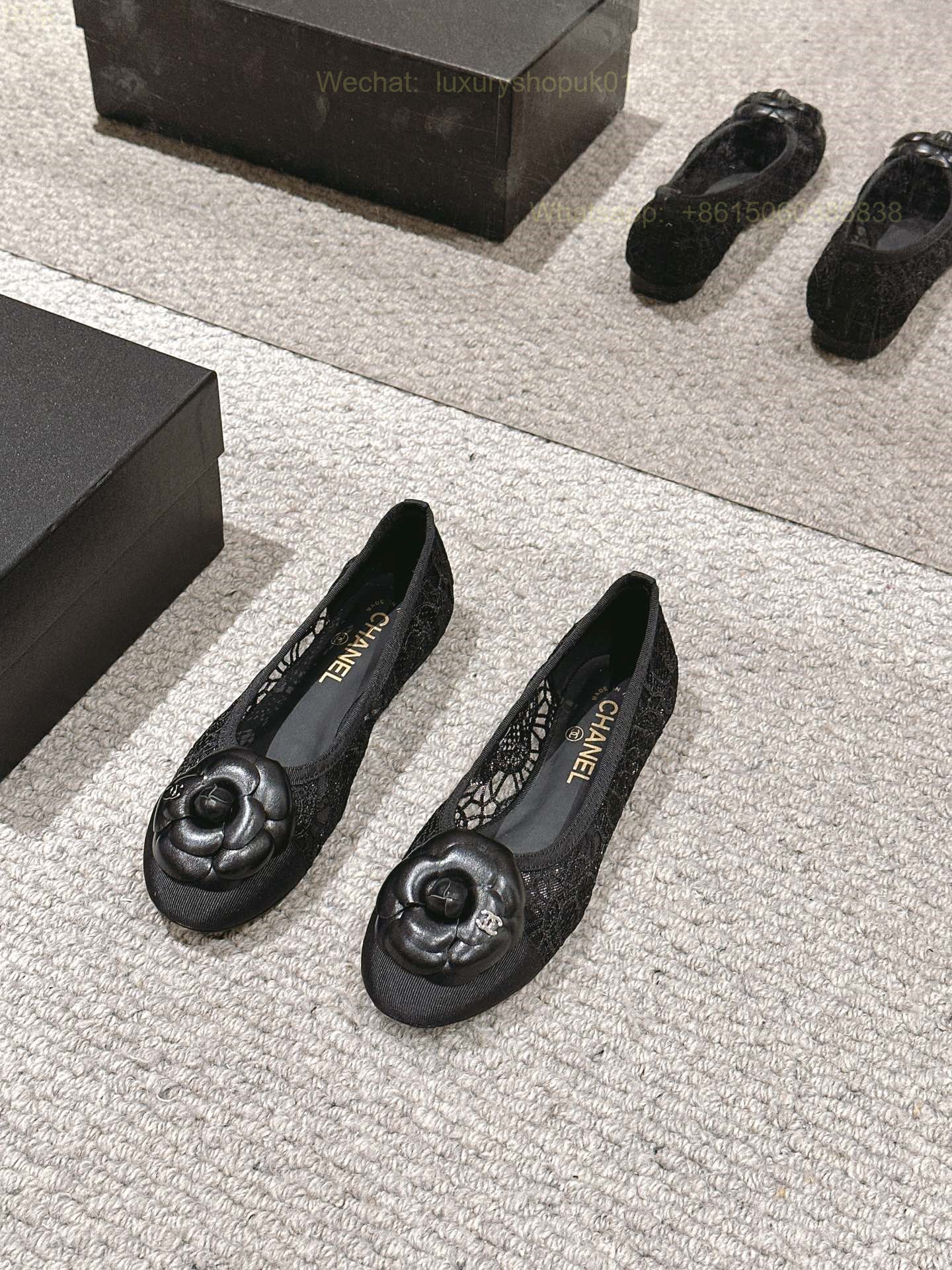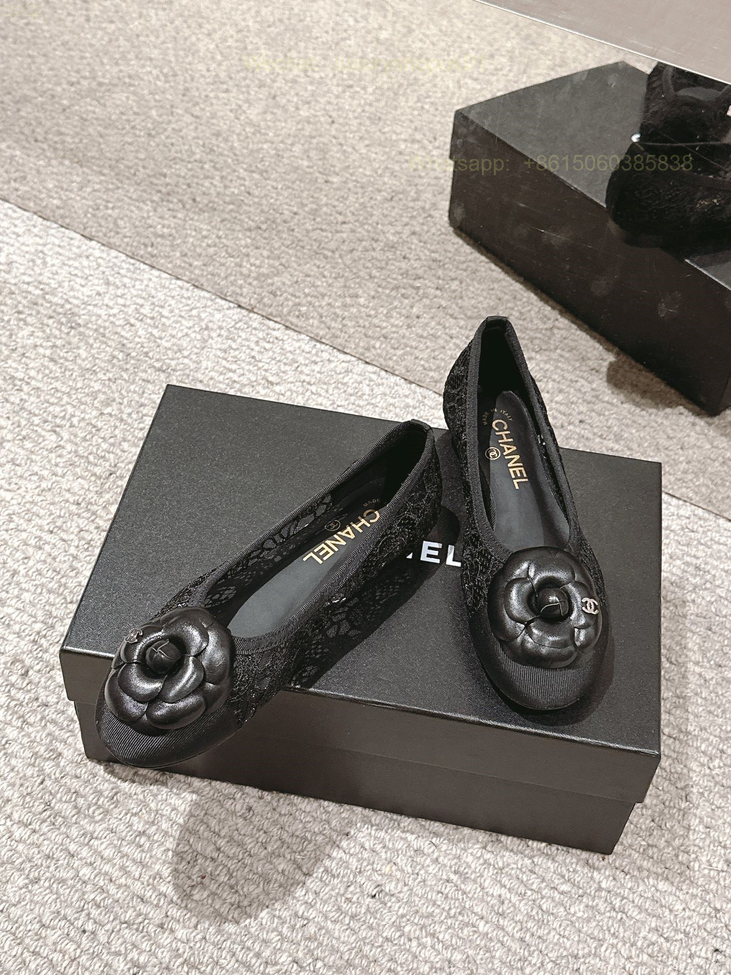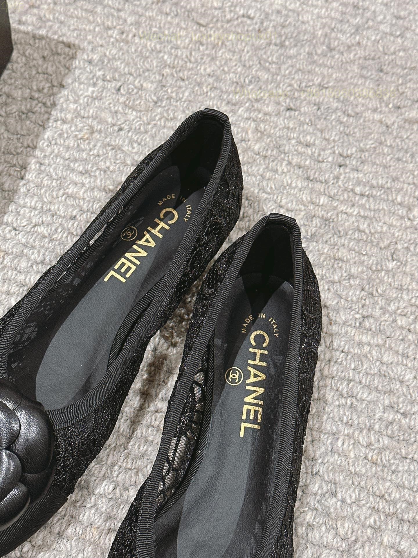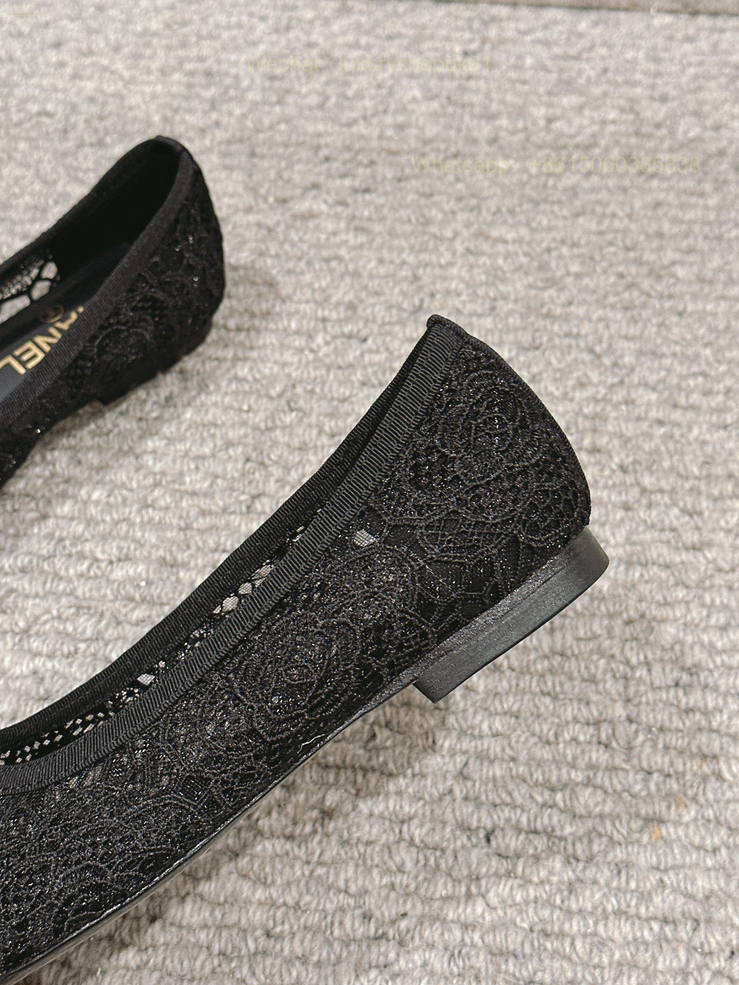 Chanel lace Embellished Camellia floral ballerina flats mesh Women Shoes