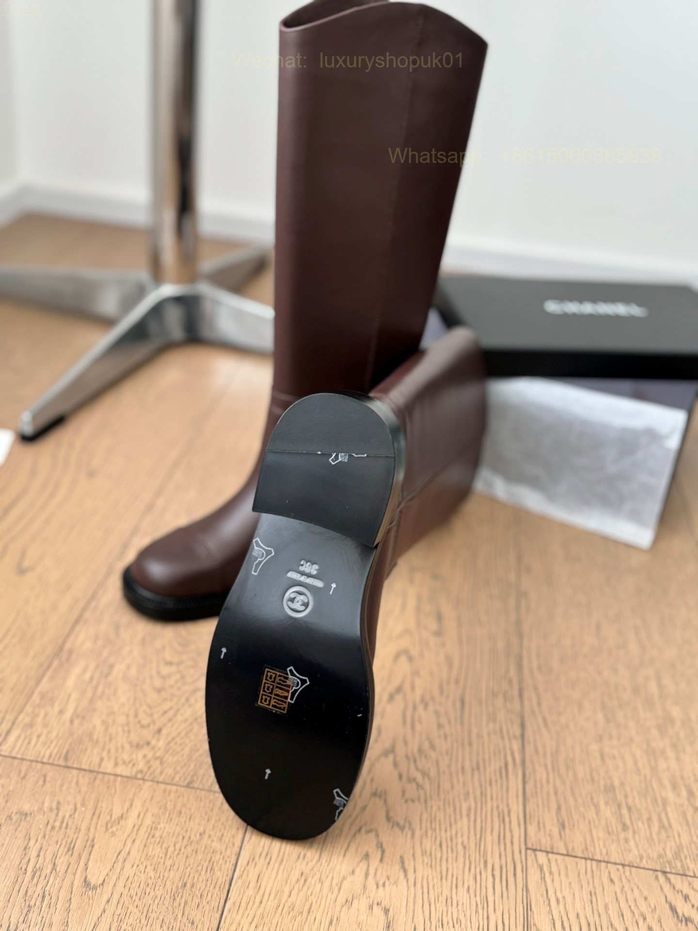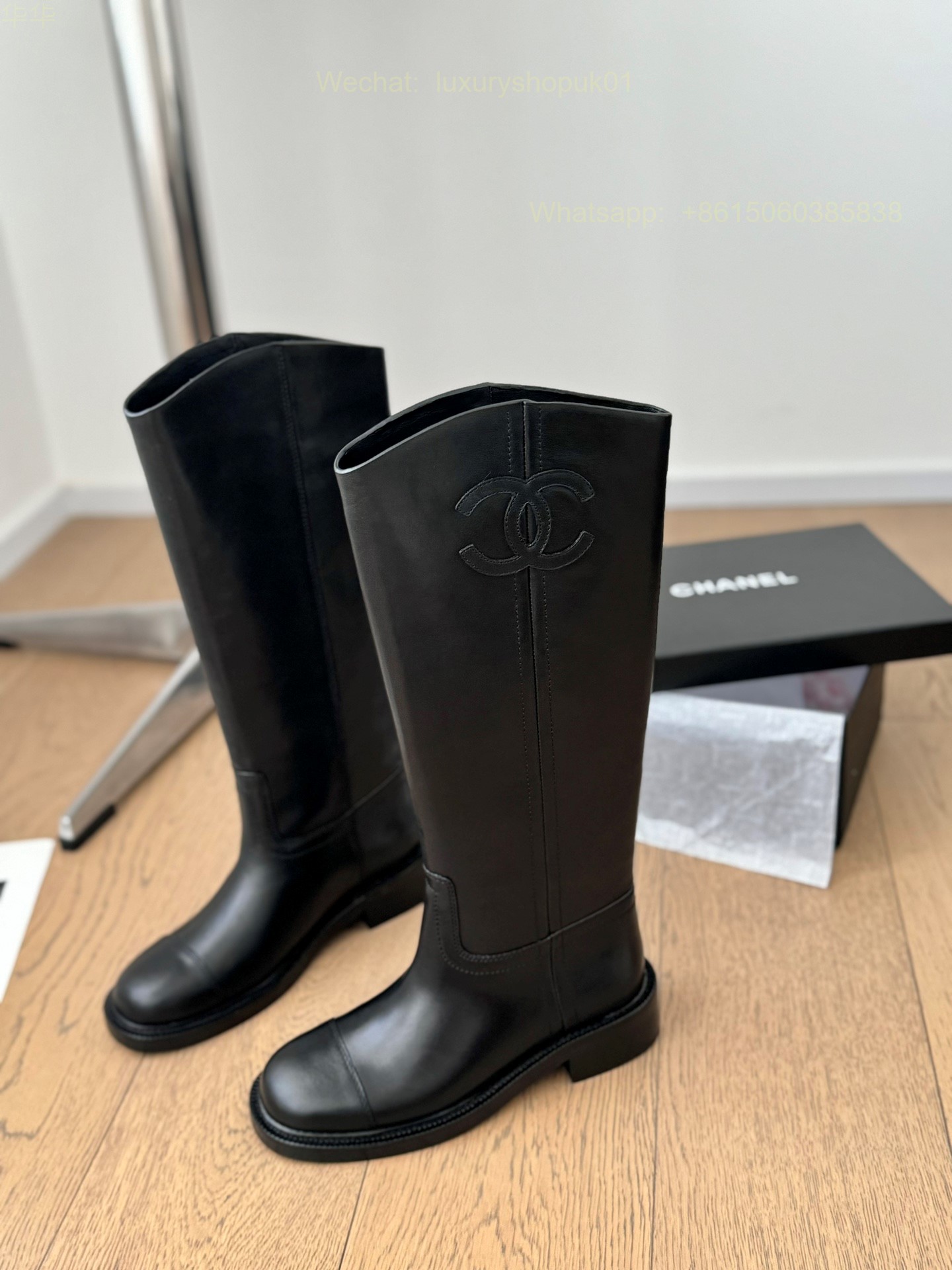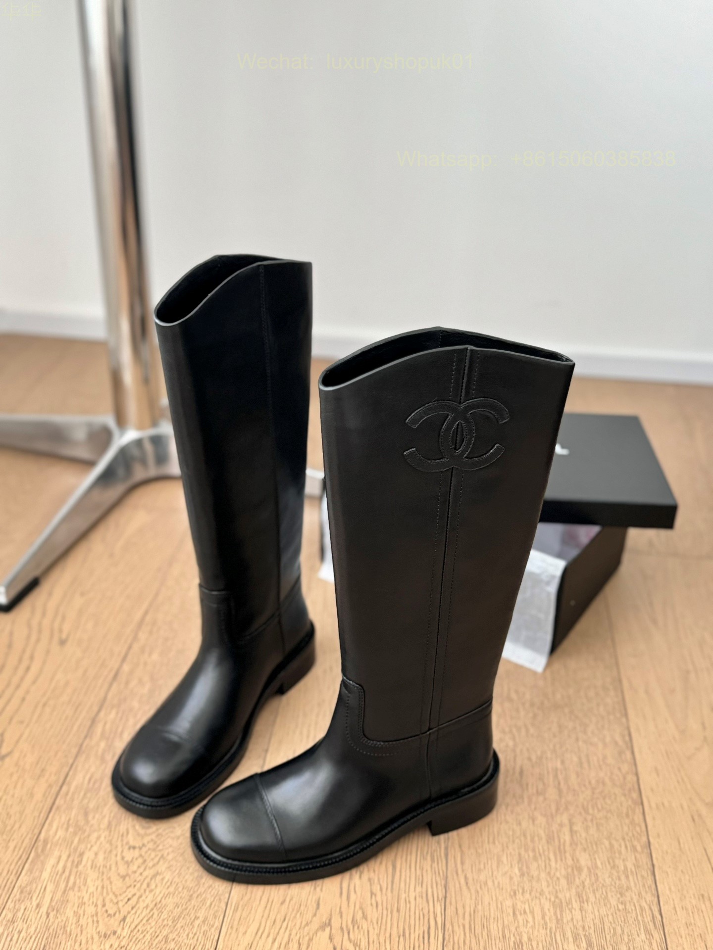 Chanel Leather Flat Knee high Boot CC Logo Women Shoes