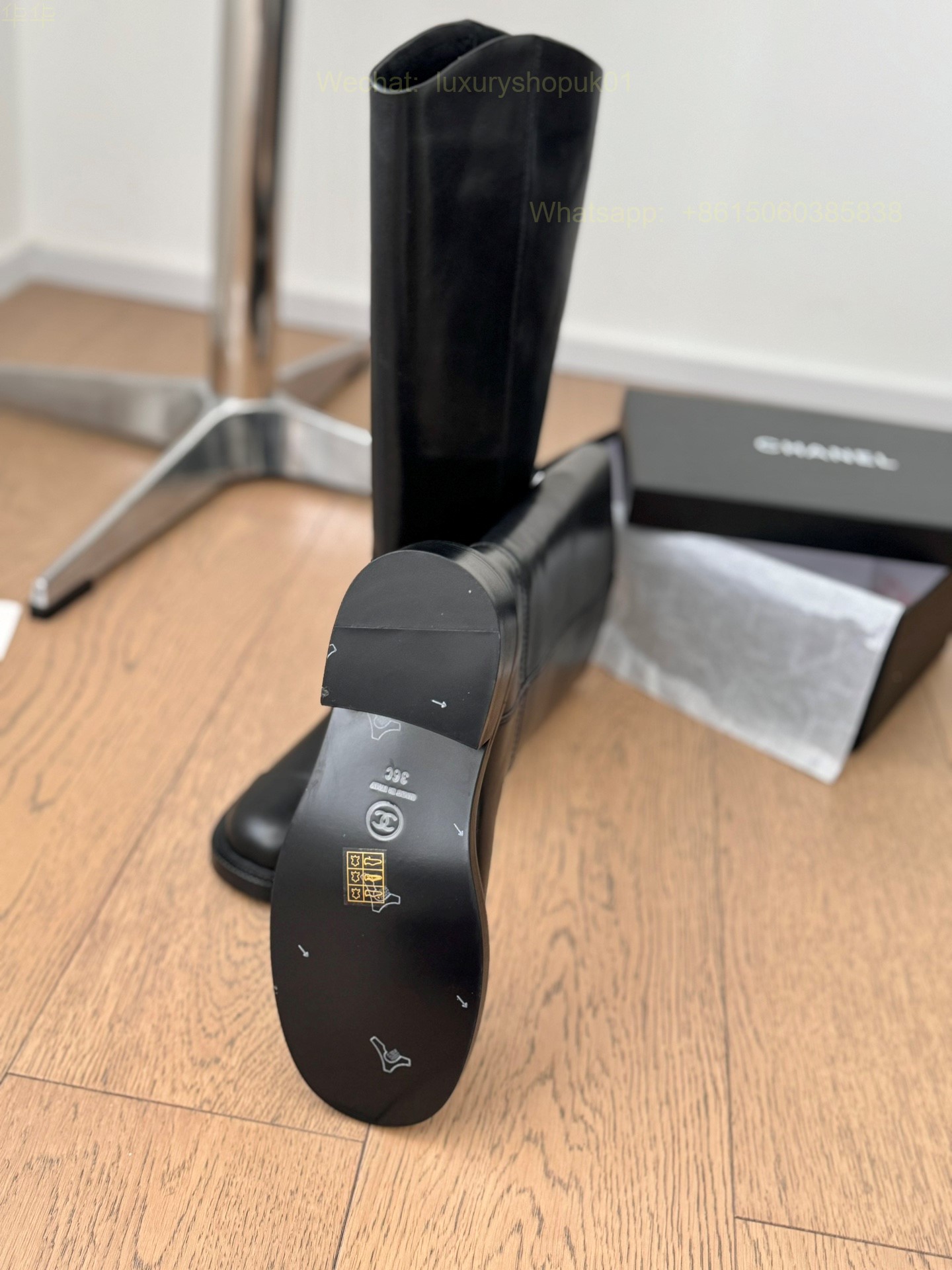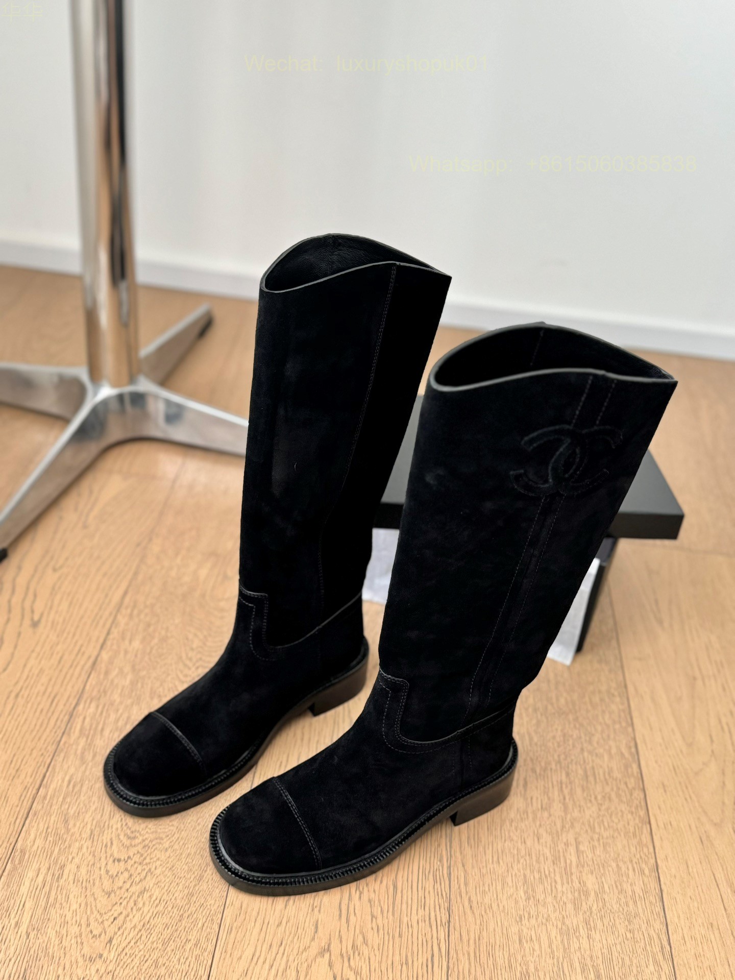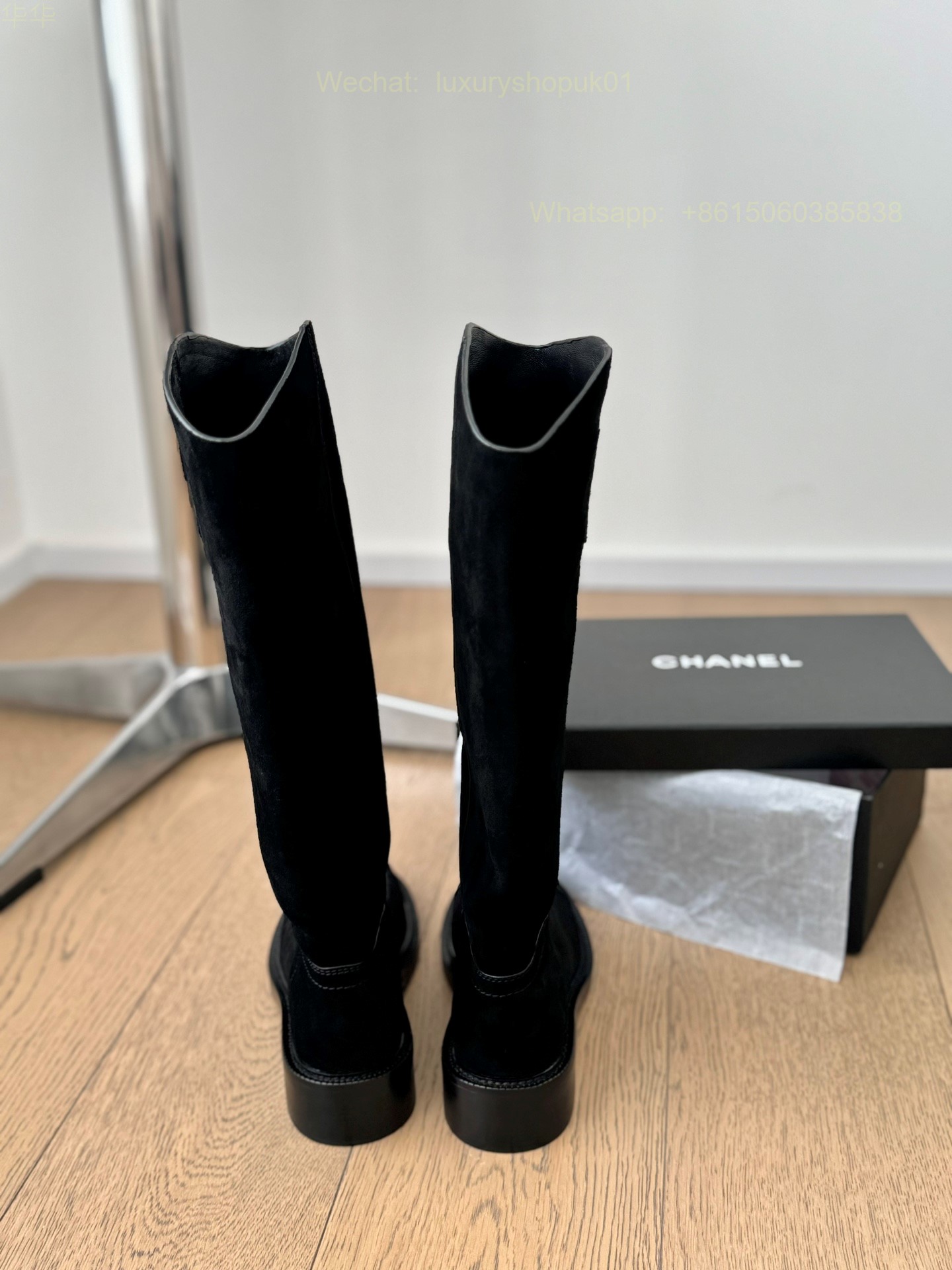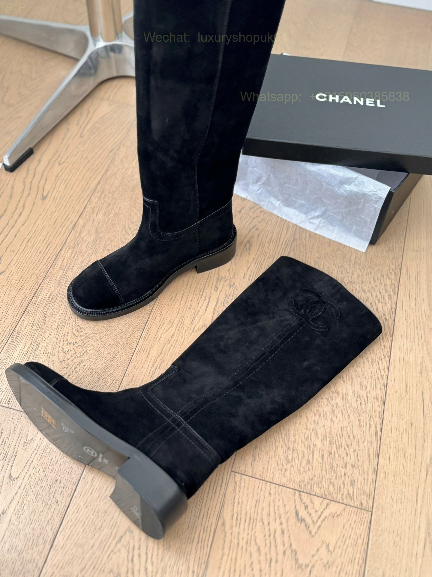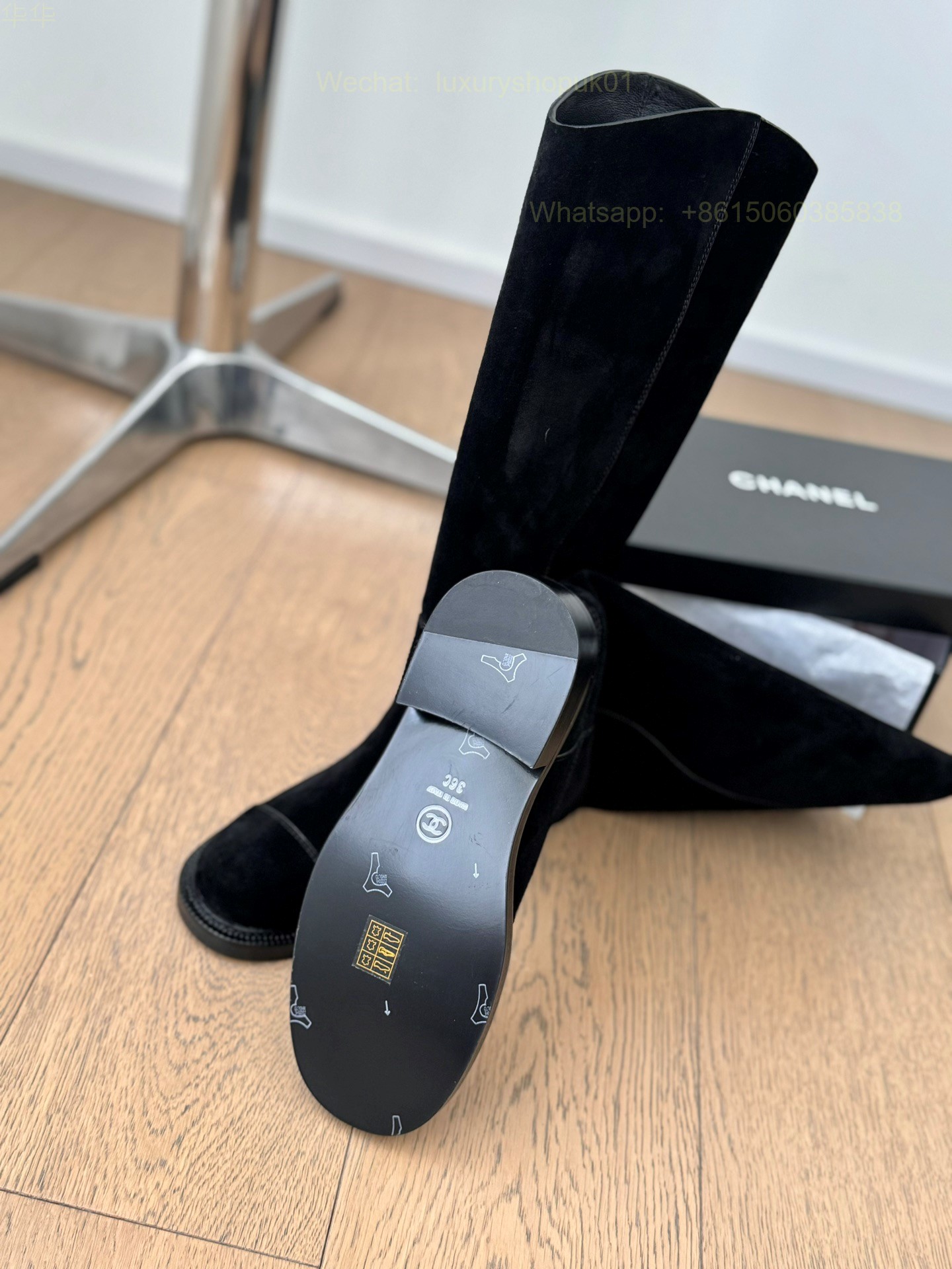Chanel suede Leather Flat Knee high Boot CC Logo Women Shoes