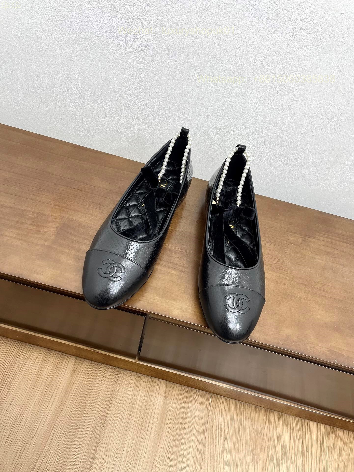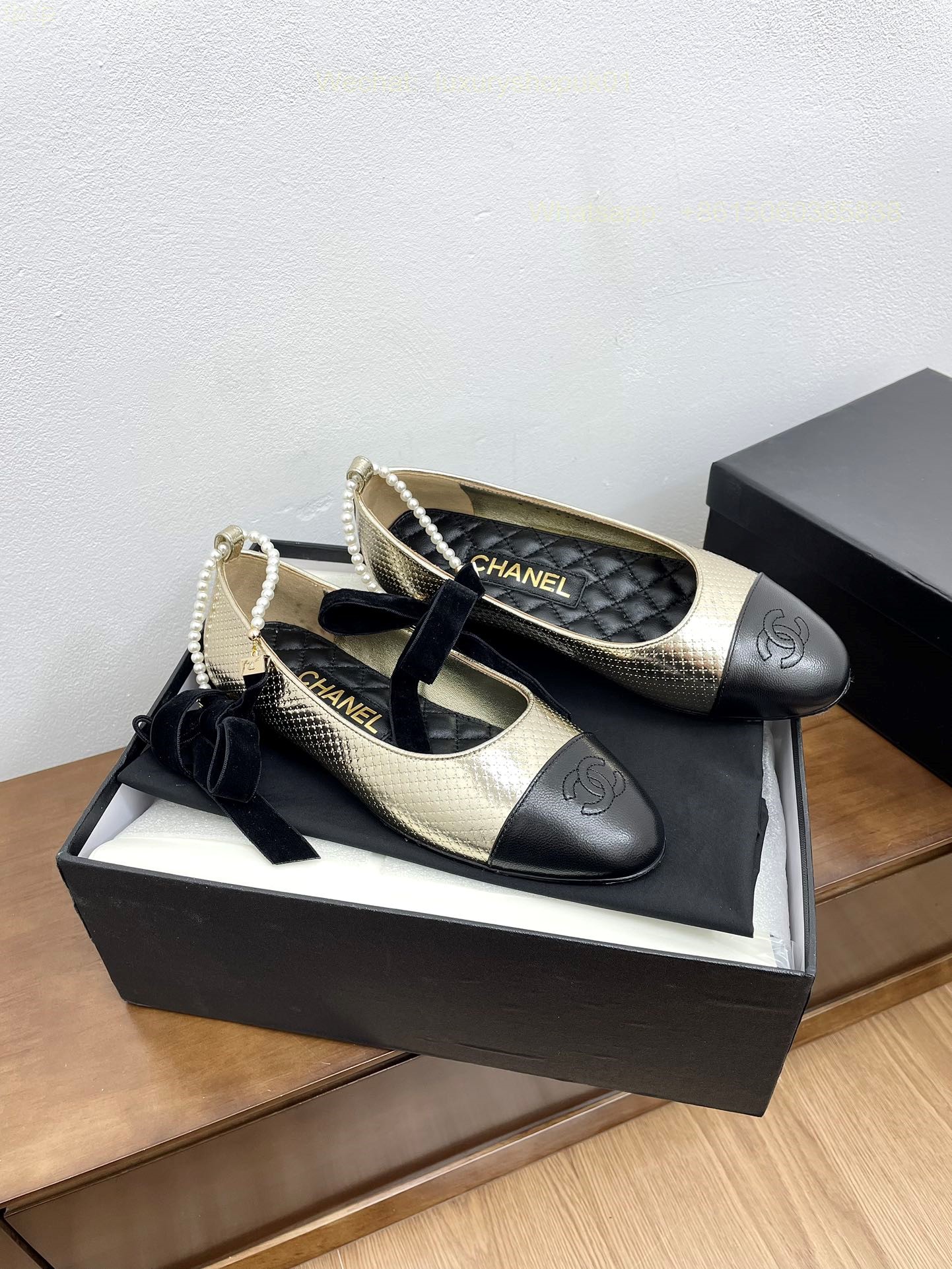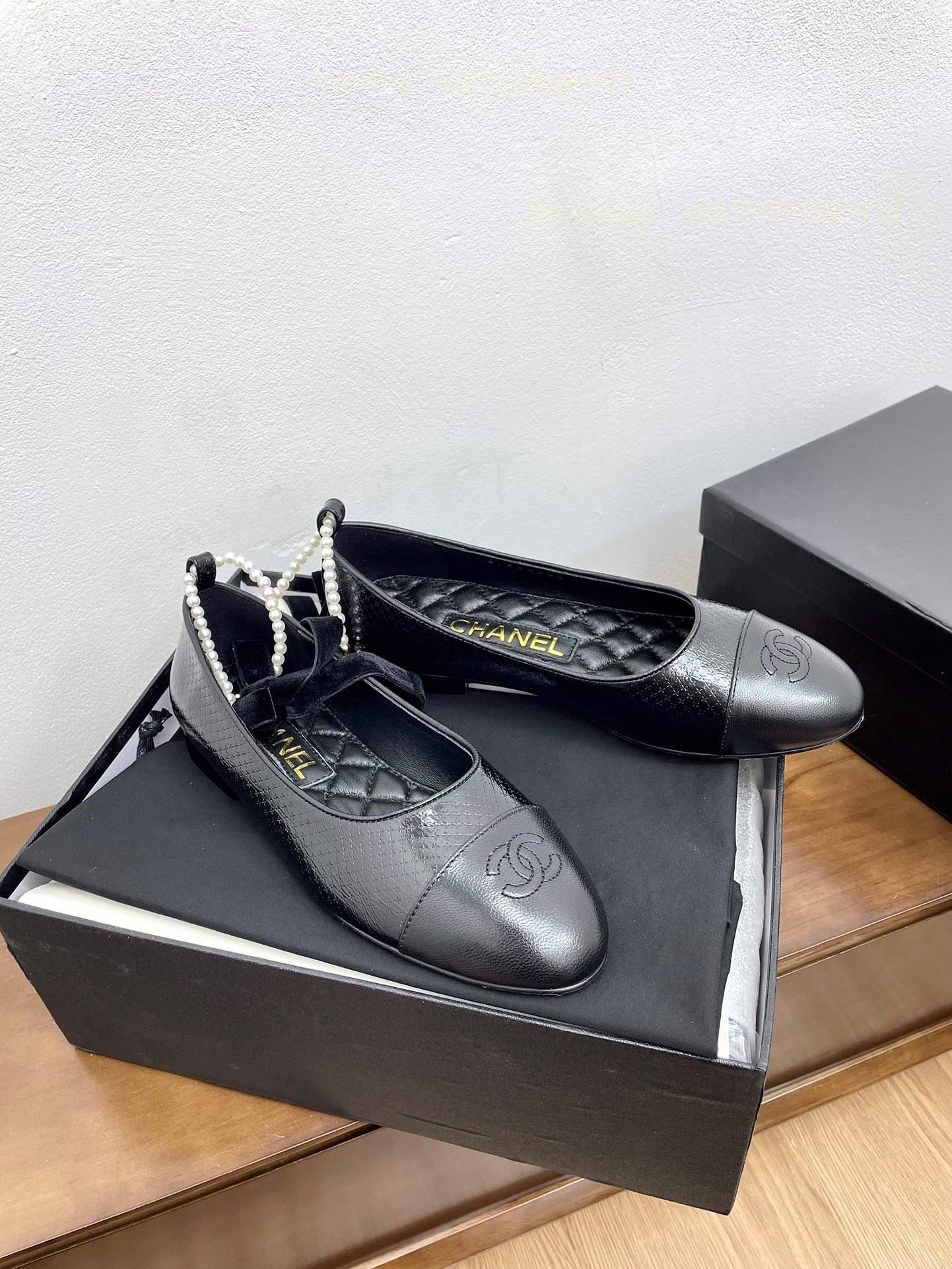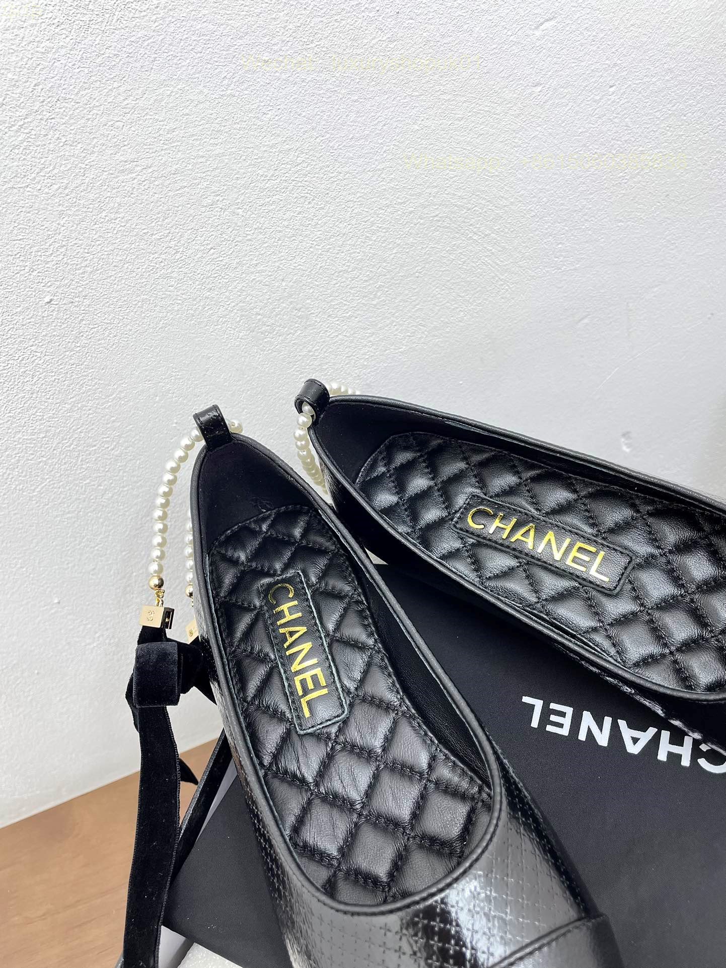 Chanel Ballet Flats Bow Pearl Ankle strap CC Logo Women Shoes