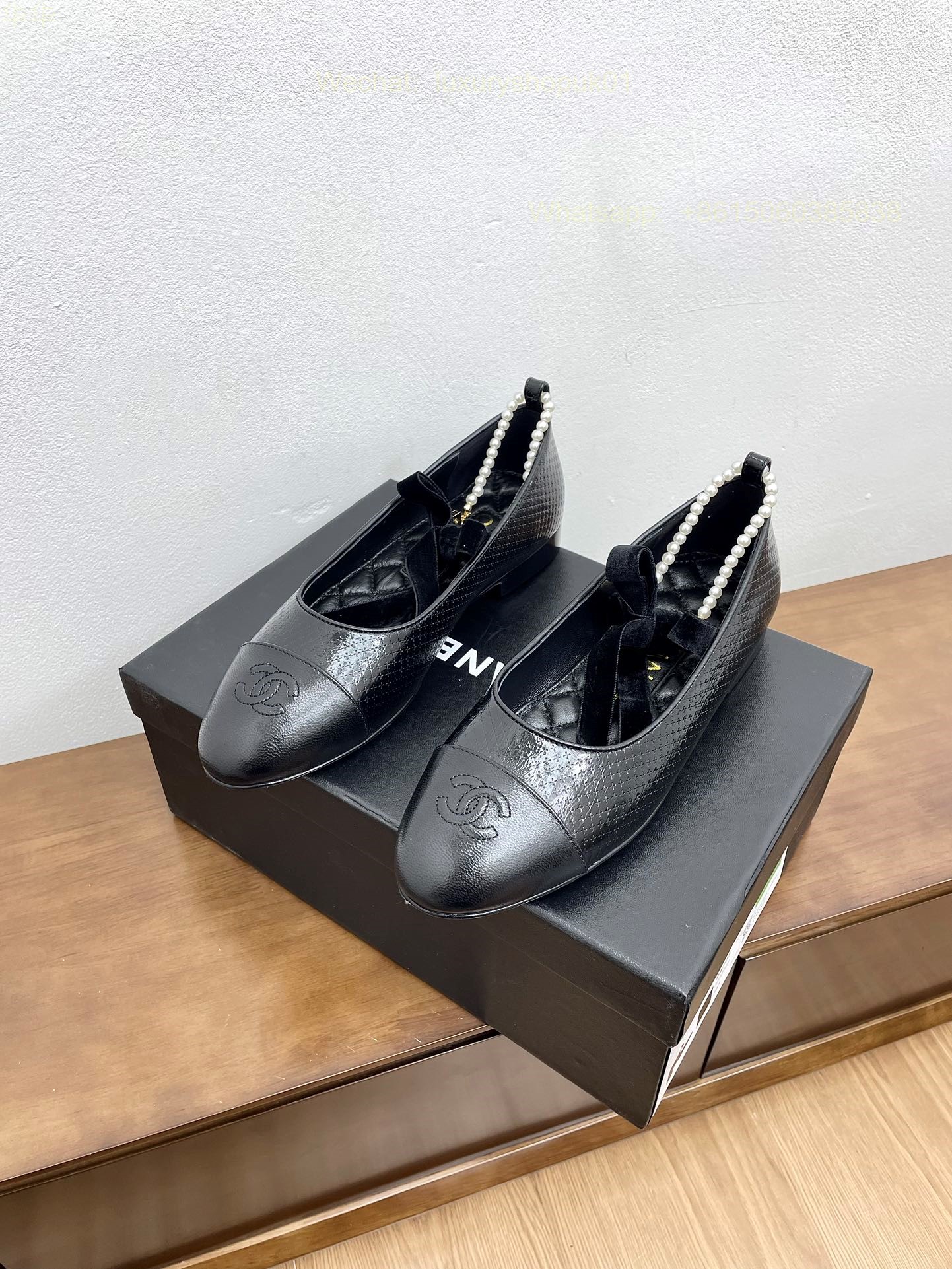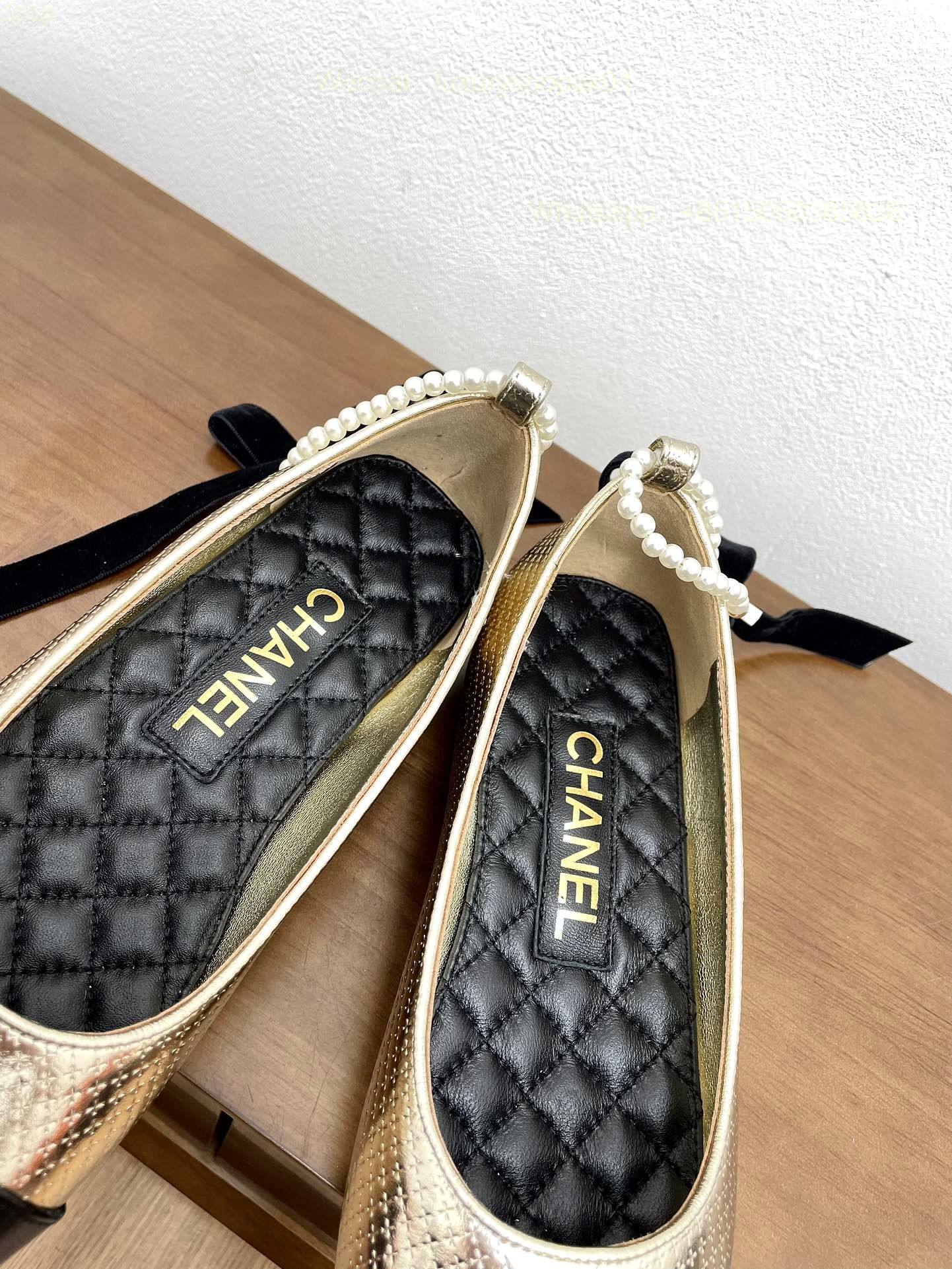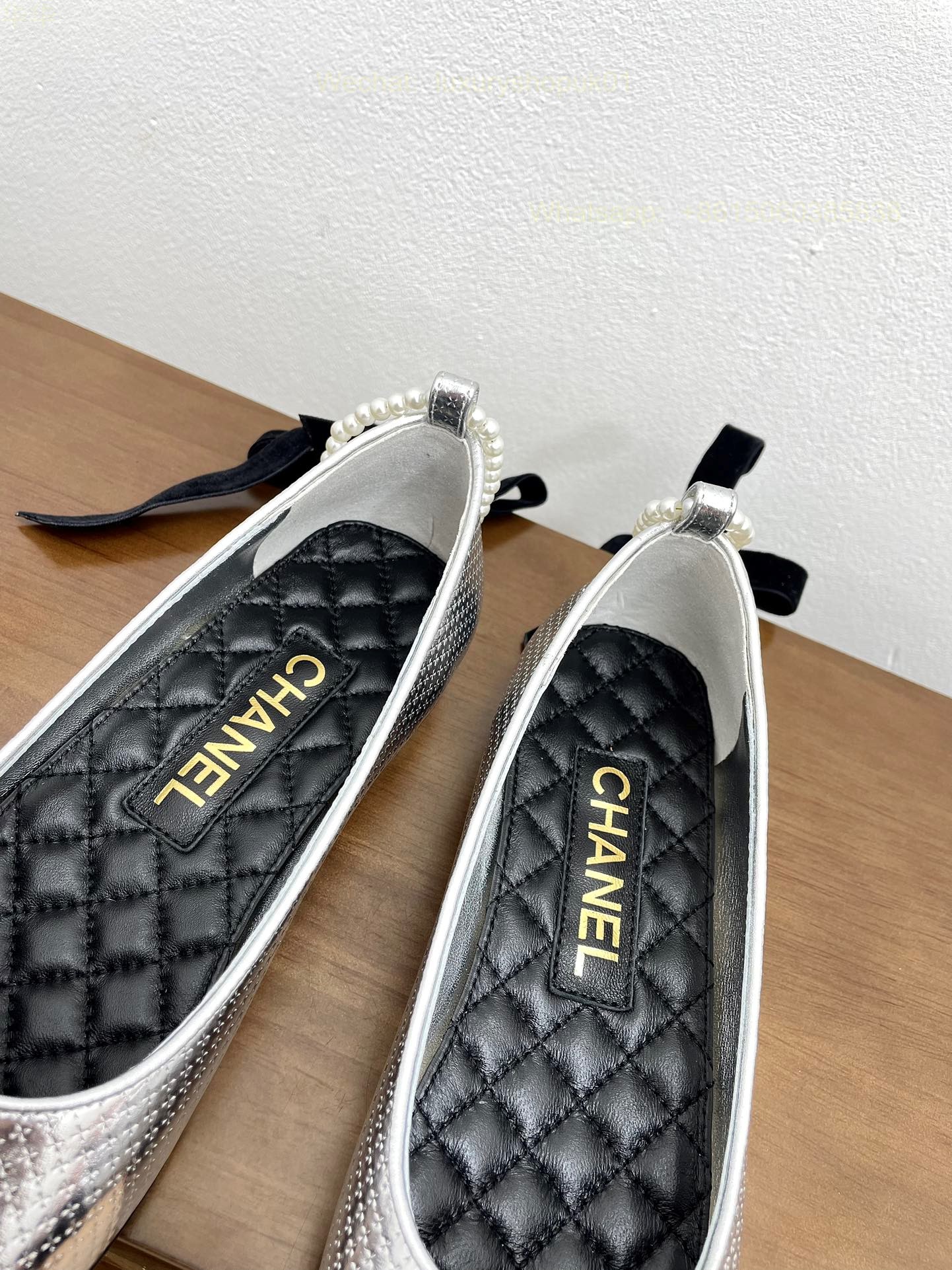 Chanel Ballet Flats Bow Pearl Ankle strap CC Logo Women Shoes