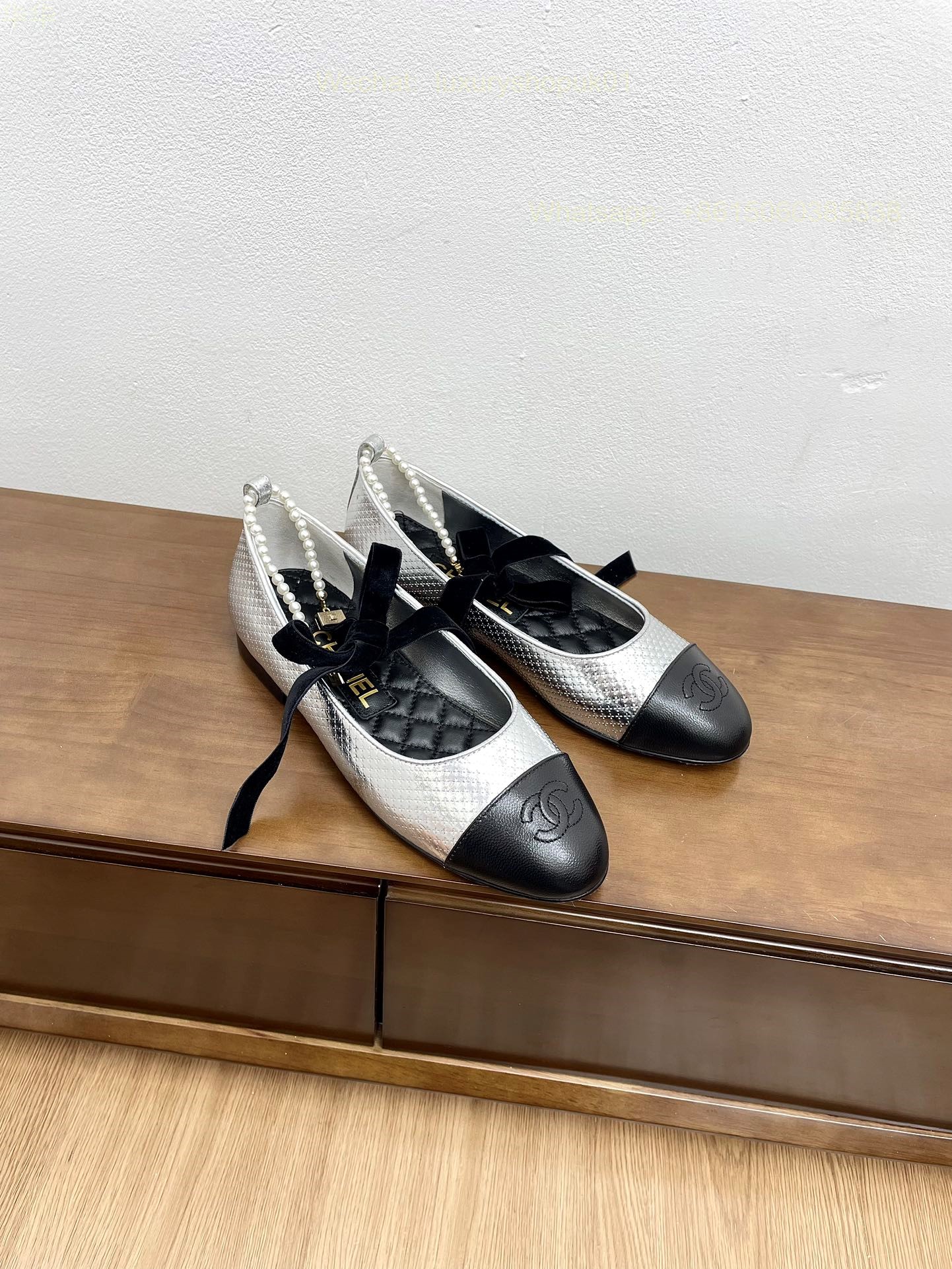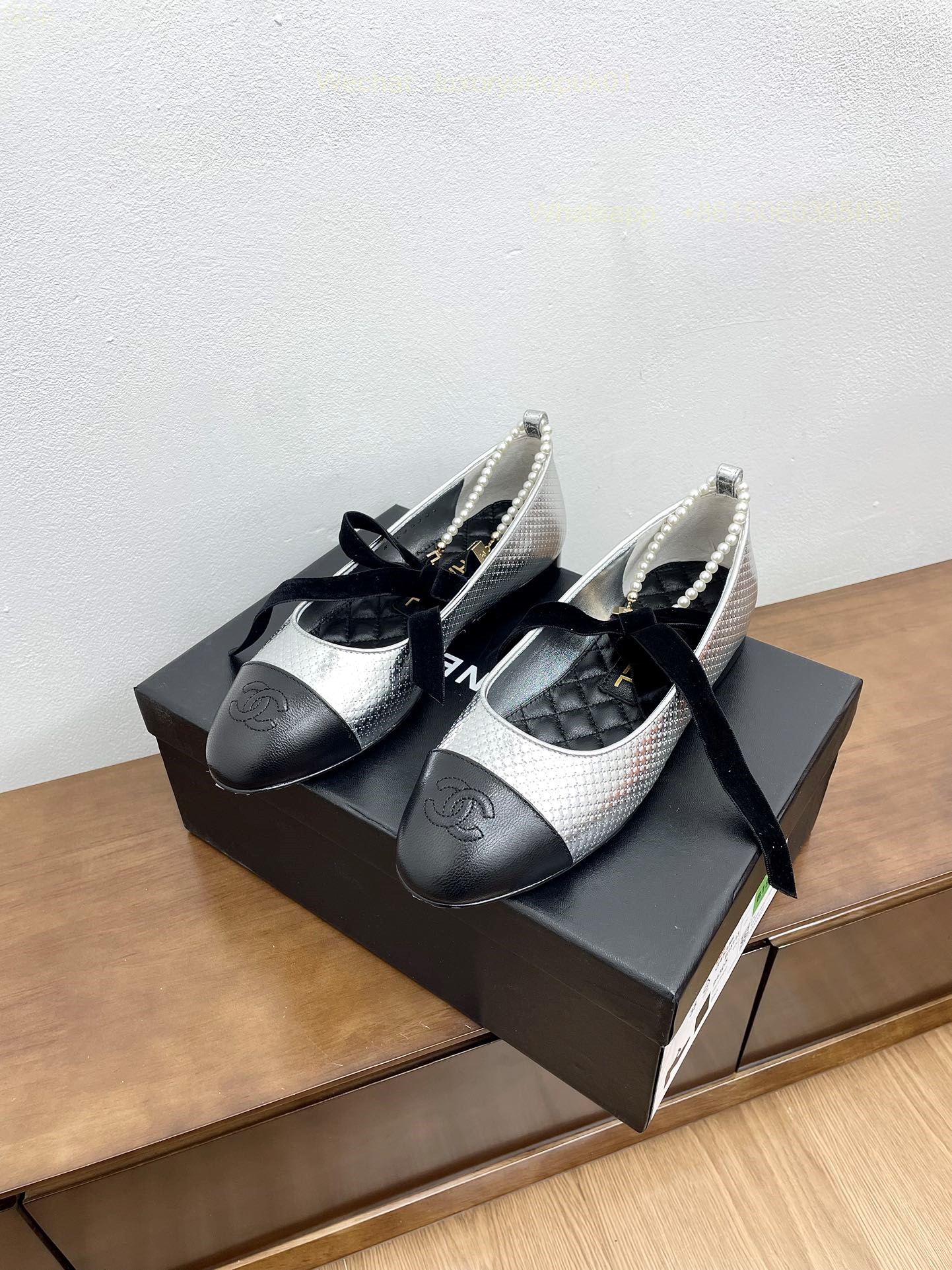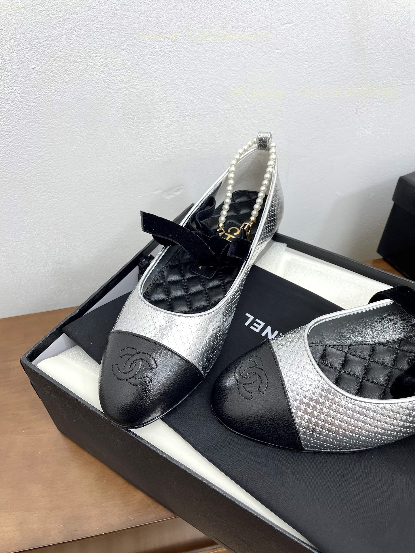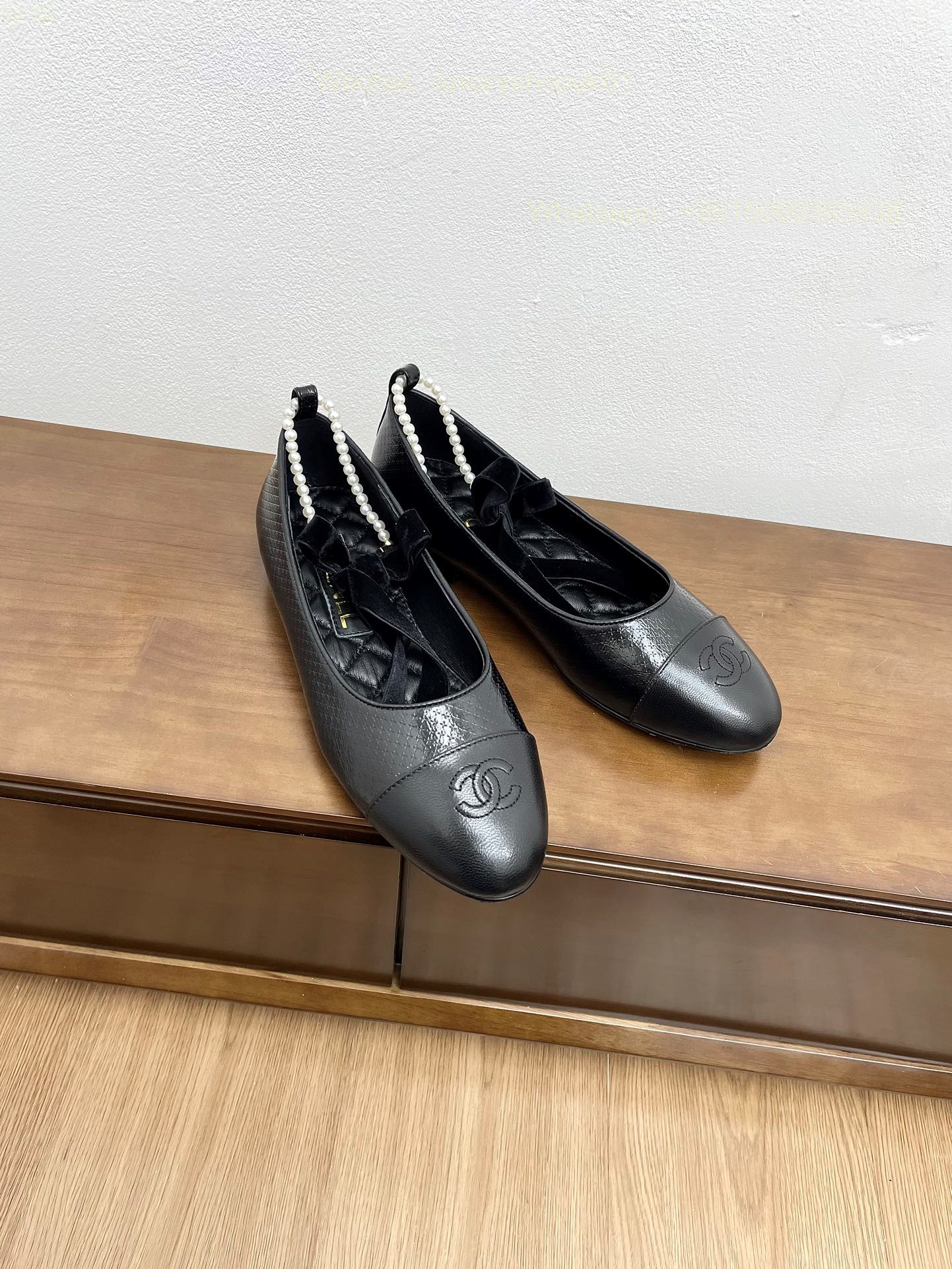 Chanel Ballet Flats Bow Pearl Ankle strap CC Logo Women Shoes