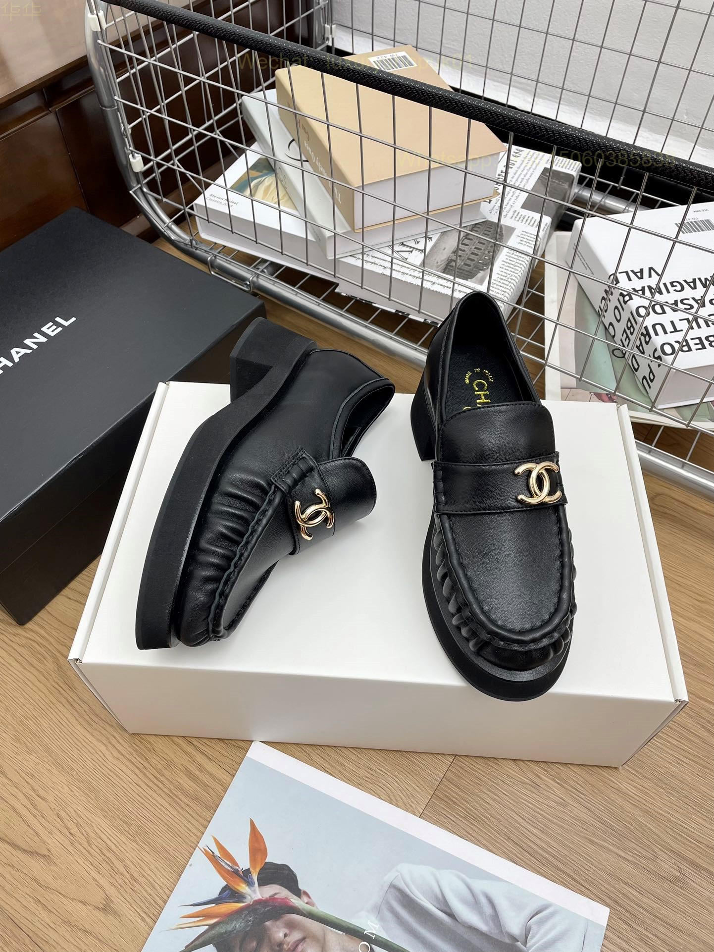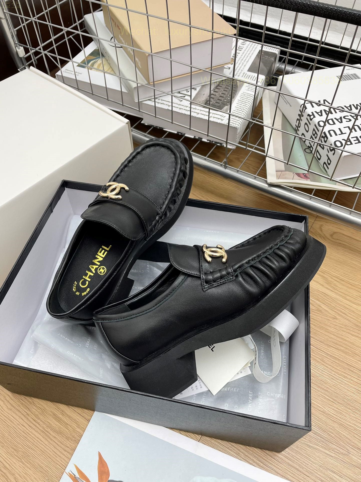 Chanel Leather Loafer flat CC Logo Women Shoes