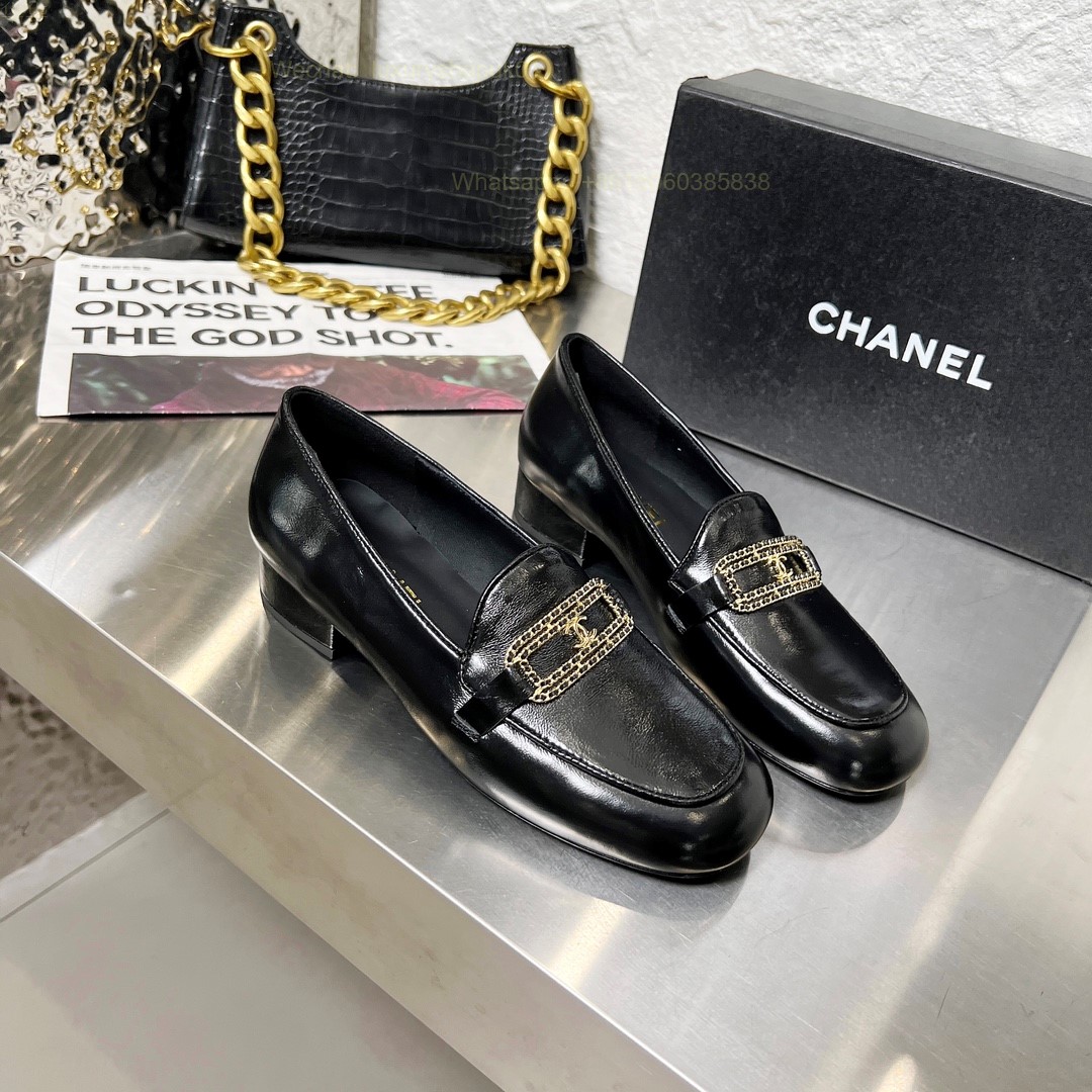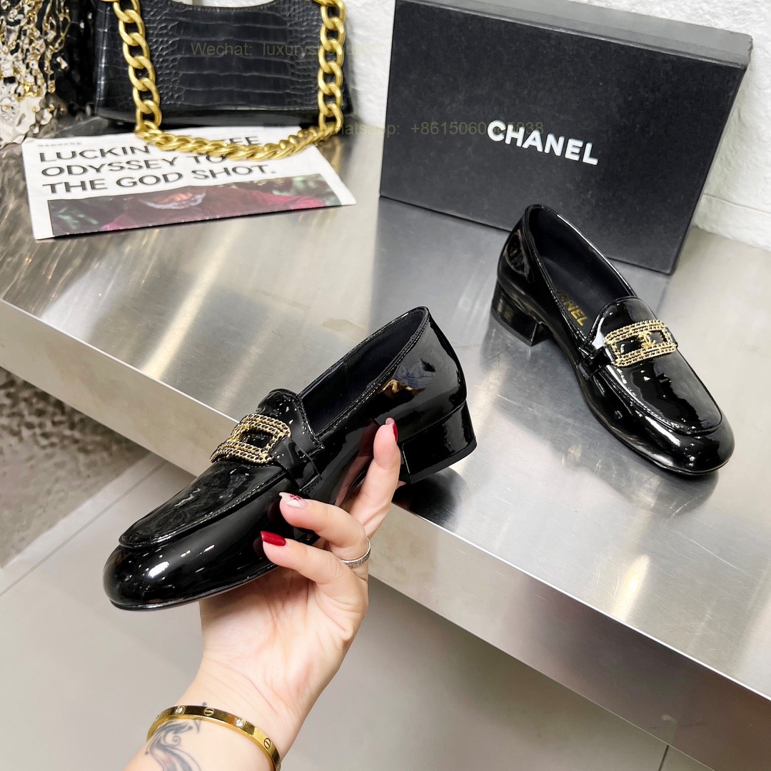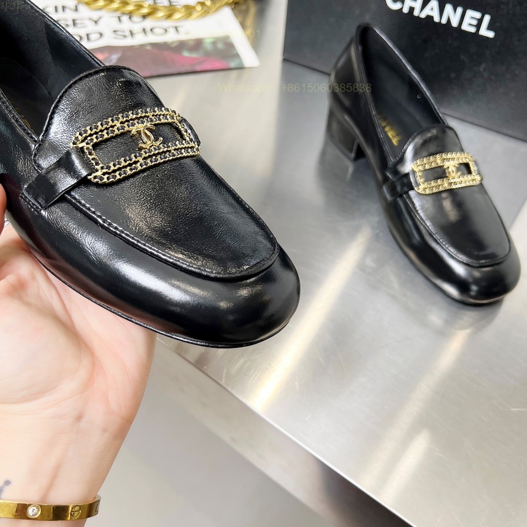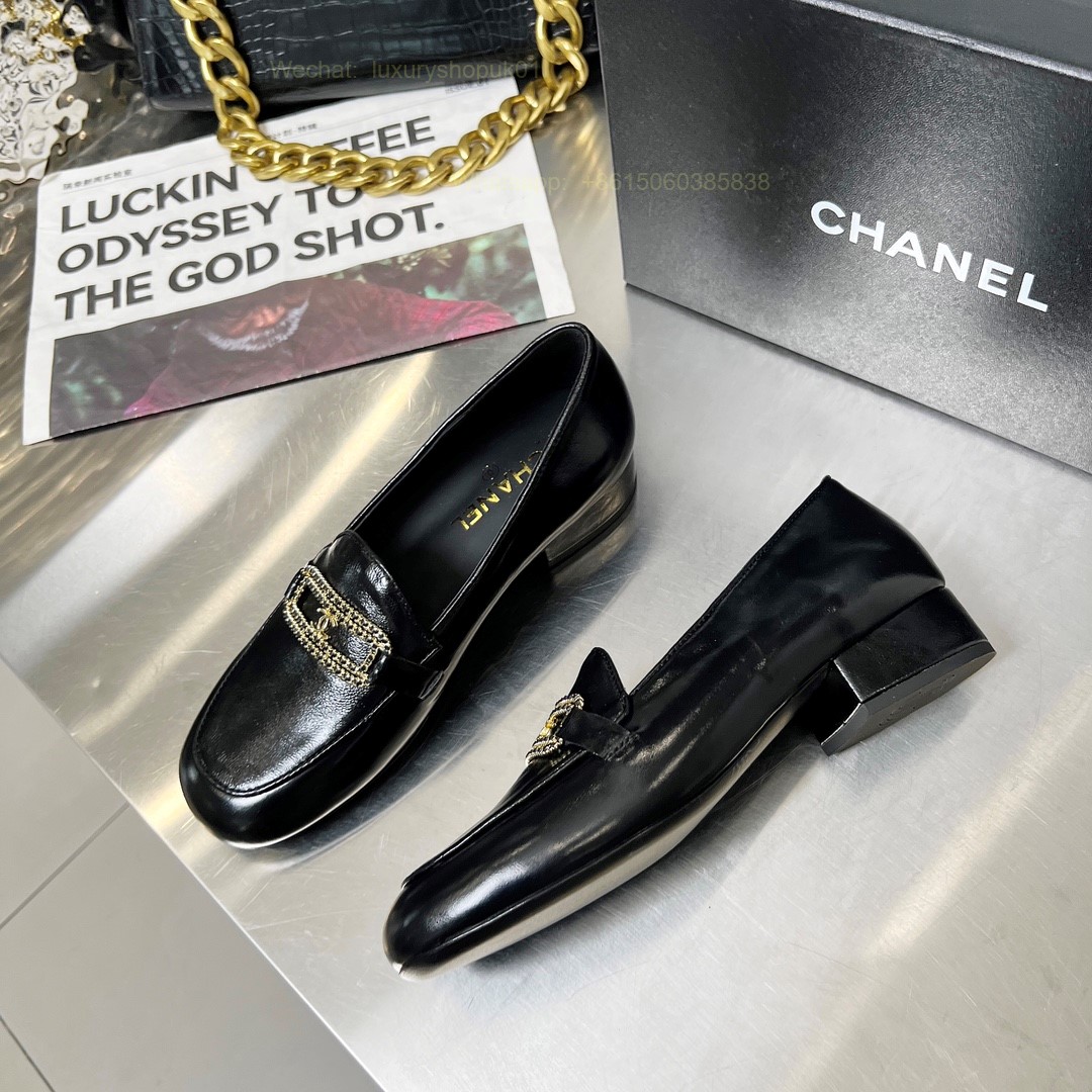 Women Chanel Leather Chain Loafers CC Logo Flats Shoes