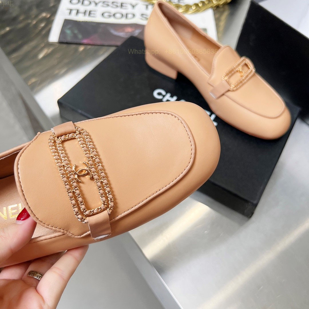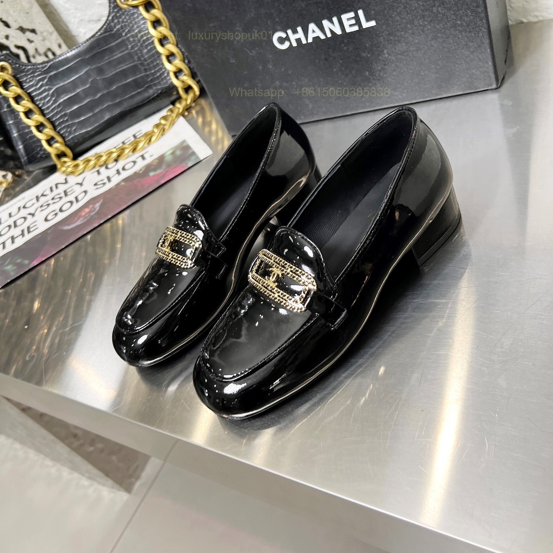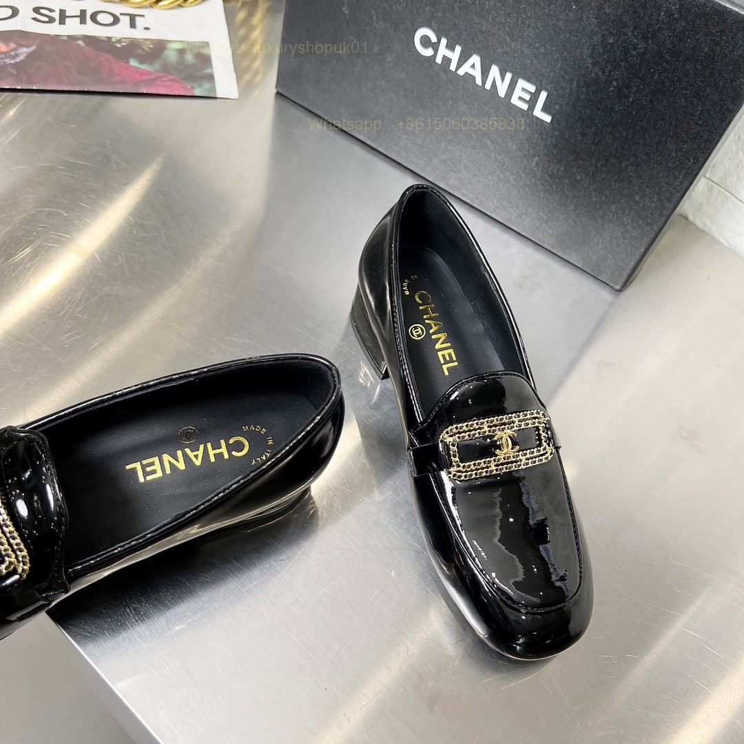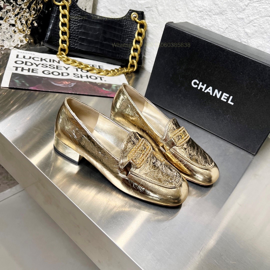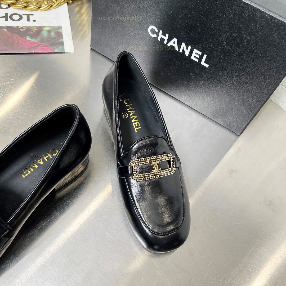 Women Chanel Leather Chain Loafers CC Logo Flats Shoes