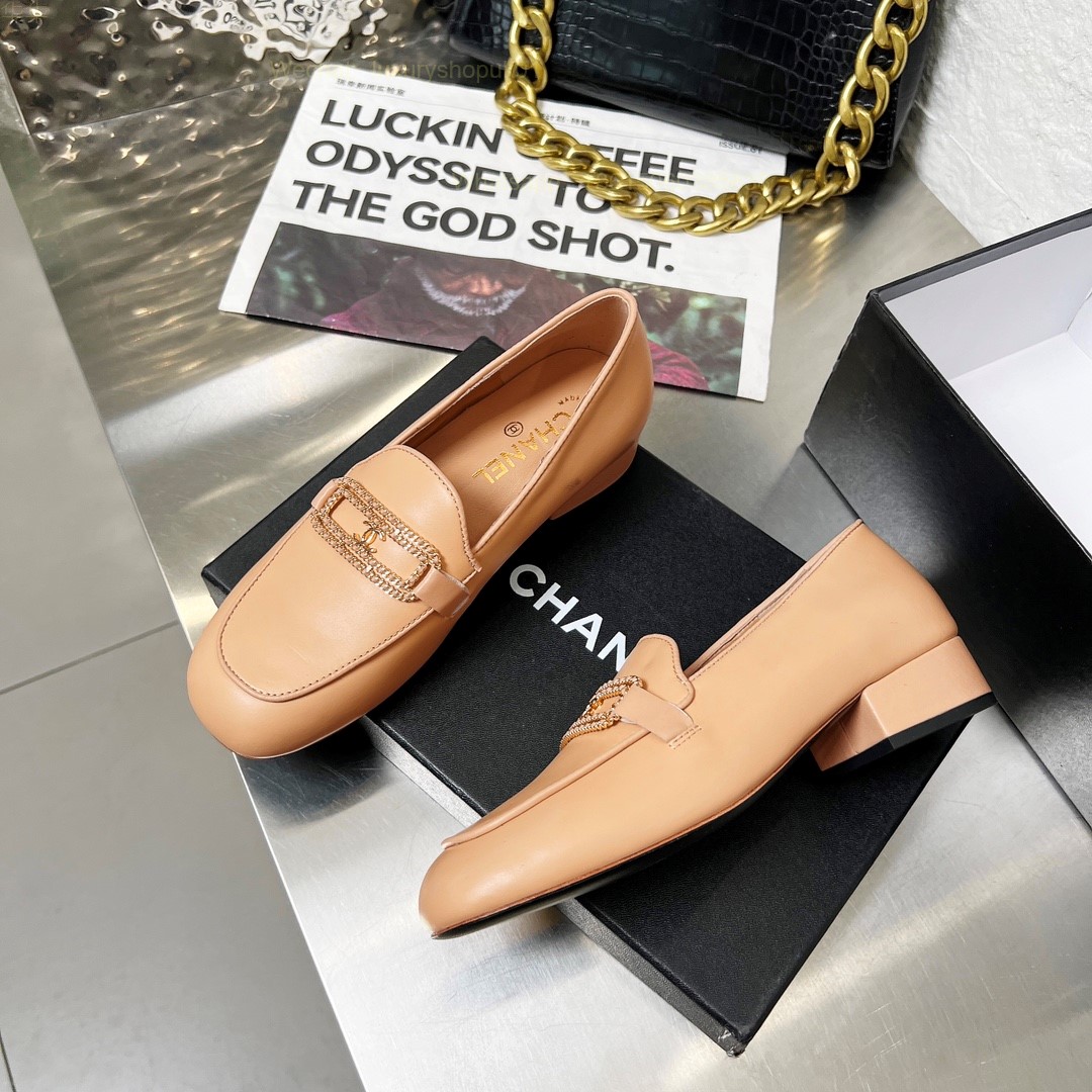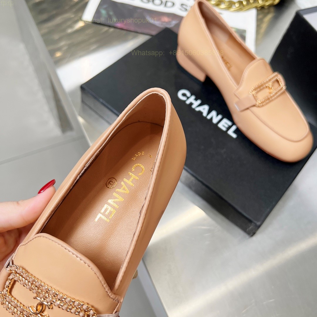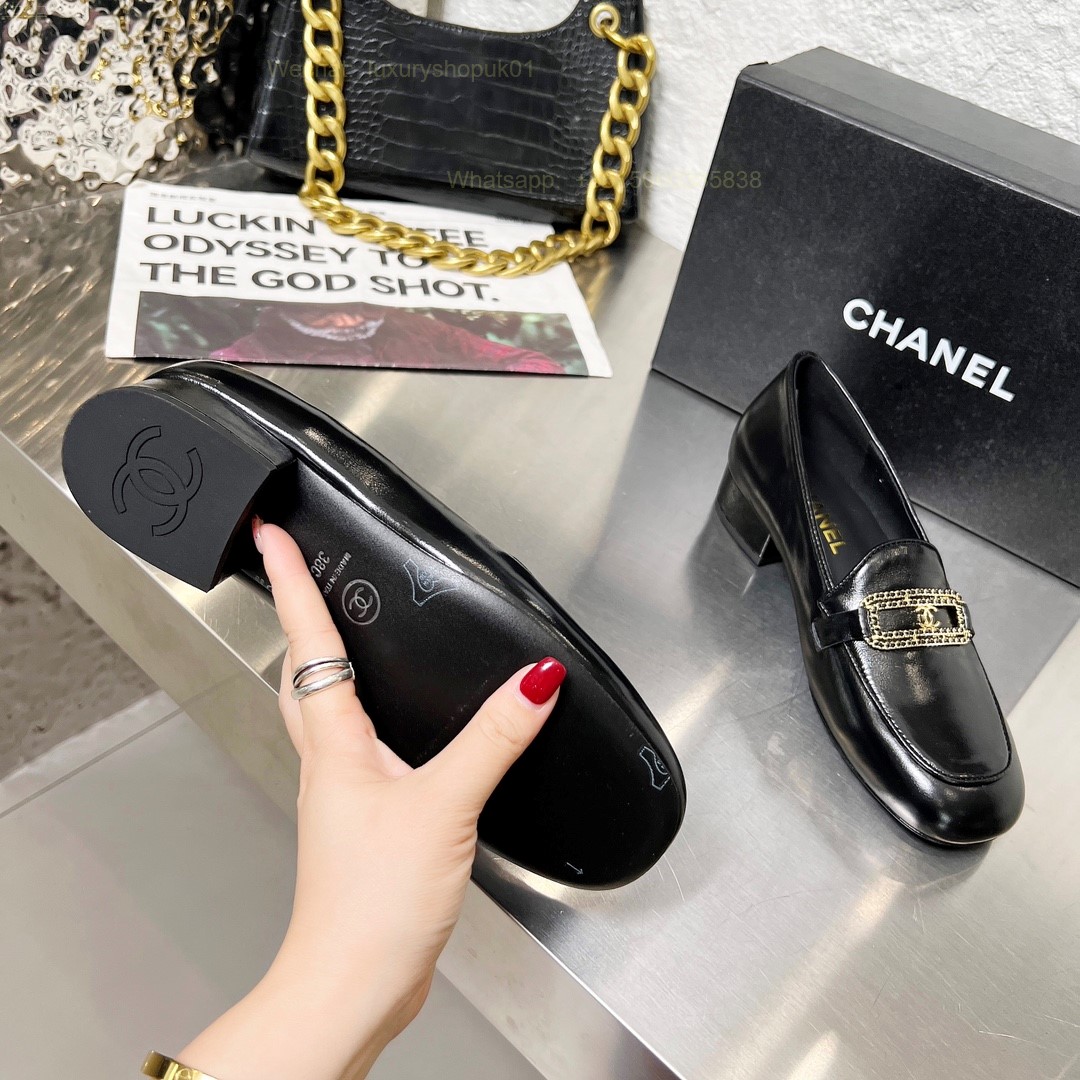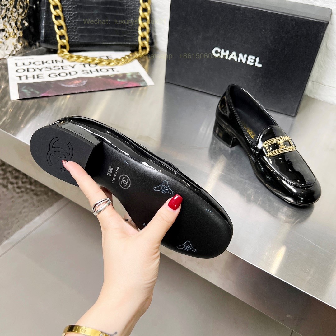 Women Chanel Leather Chain Loafers CC Logo Flats Shoes