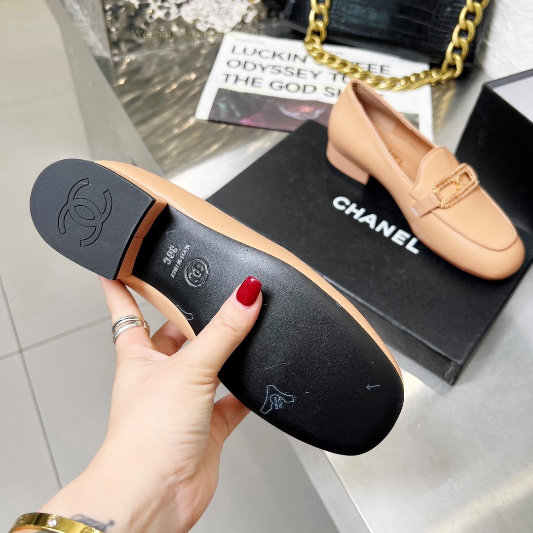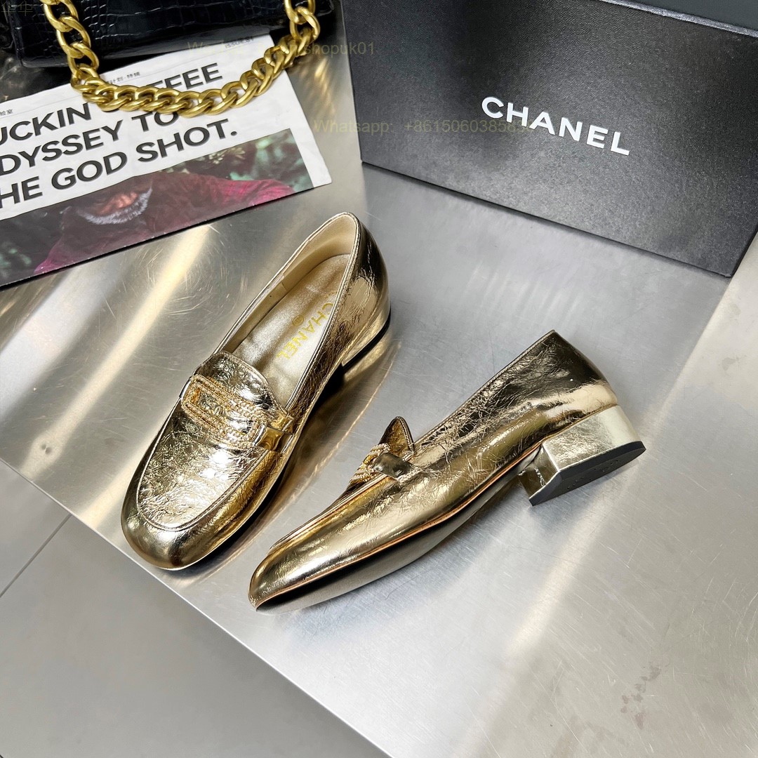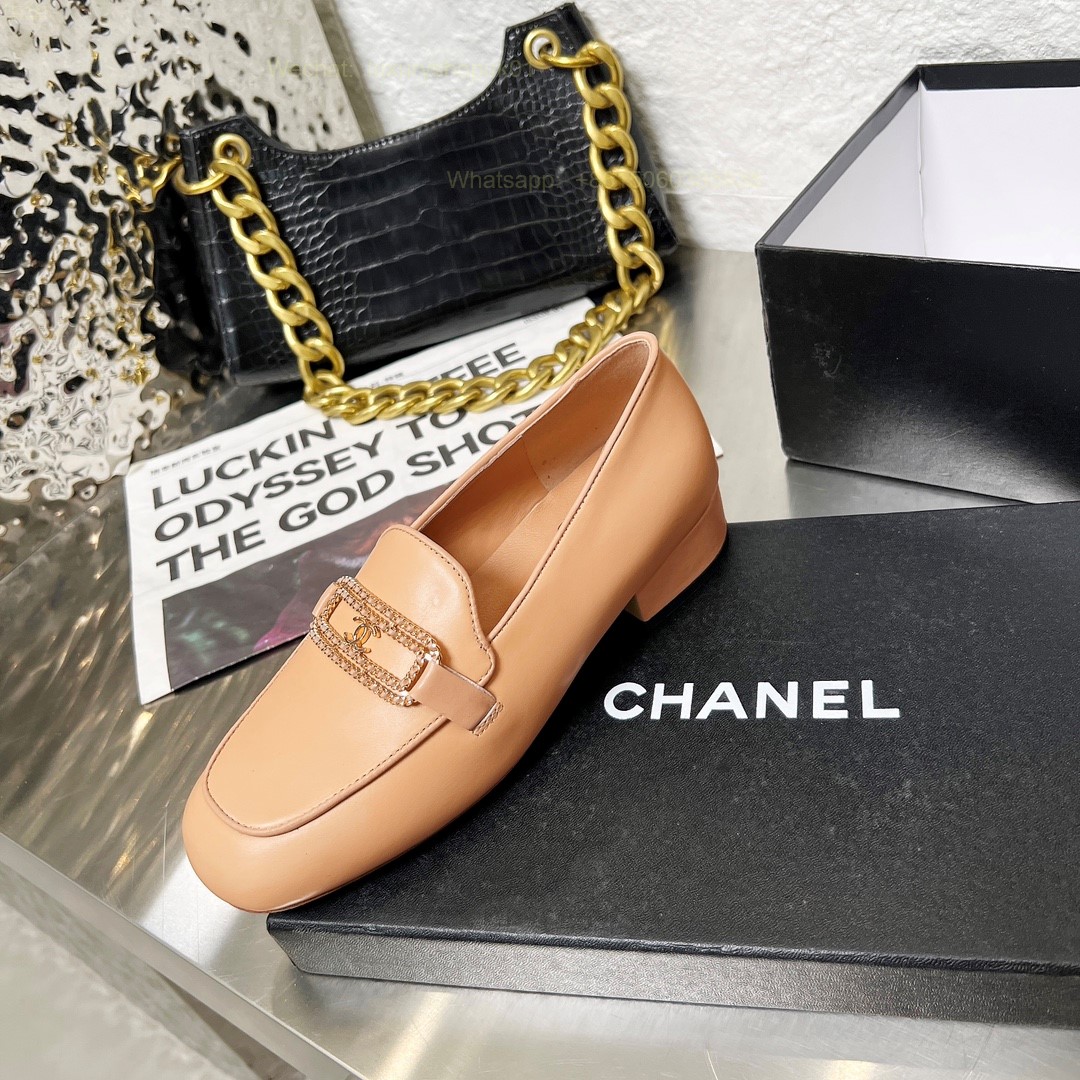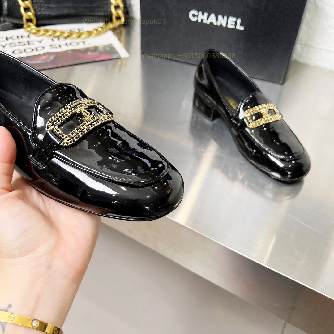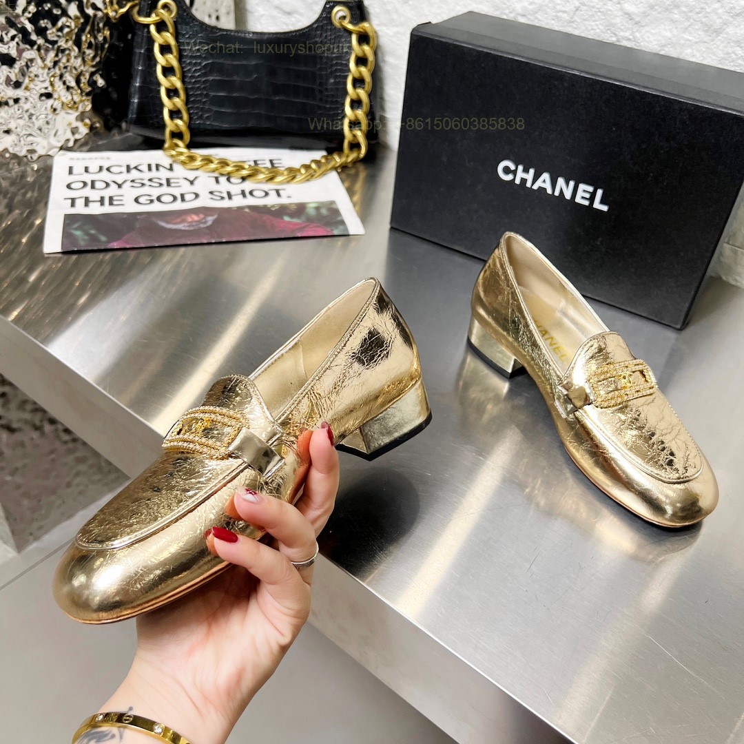 Women Chanel Leather Chain Loafers CC Logo Flats Shoes