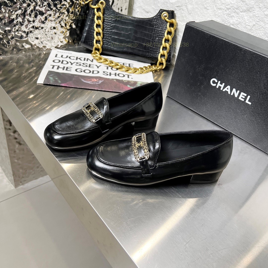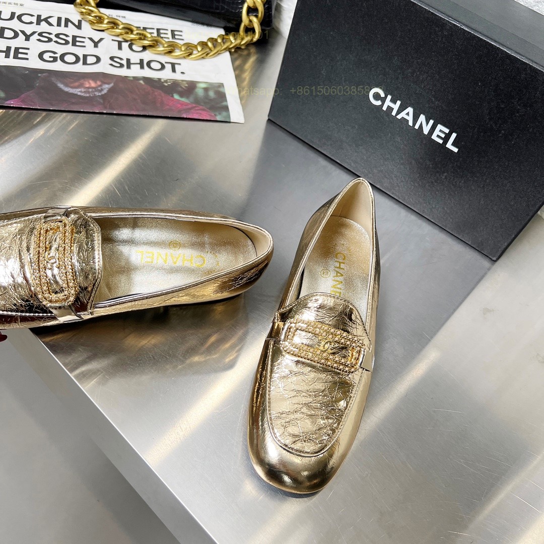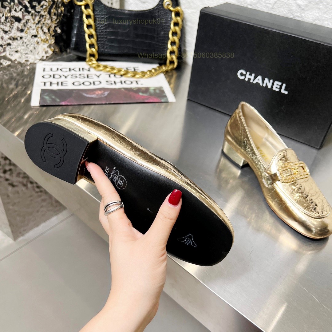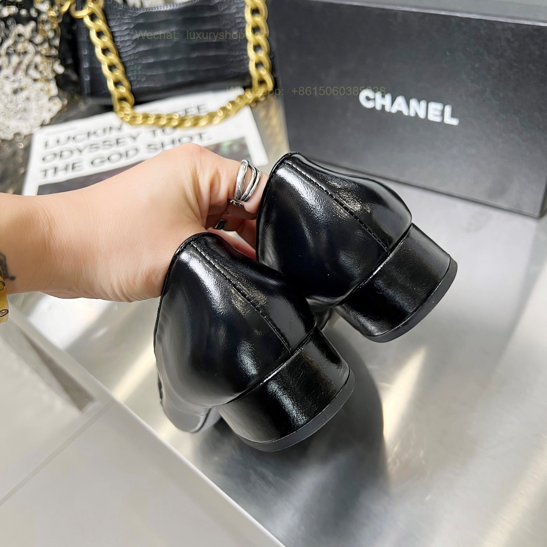 Women Chanel Leather Chain Loafers CC Logo Flats Shoes