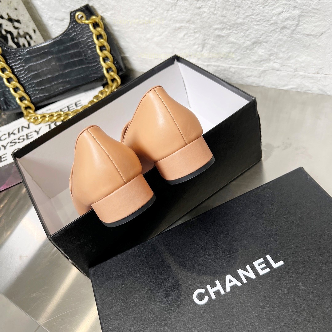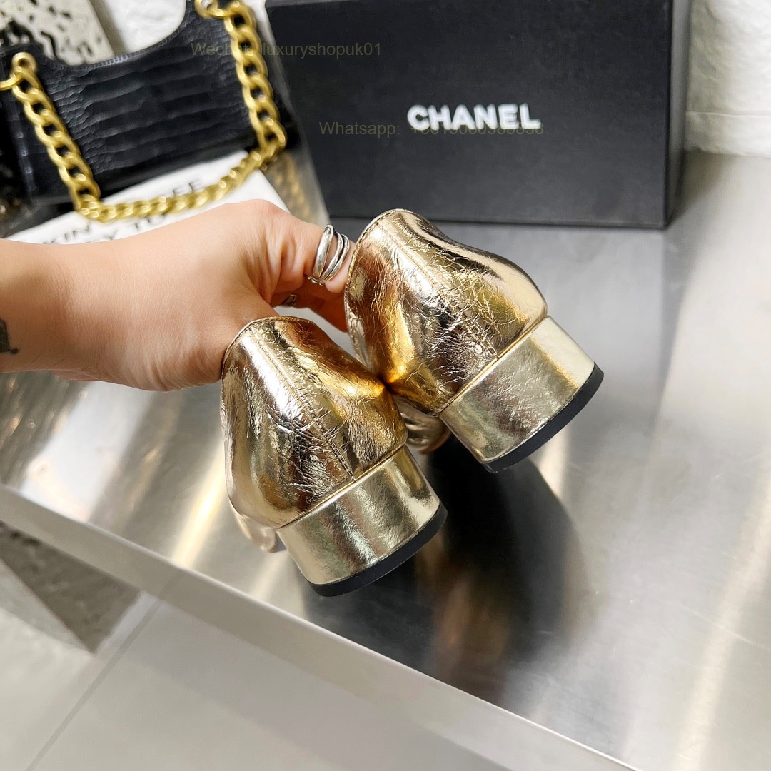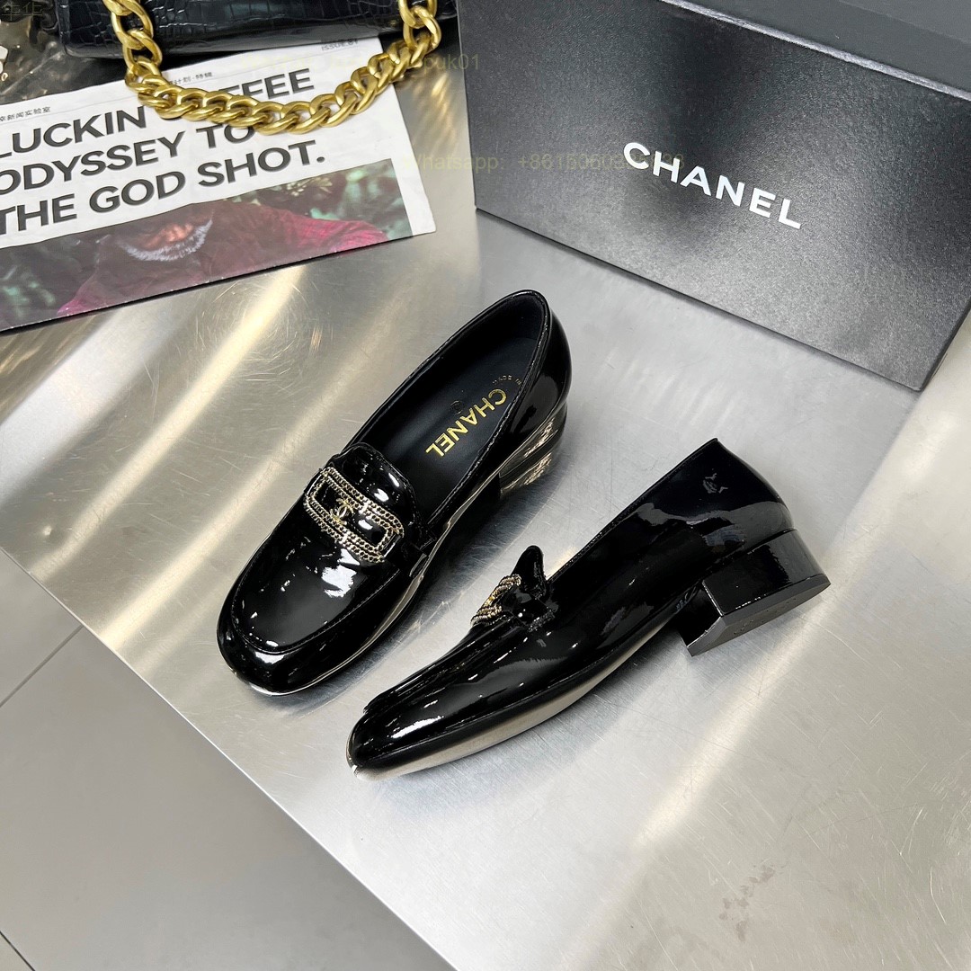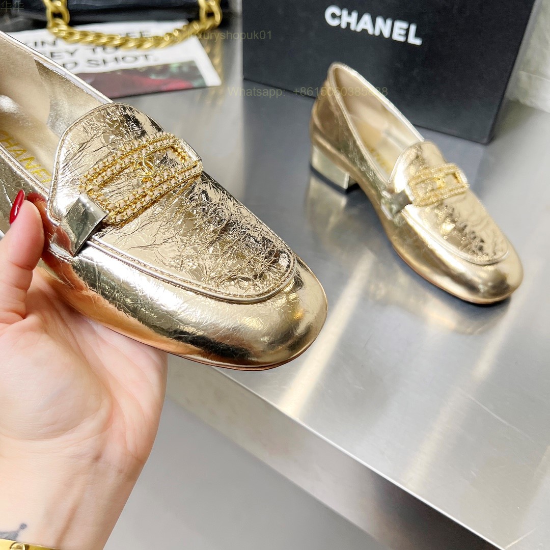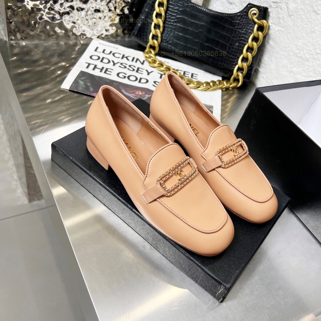 Women Chanel Leather Chain Loafers CC Logo Flats Shoes