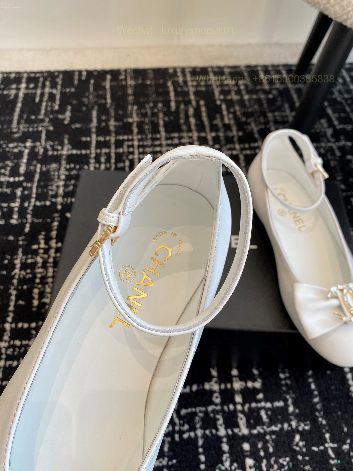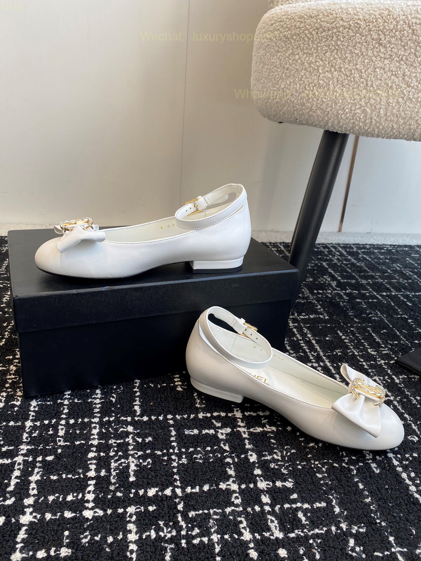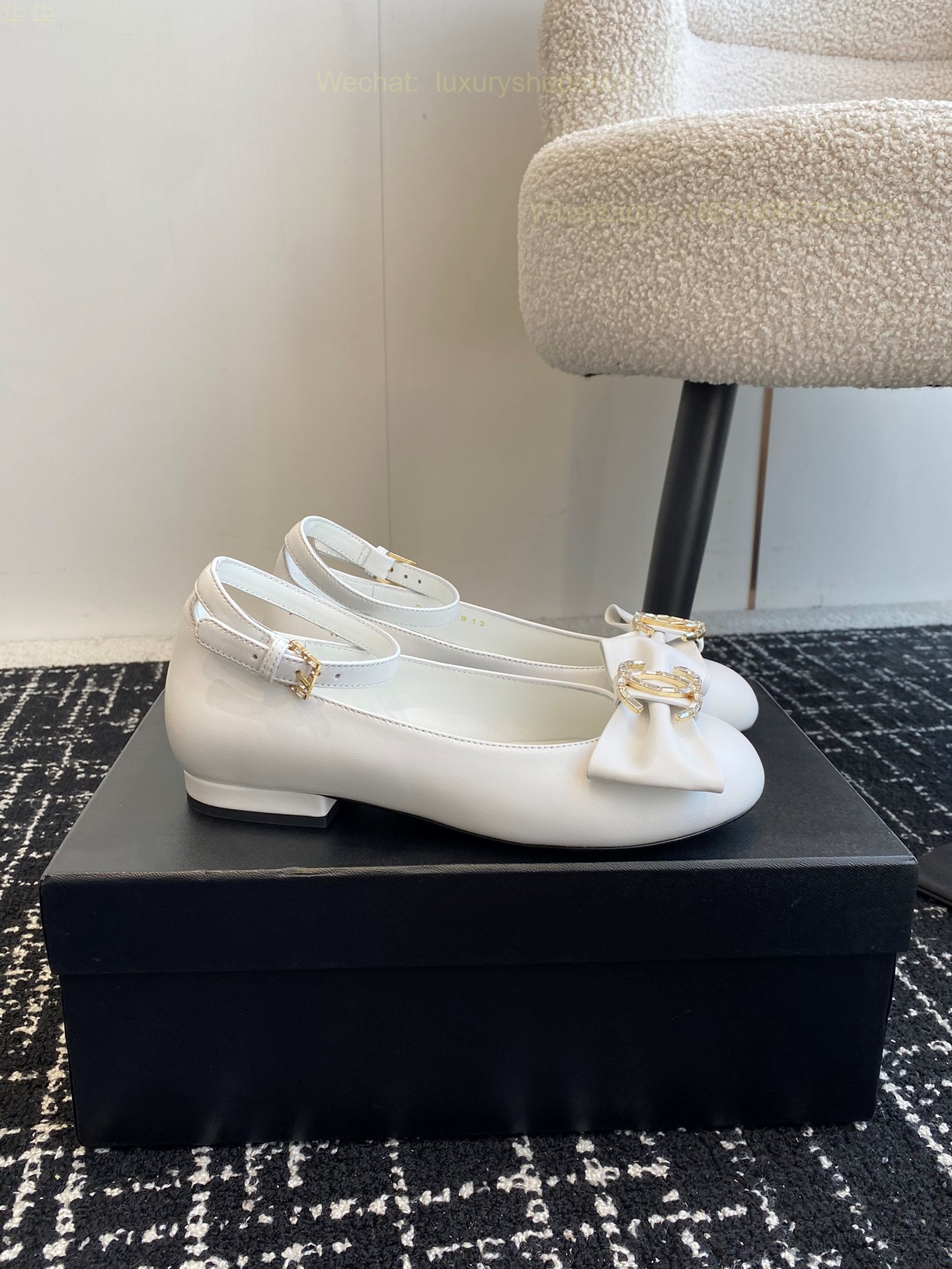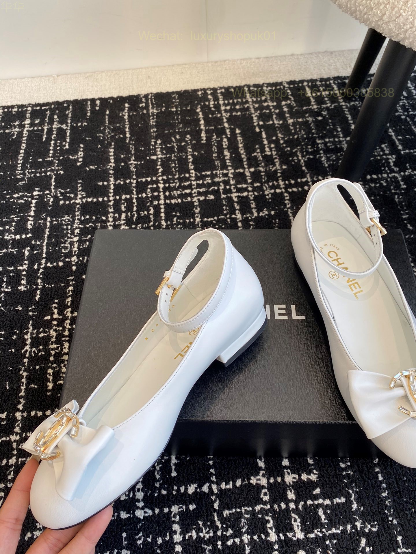 Women Chanel CC Logo Leather Bow Ankle strap Ballet Flat Shoes