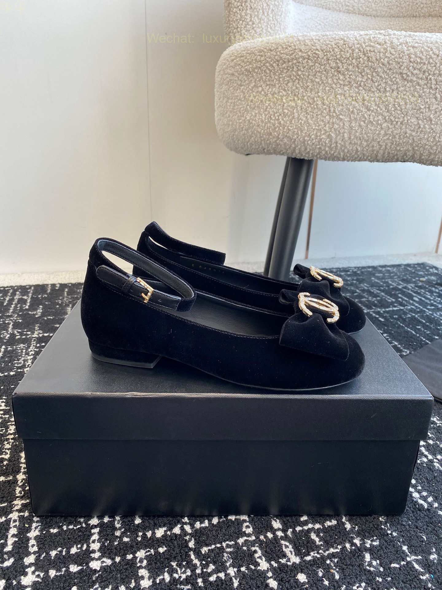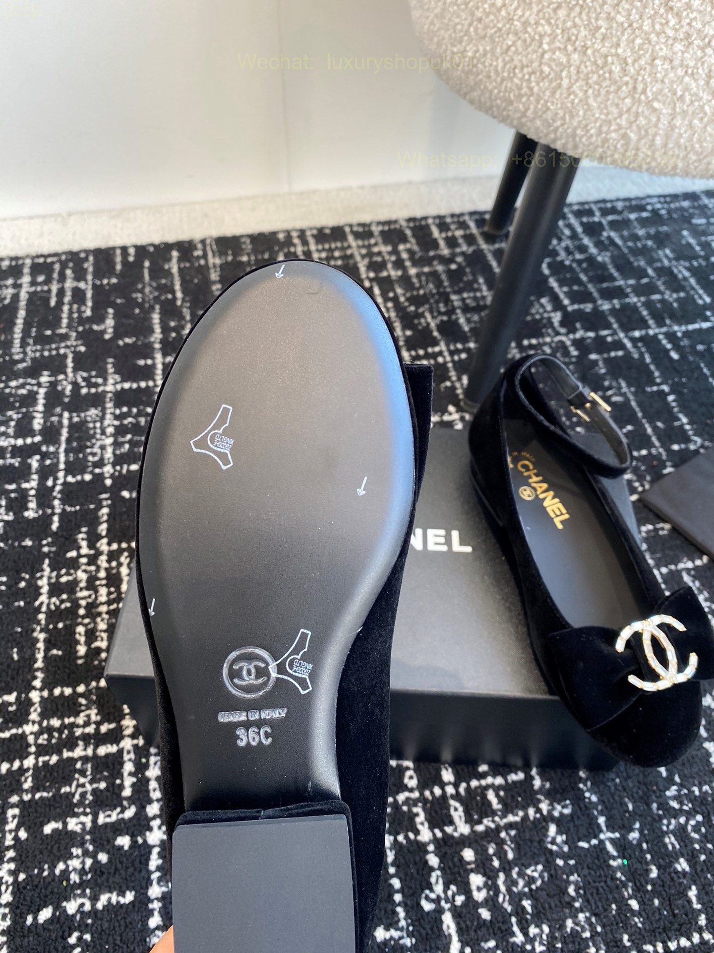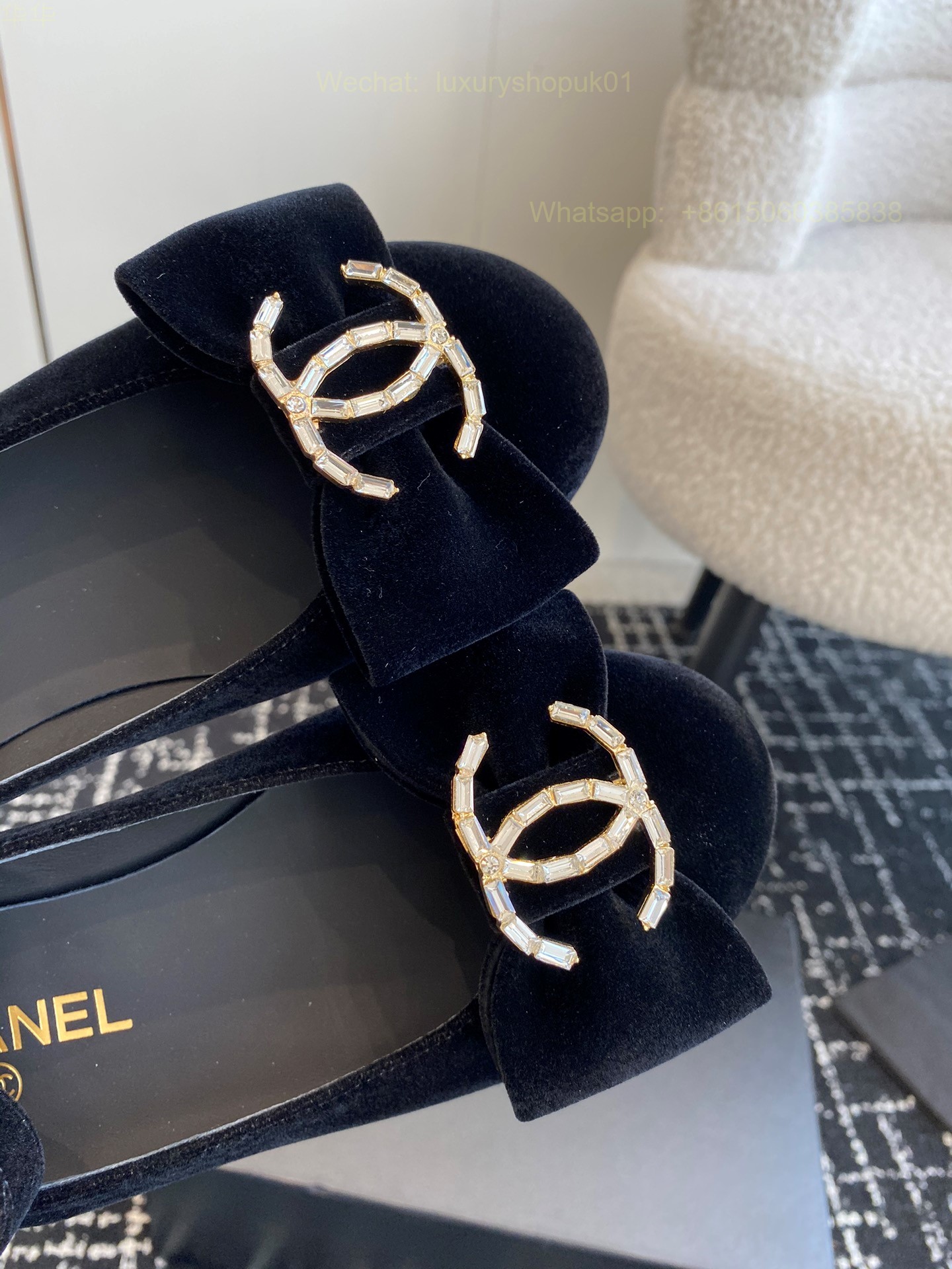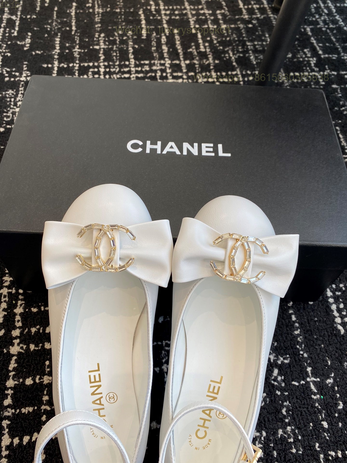 Women Chanel CC Logo Leather Bow Ankle strap Ballet Flat Shoes