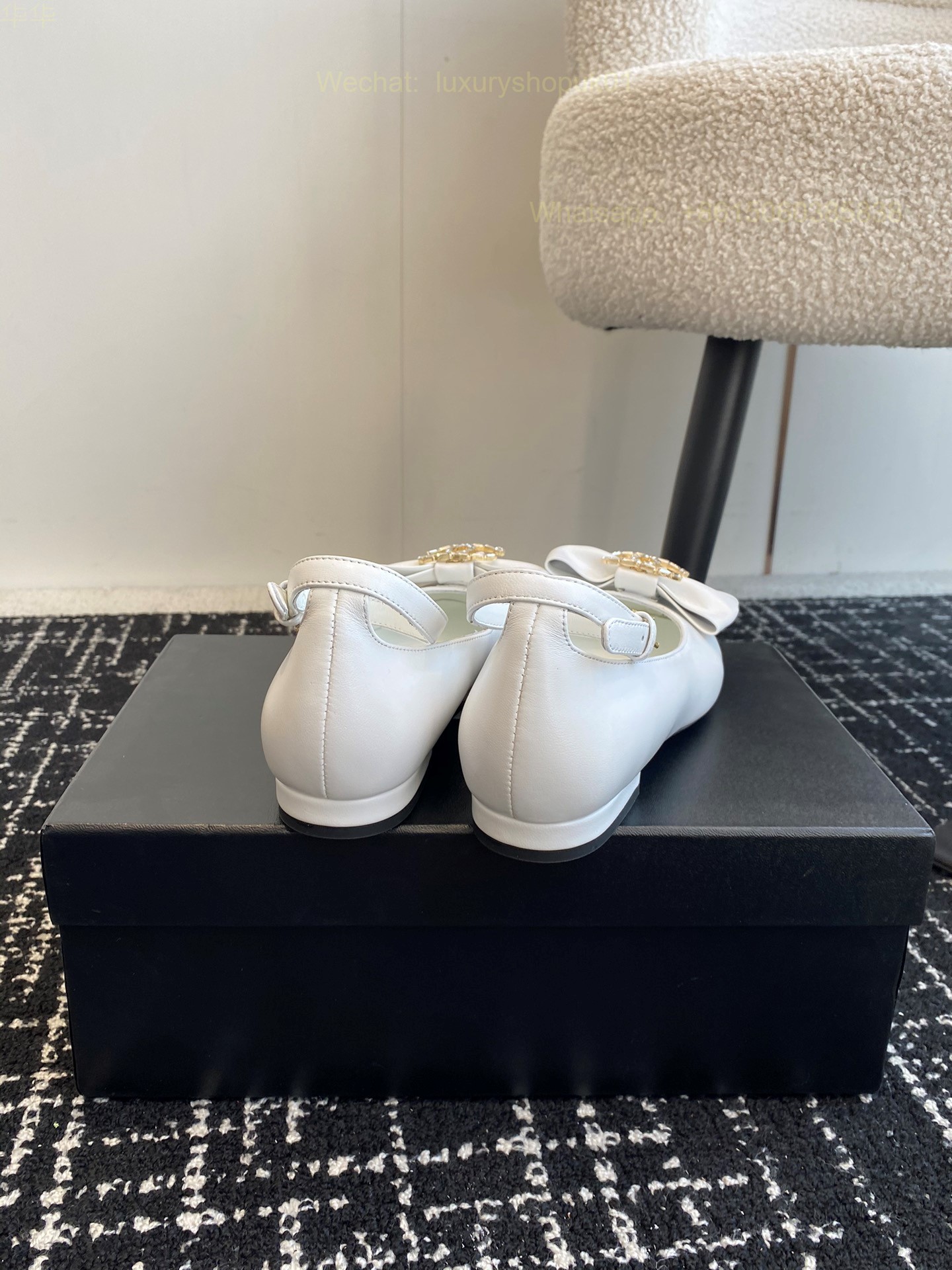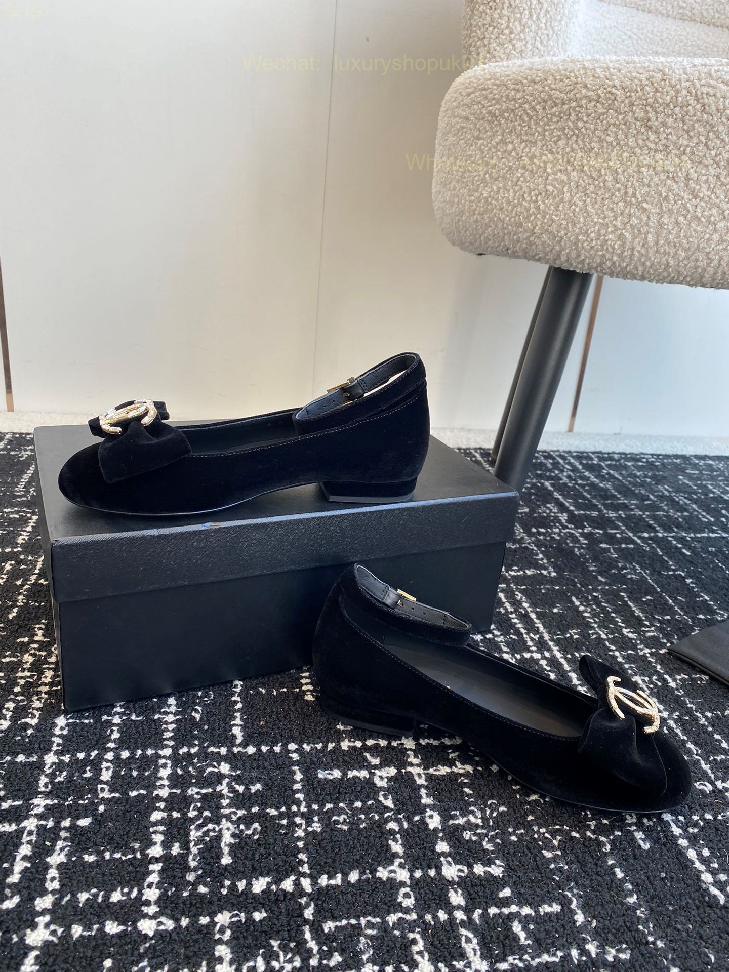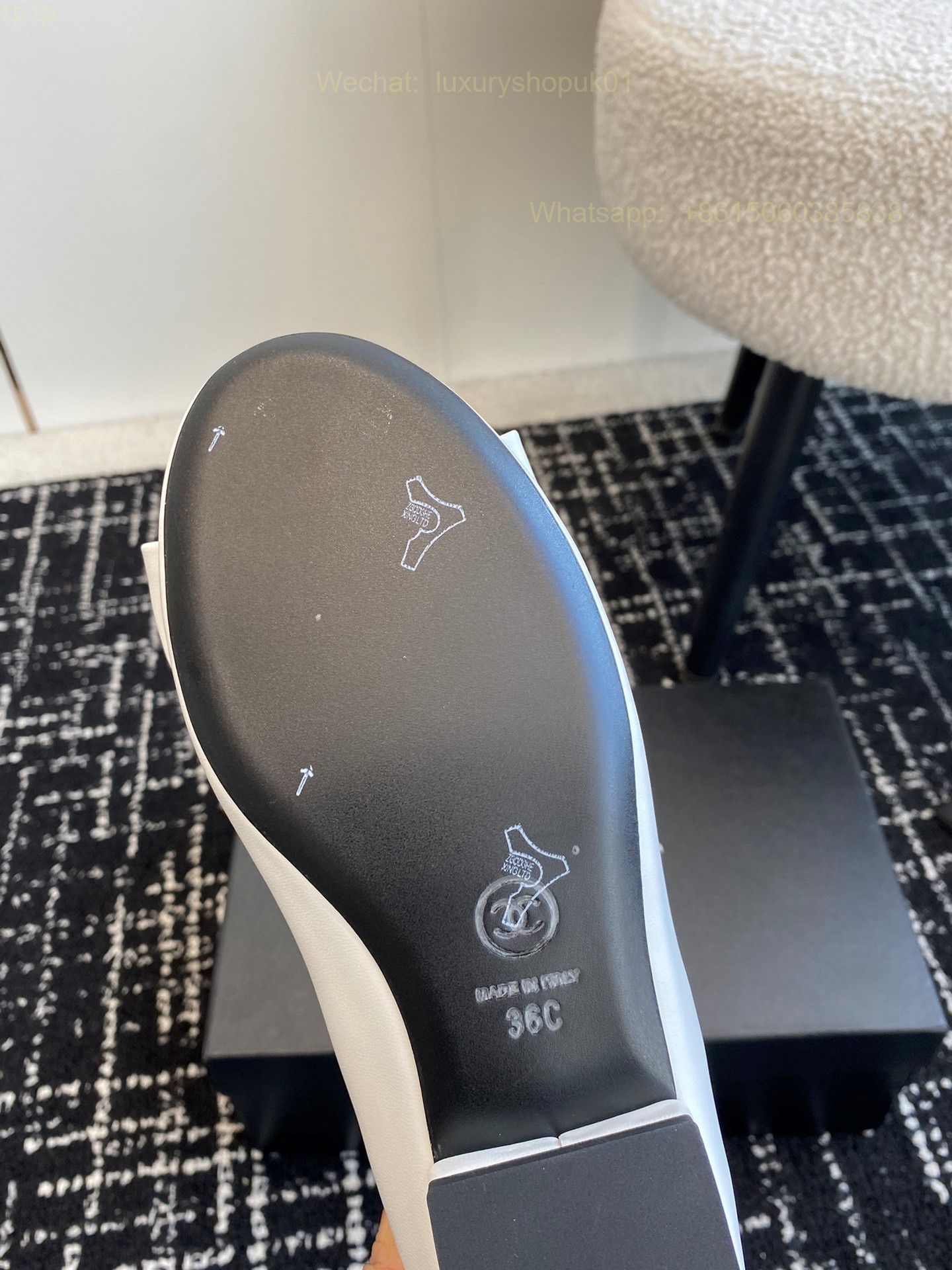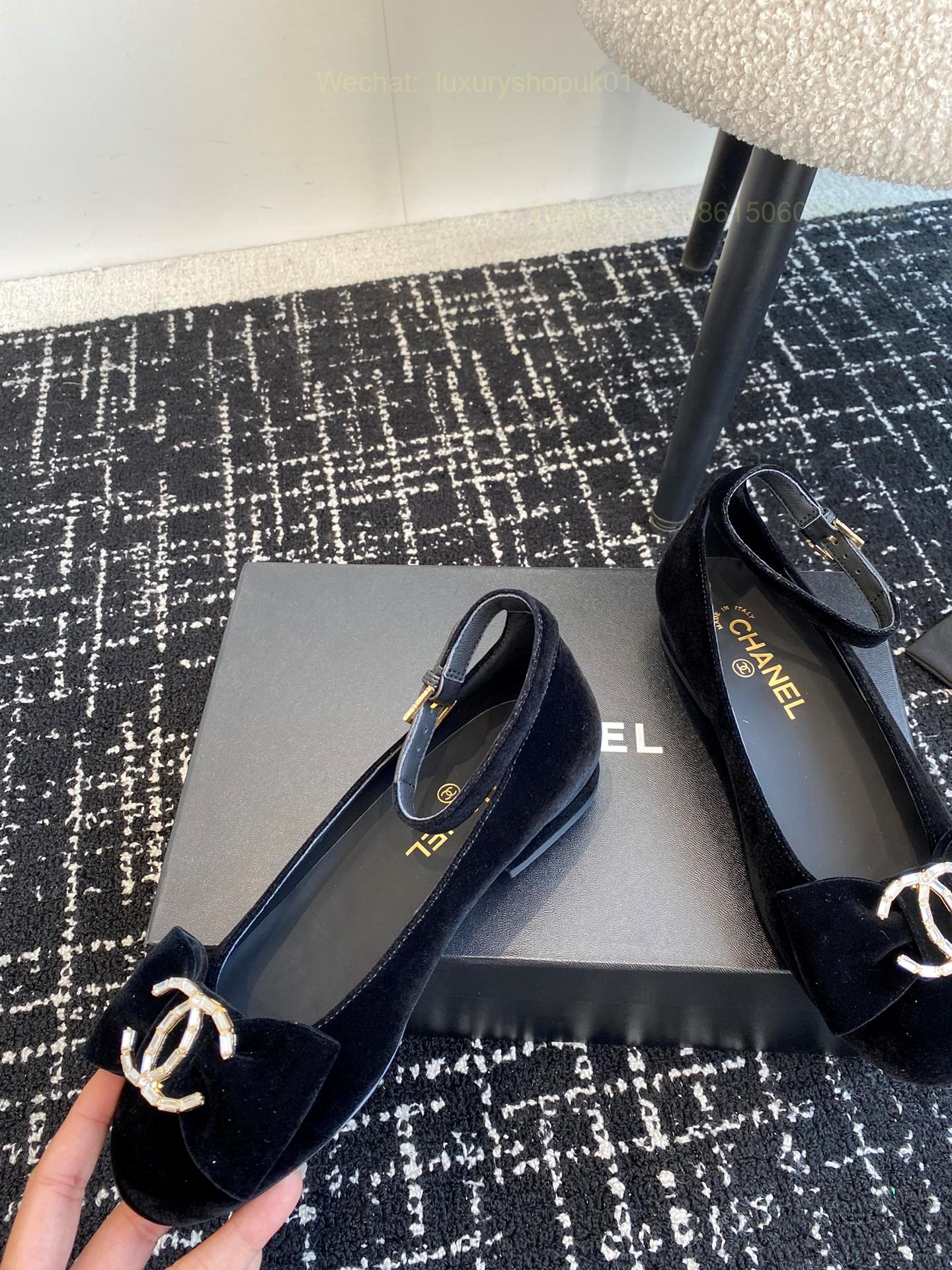 Women Chanel CC Logo Leather Bow Ankle strap Ballet Flat Shoes