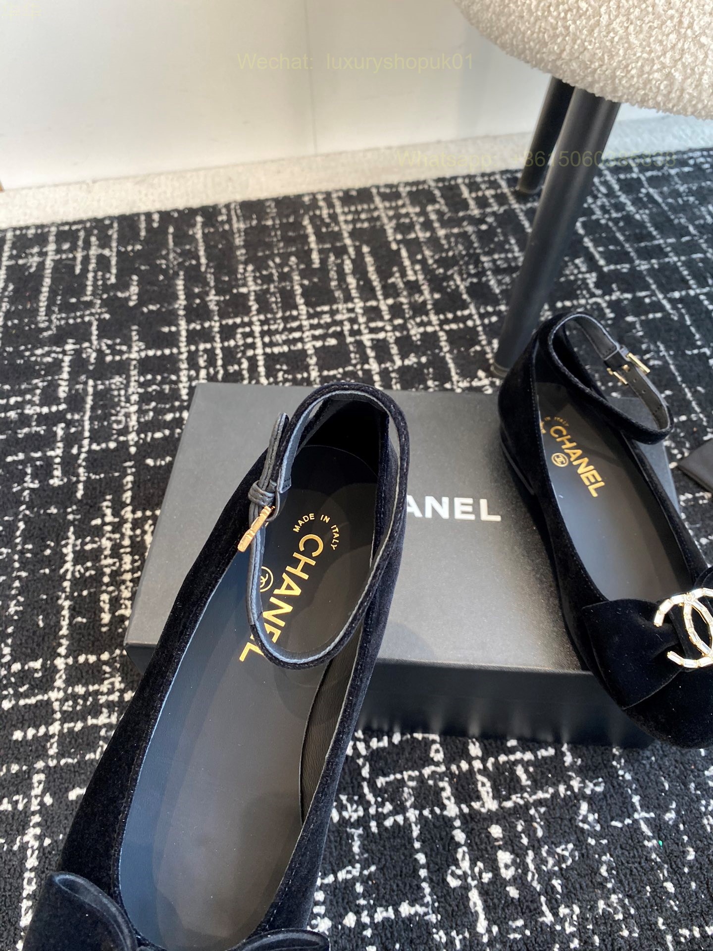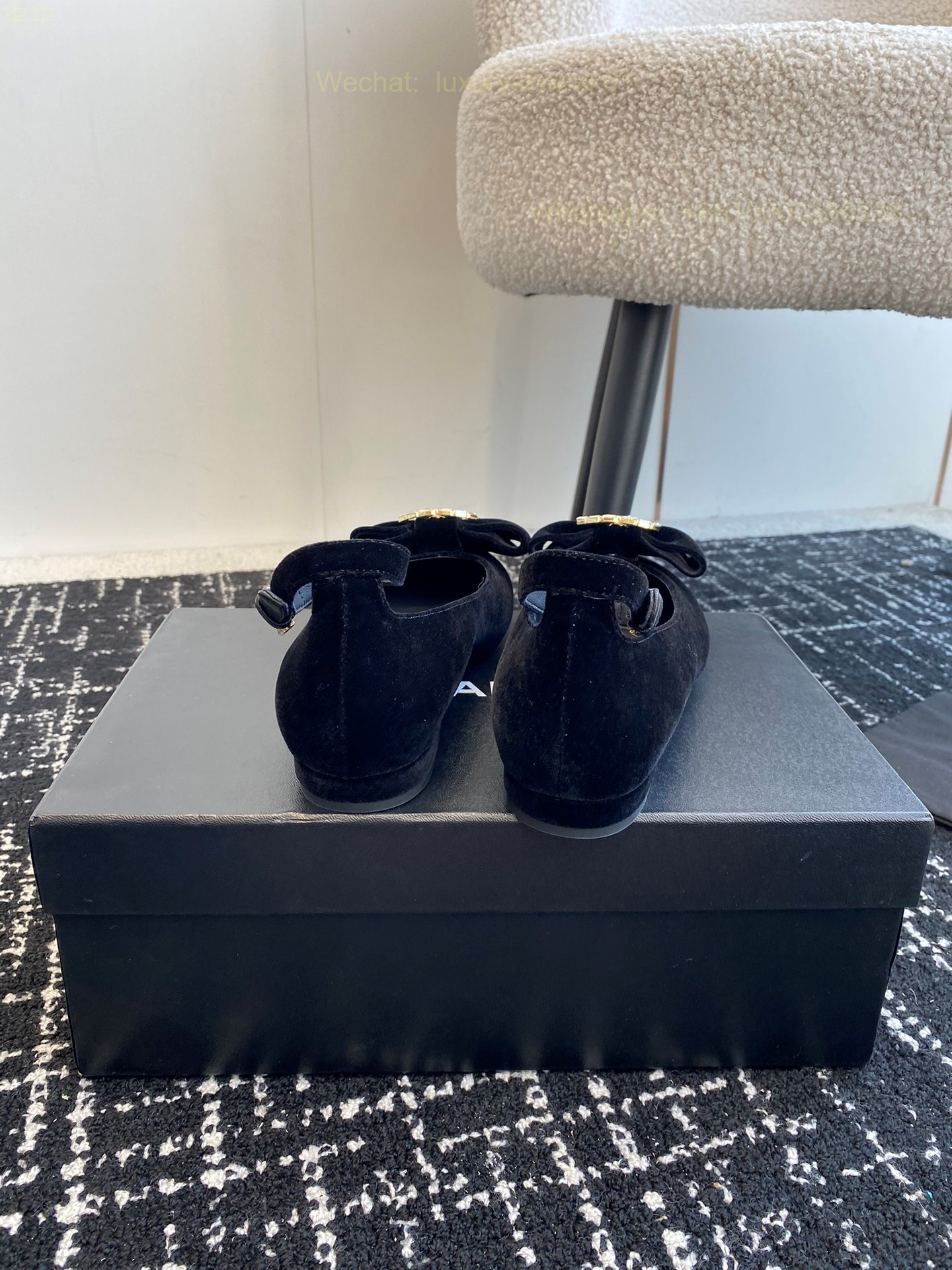 Women Chanel CC Logo Bow Ankle strap Ballet Flat Shoes