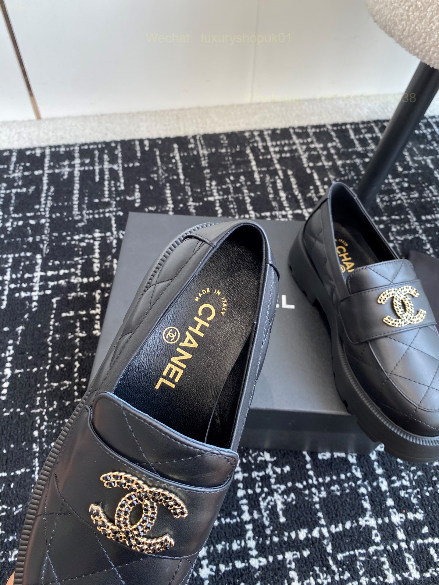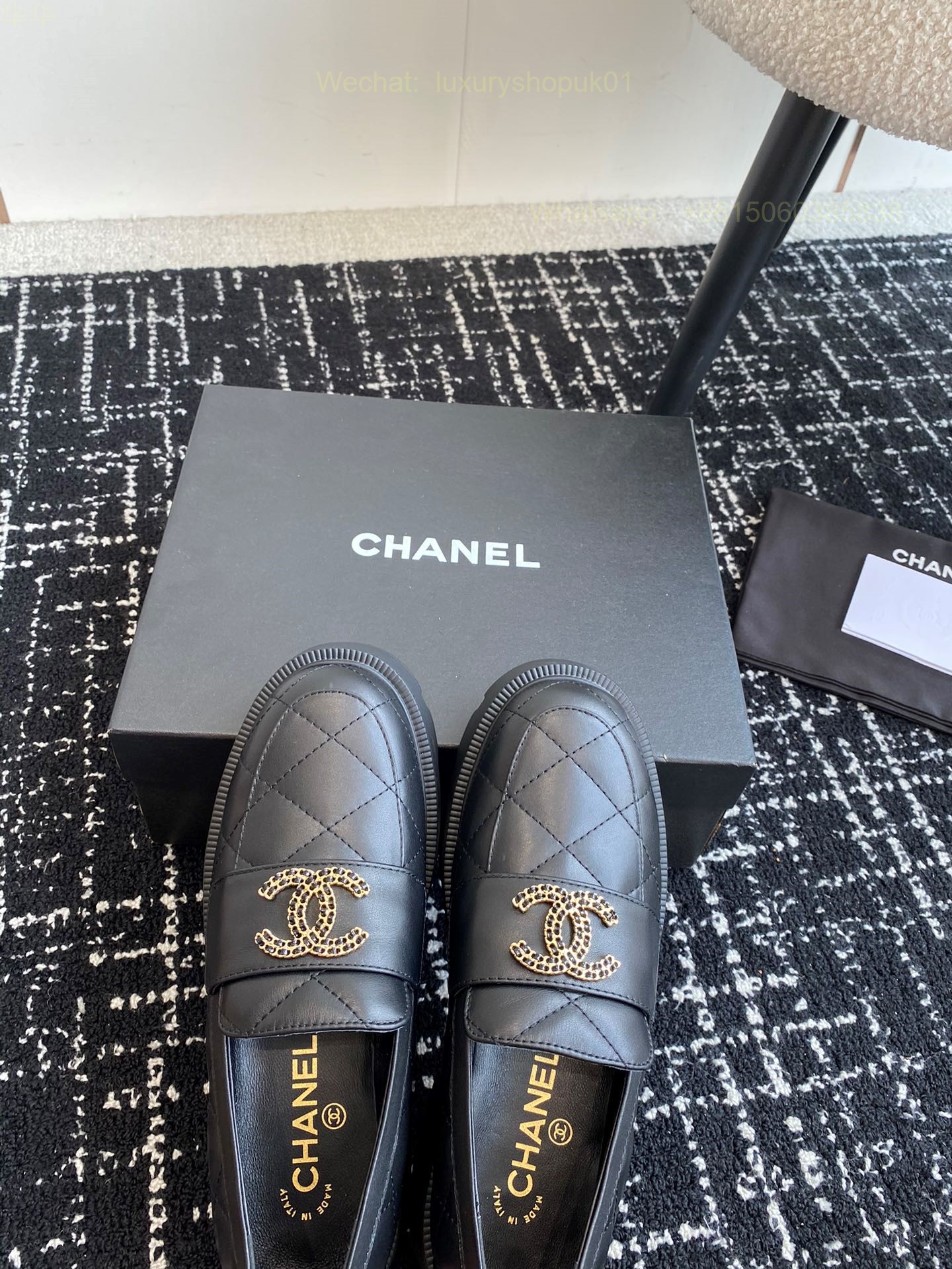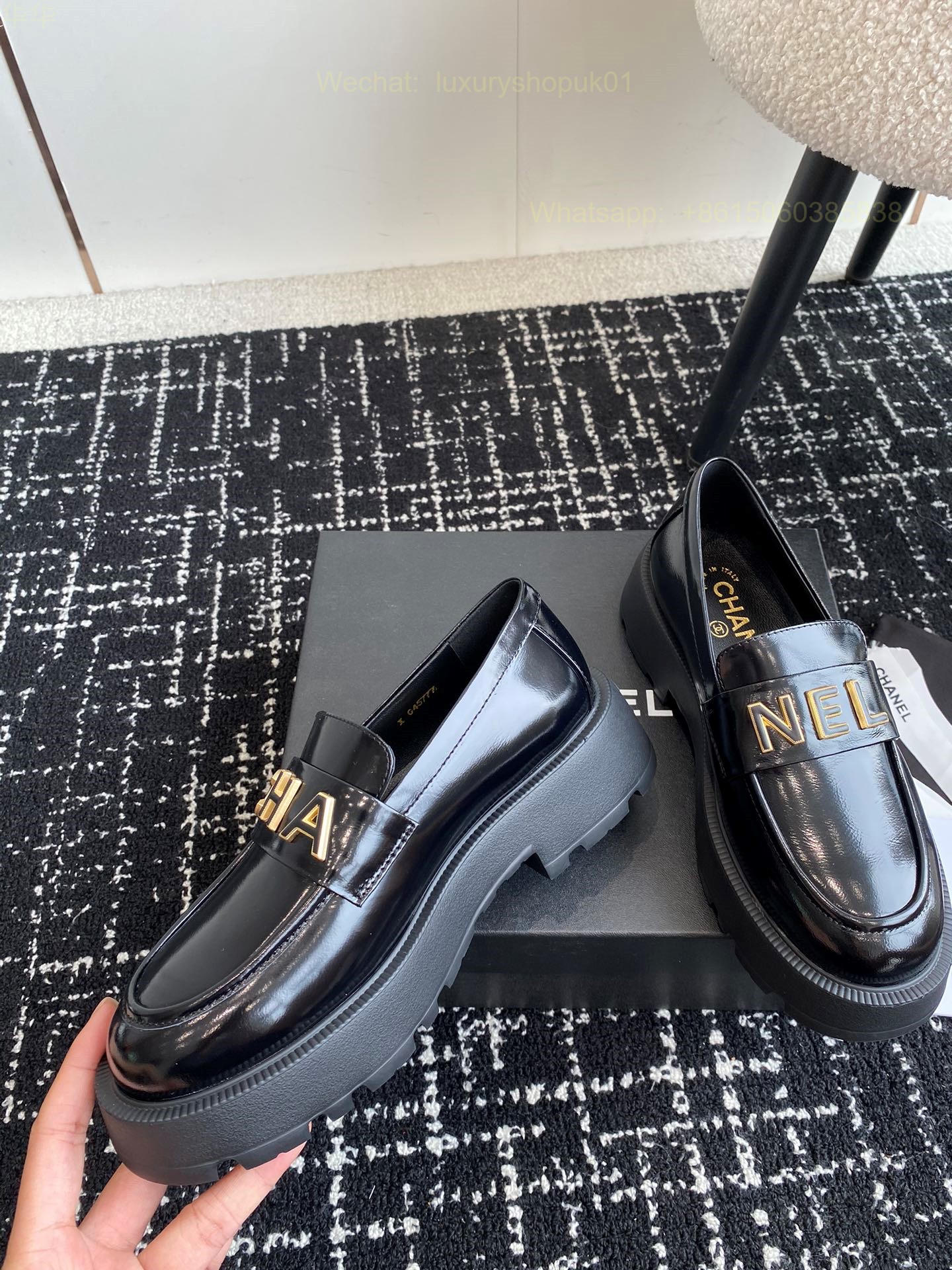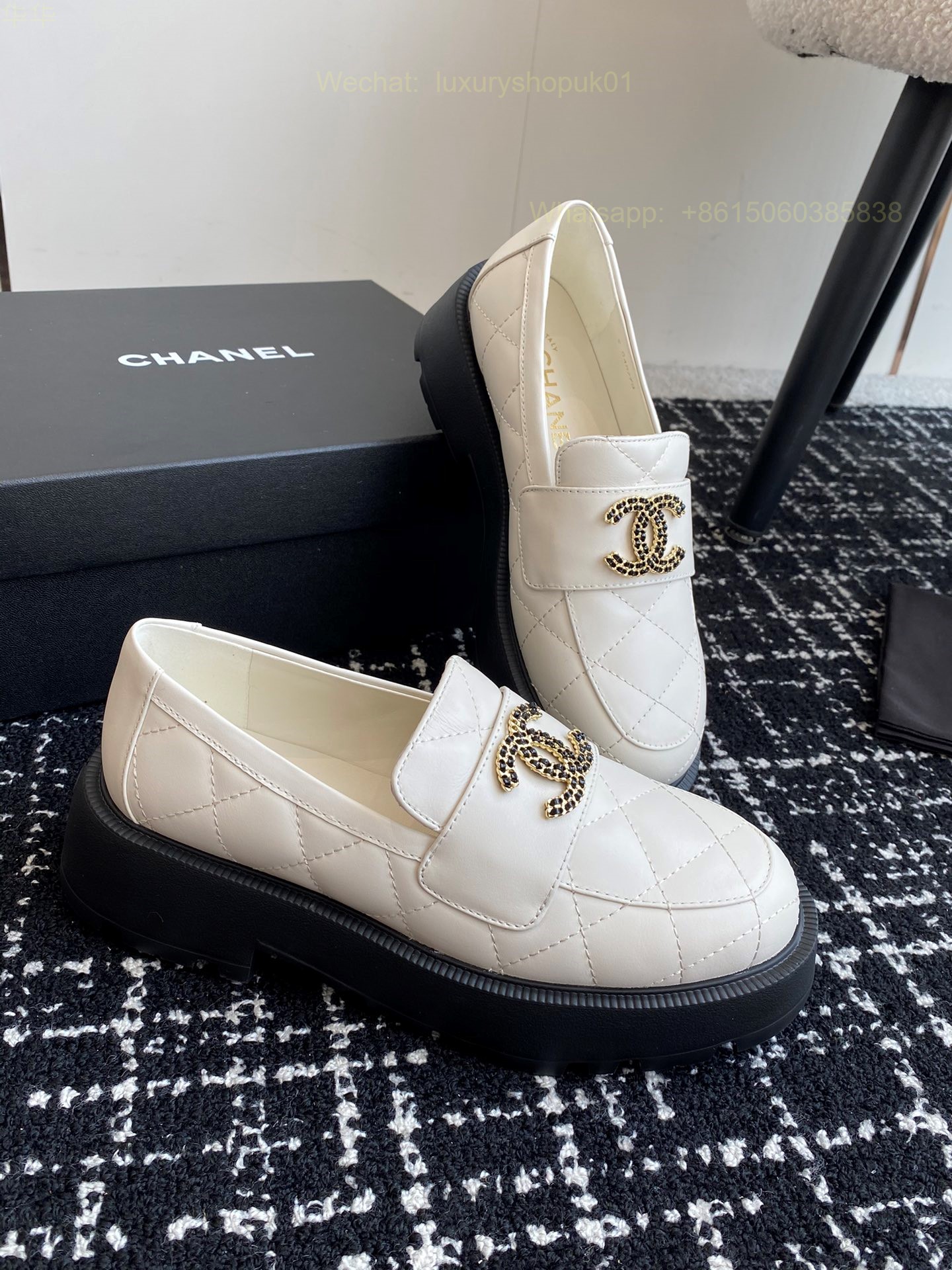 Women Chanel Loafers Leather CC Logo Flats Shoes