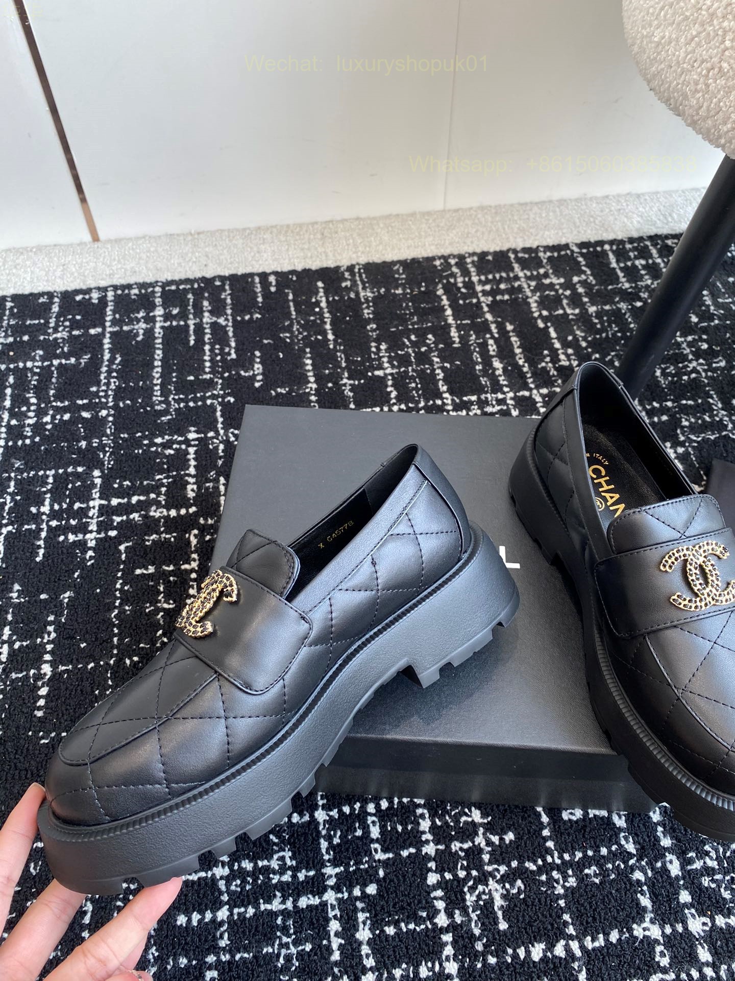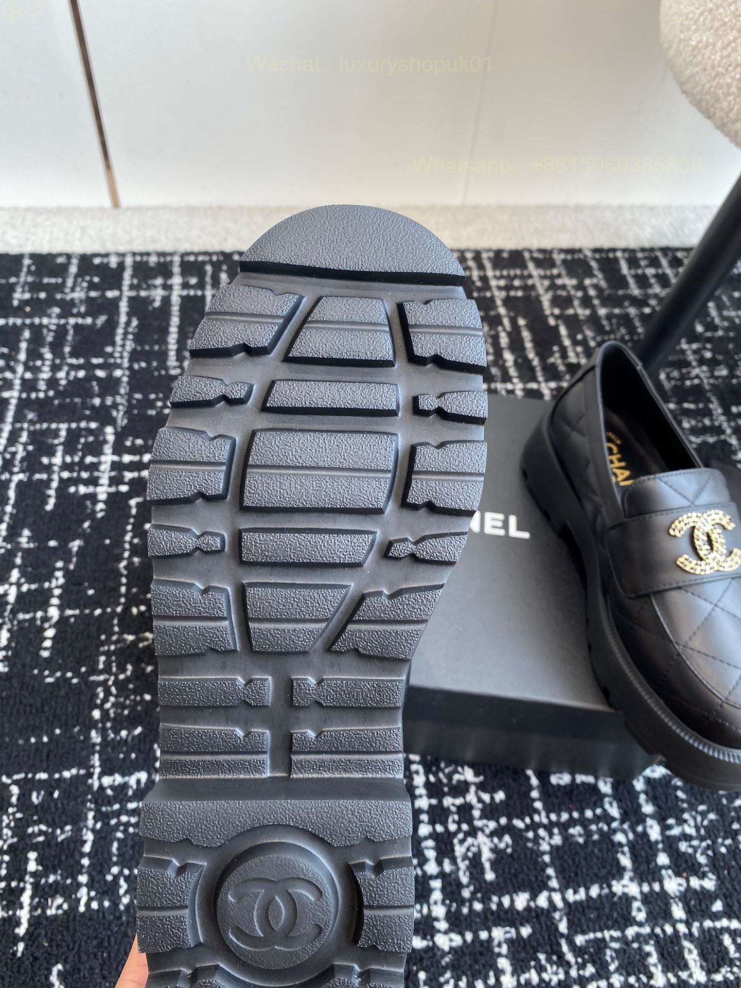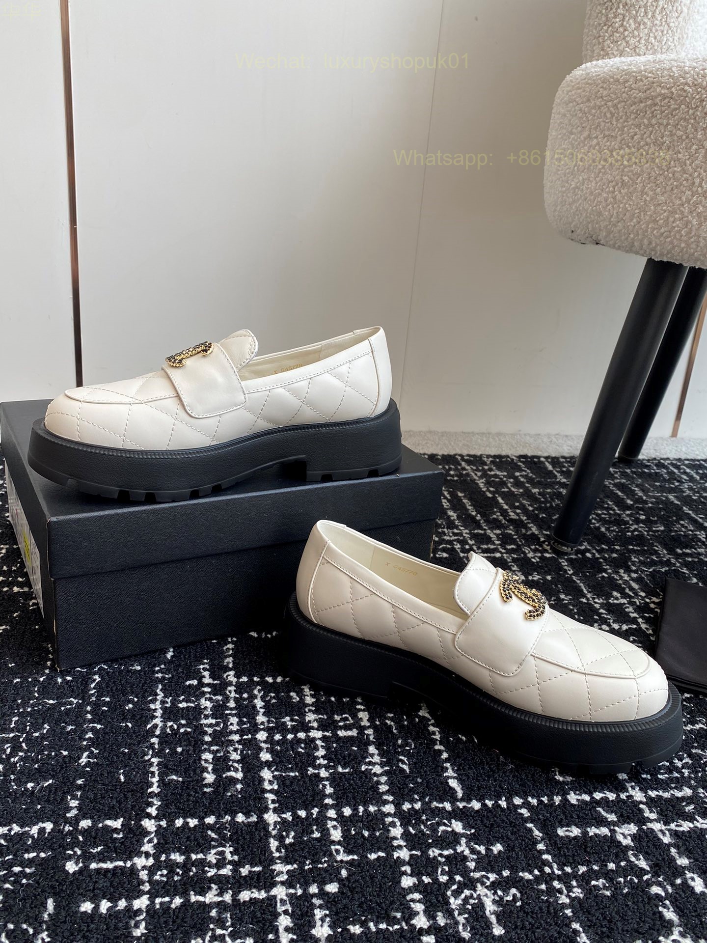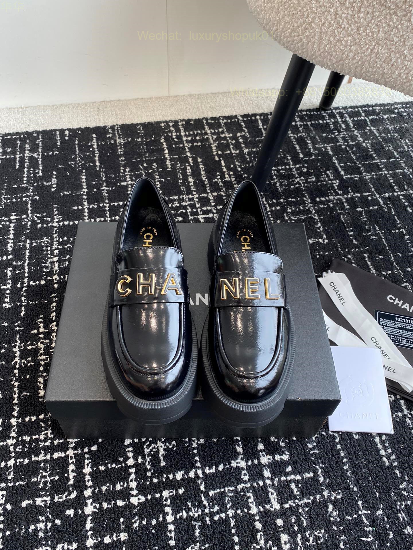 Women Chanel Loafers Leather CC Logo Flats Shoes