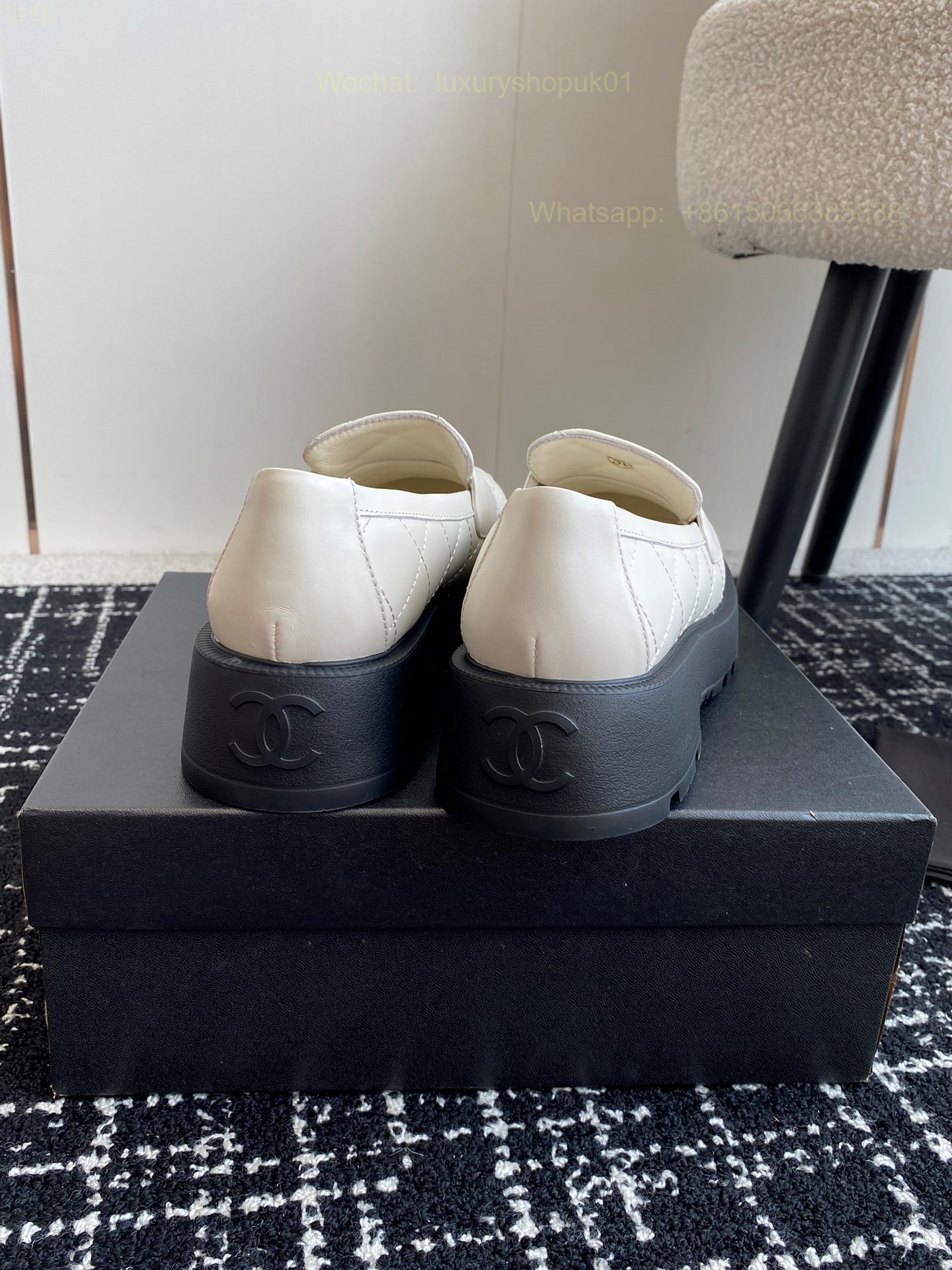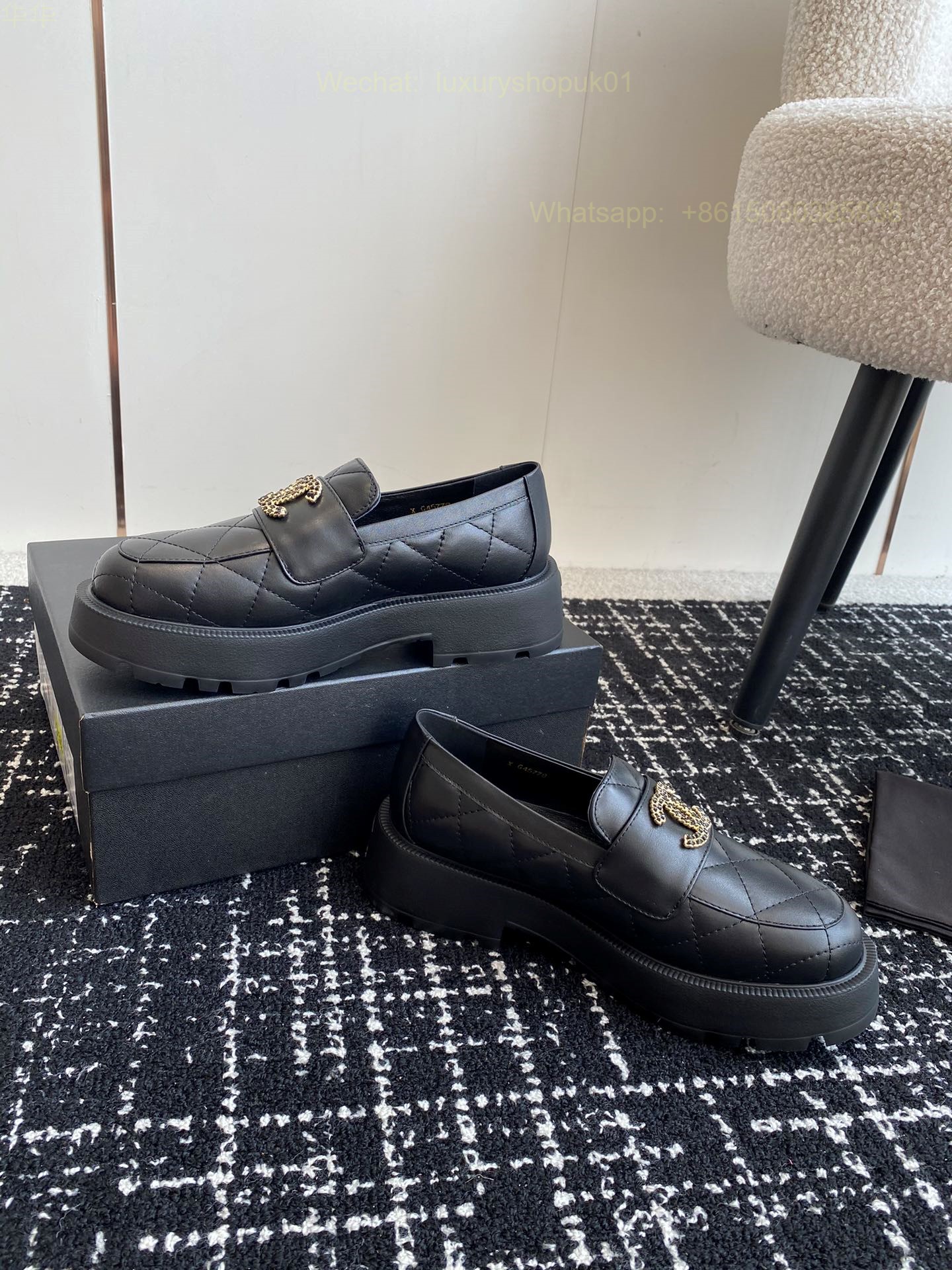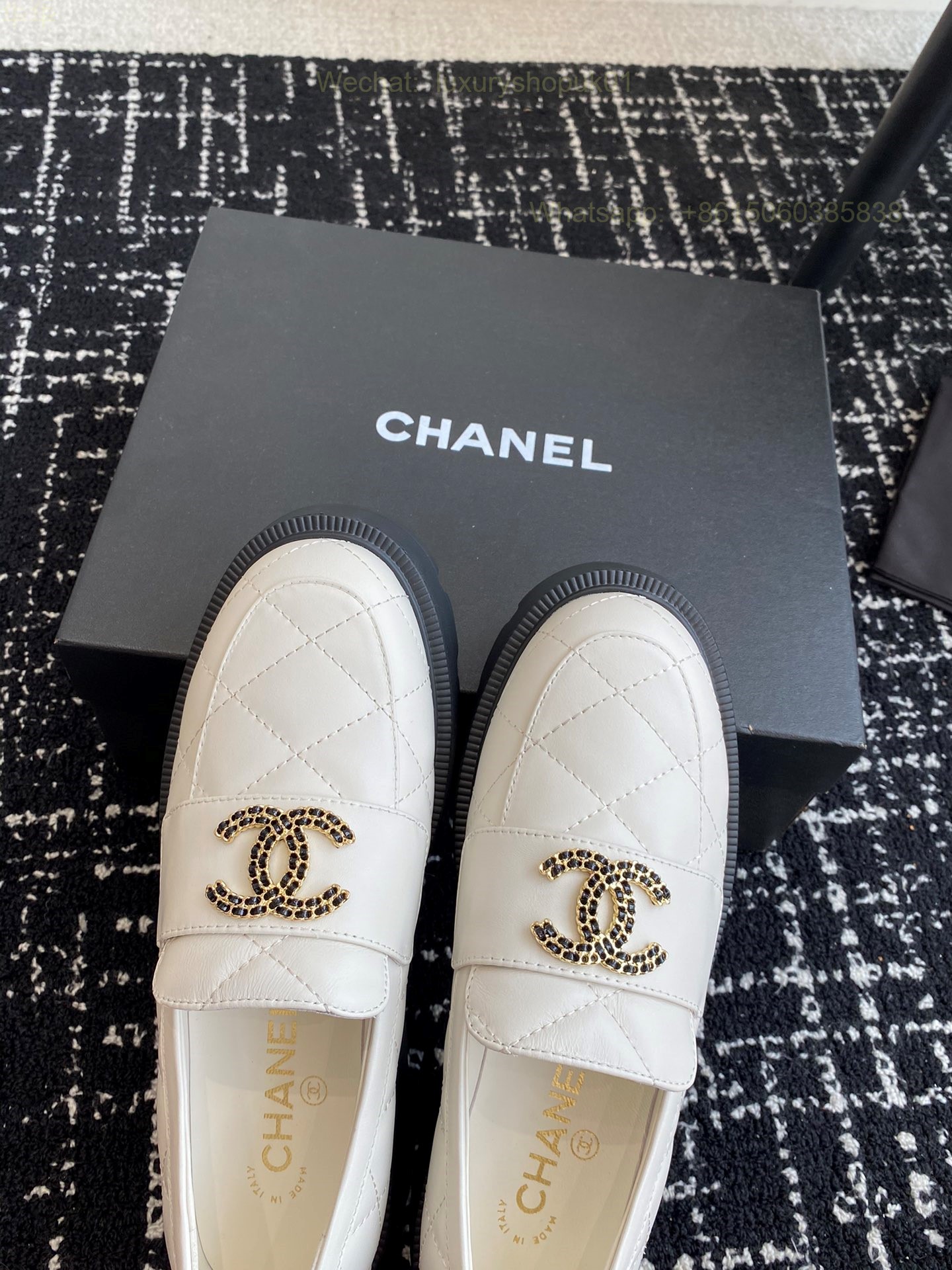 Women Chanel Chain Loafers Leather CC Logo Flats Shoes