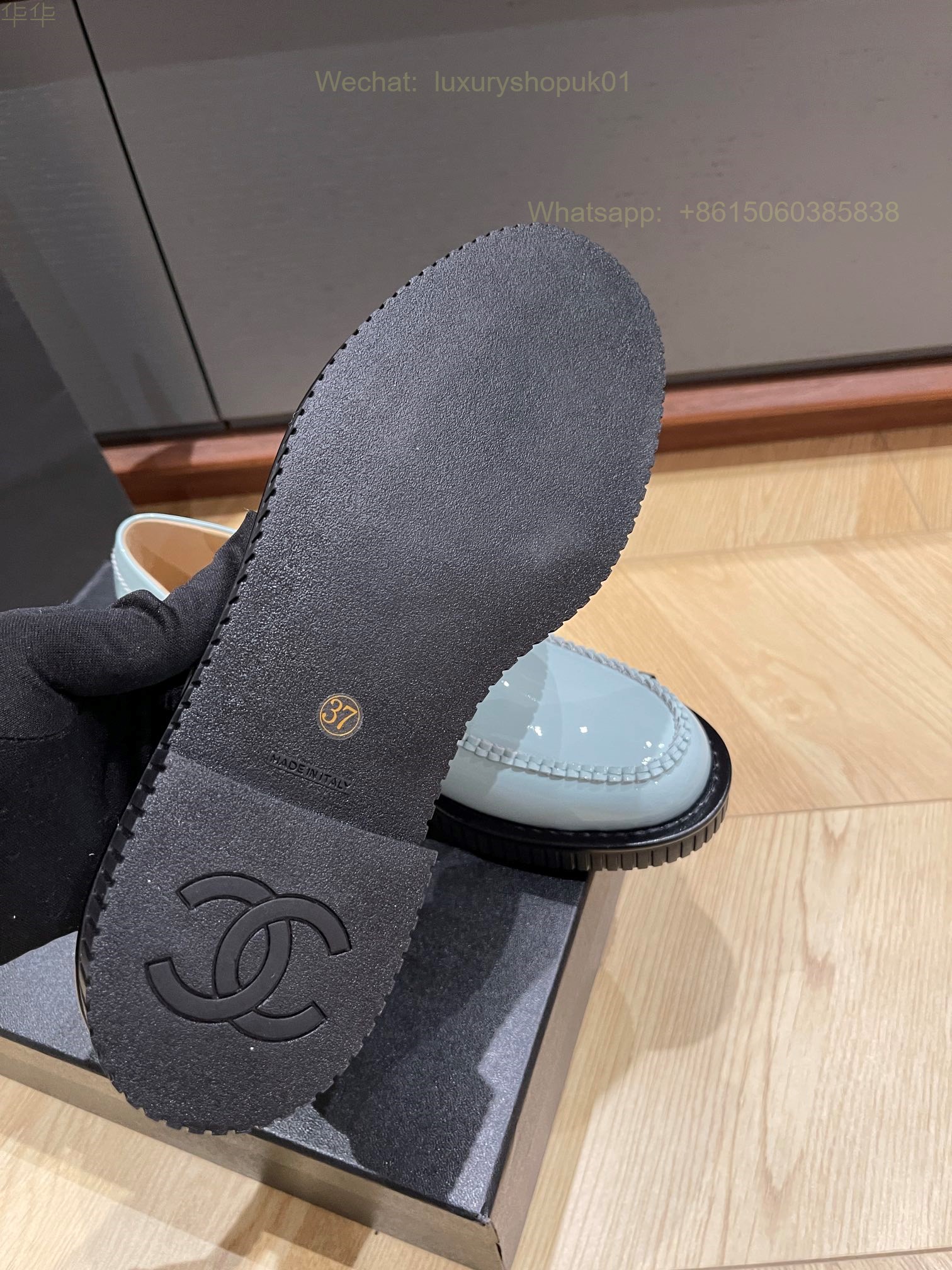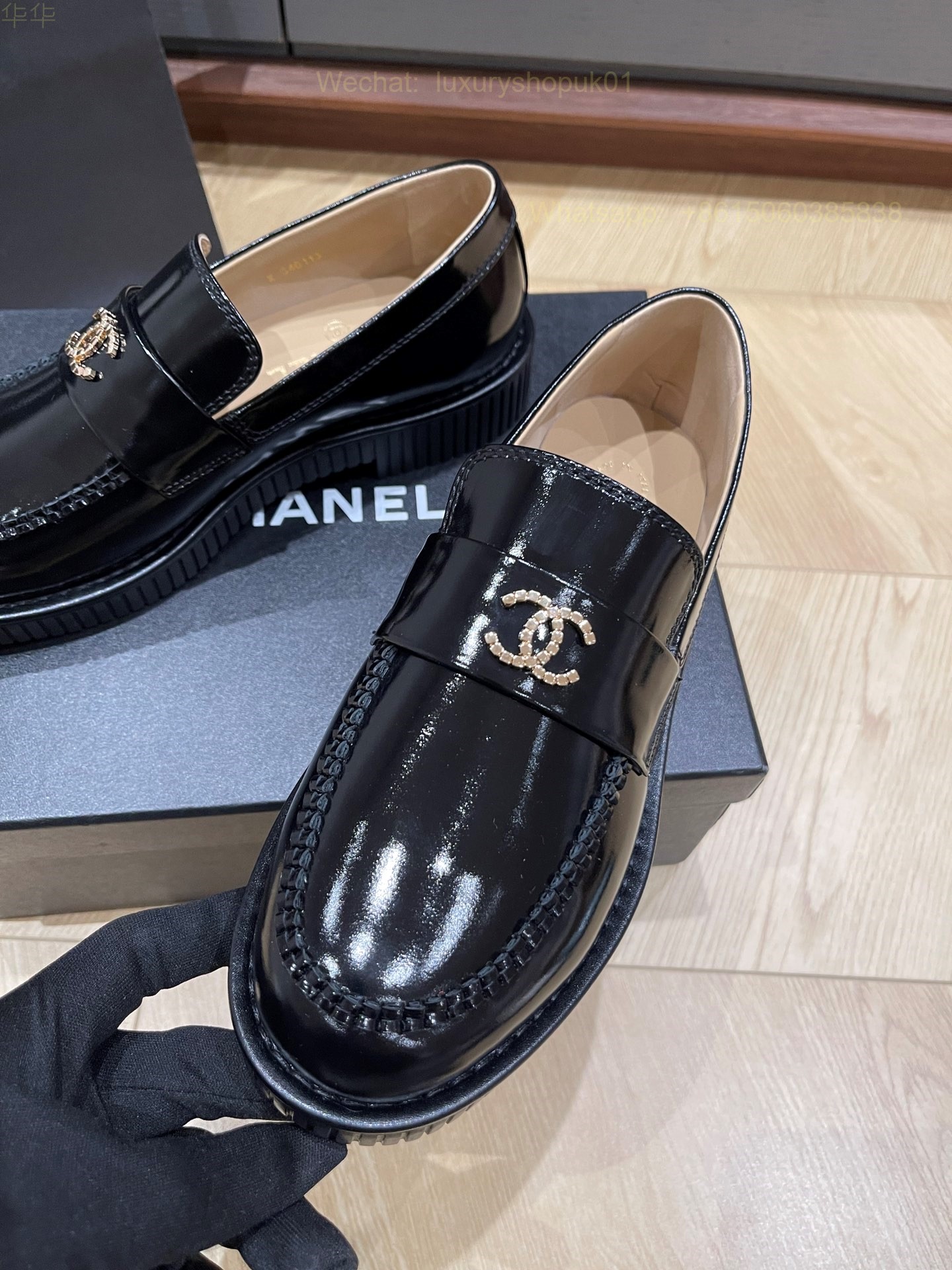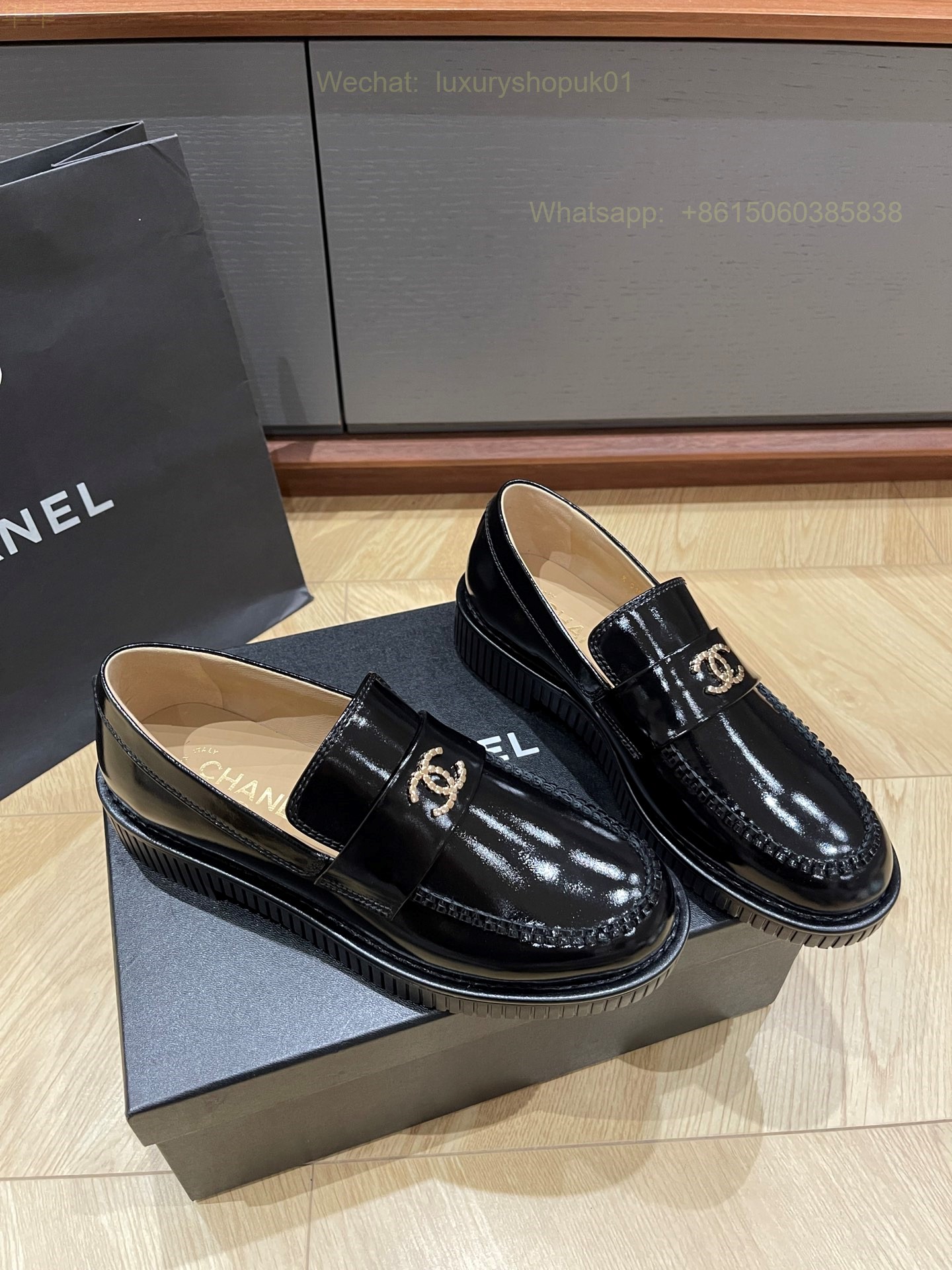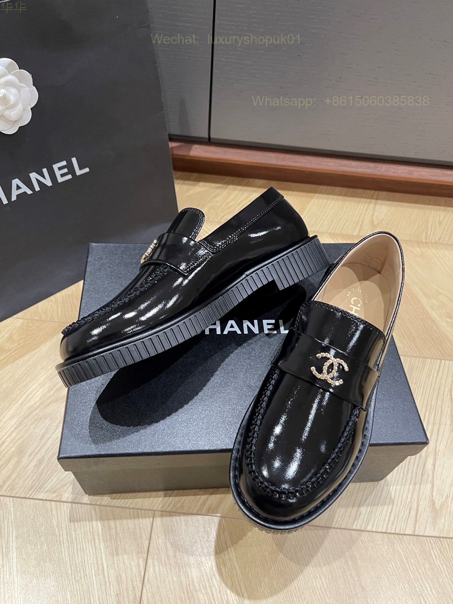 Women Chanel Loafers Patent Leather CC Logo Flats Shoes